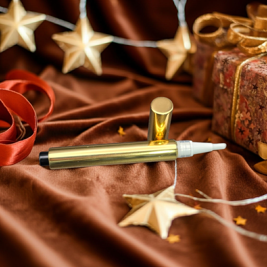 Treat your nails to a touch of holiday glamour with this delightful 5ml click pen featuring a sumptuous golden finish. The weighted design adds a satisfying heft and undeniable elegance to your mani routine. Our cuticle concoction delivers nourishment in the most stylish way possible—because self-care should feel as luxurious as it looks!