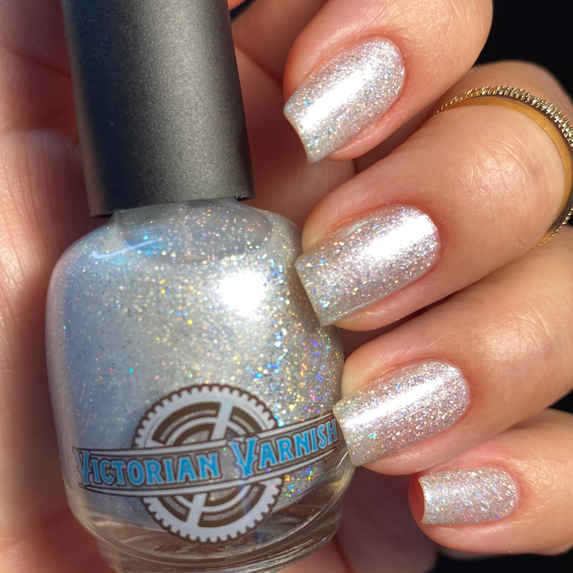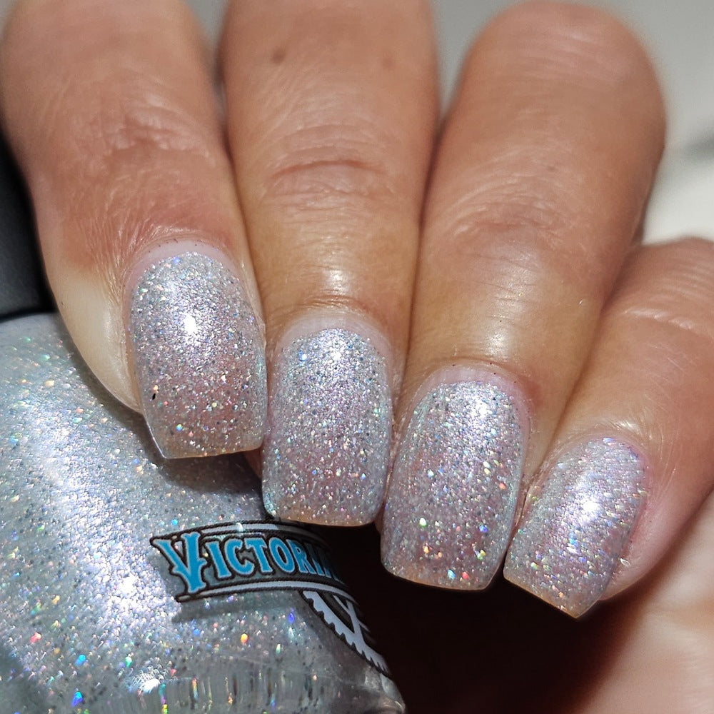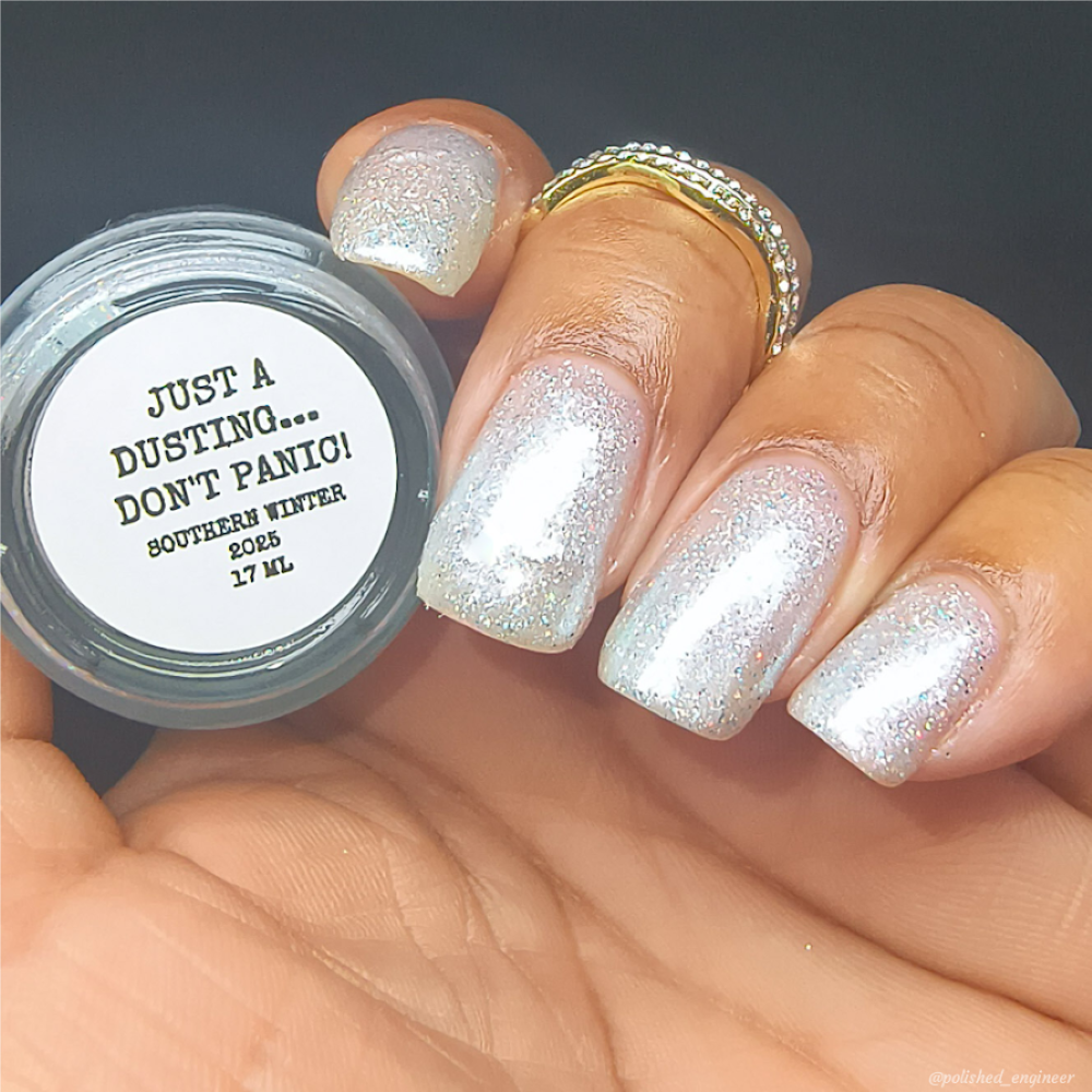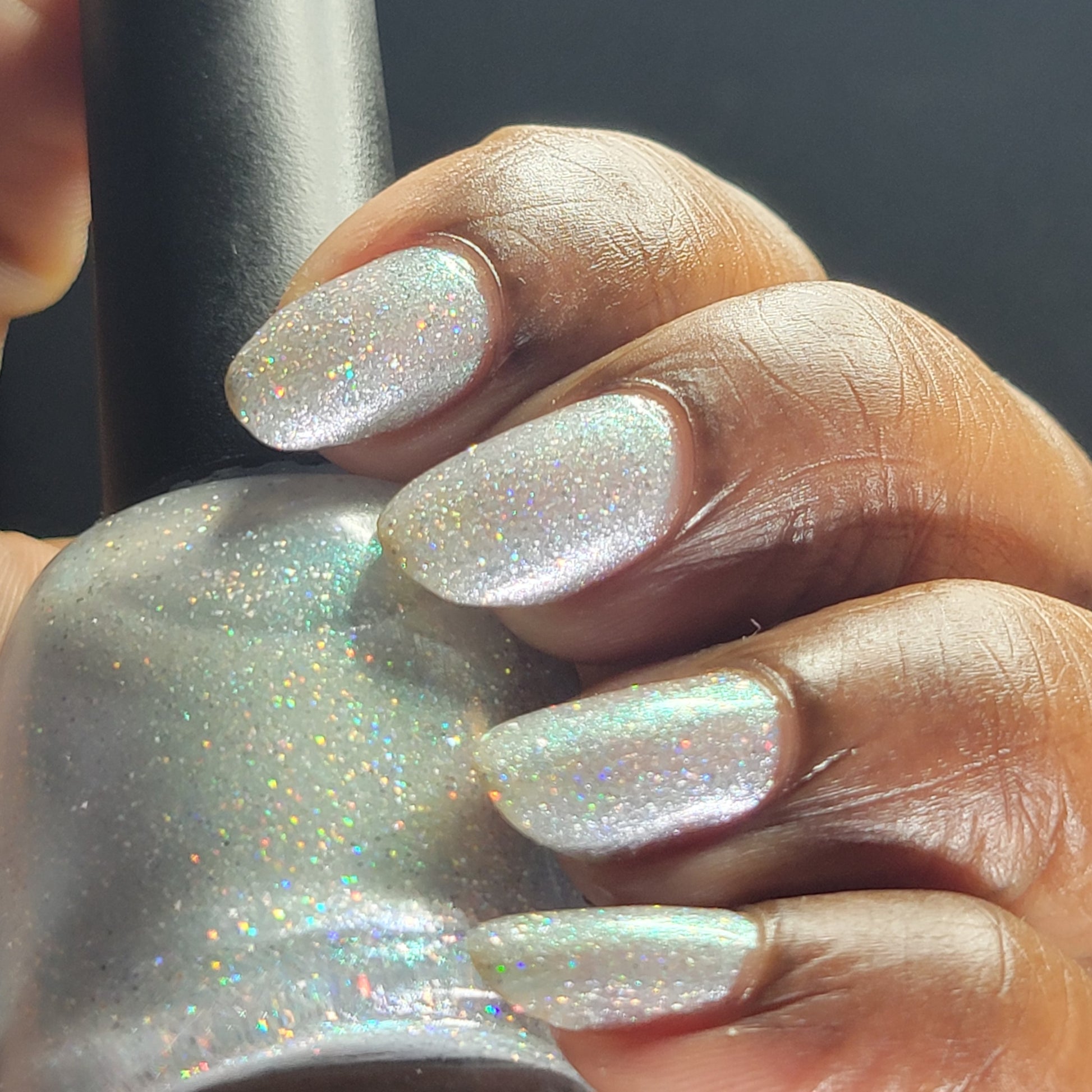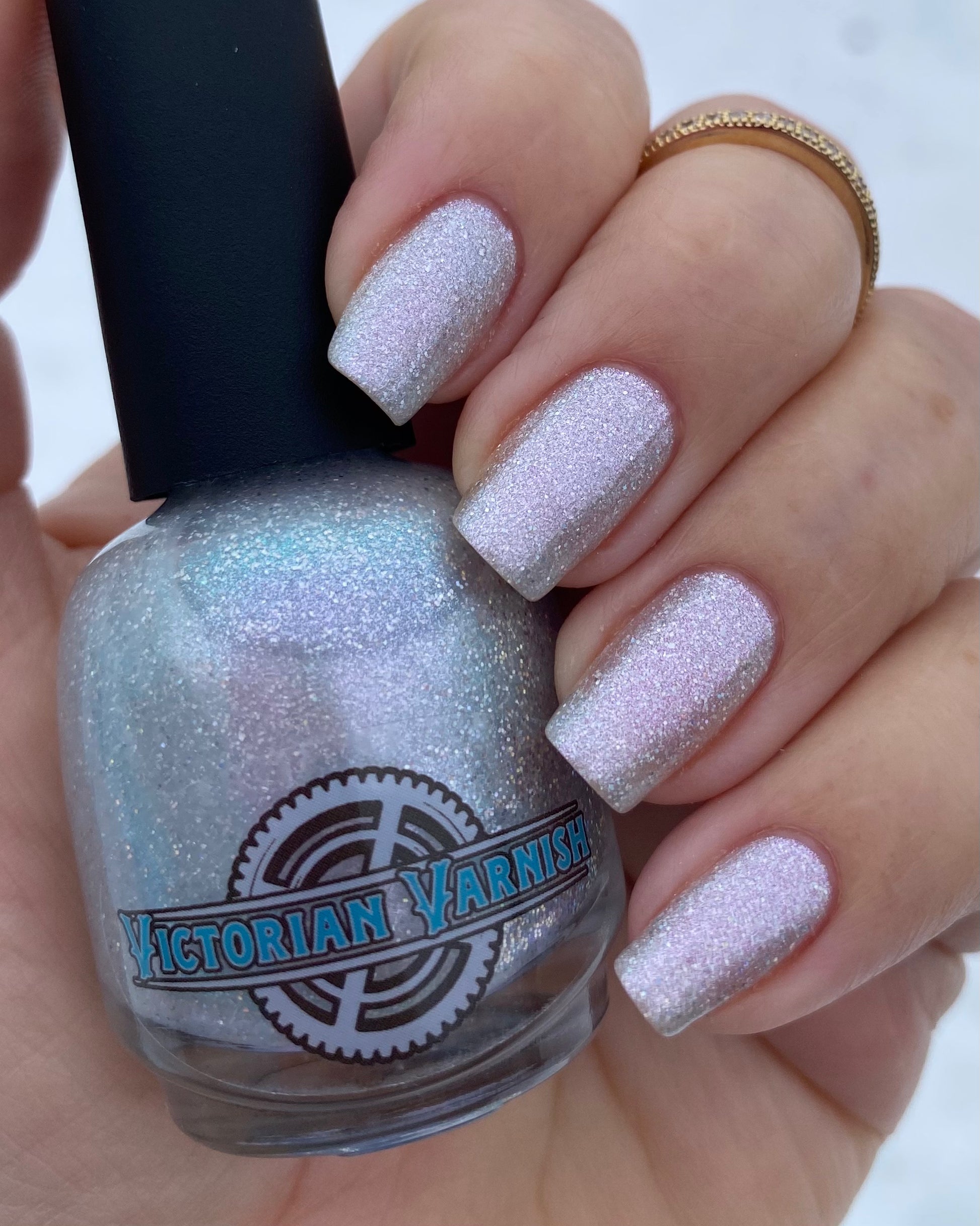 It's just a tiny dusting, it's not Snowmageddon! This polish is a super shimmery base with shifts from pink/purple/blue and loaded with holo flakes and micro silver holo.