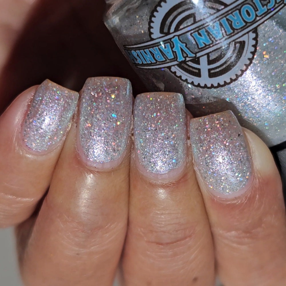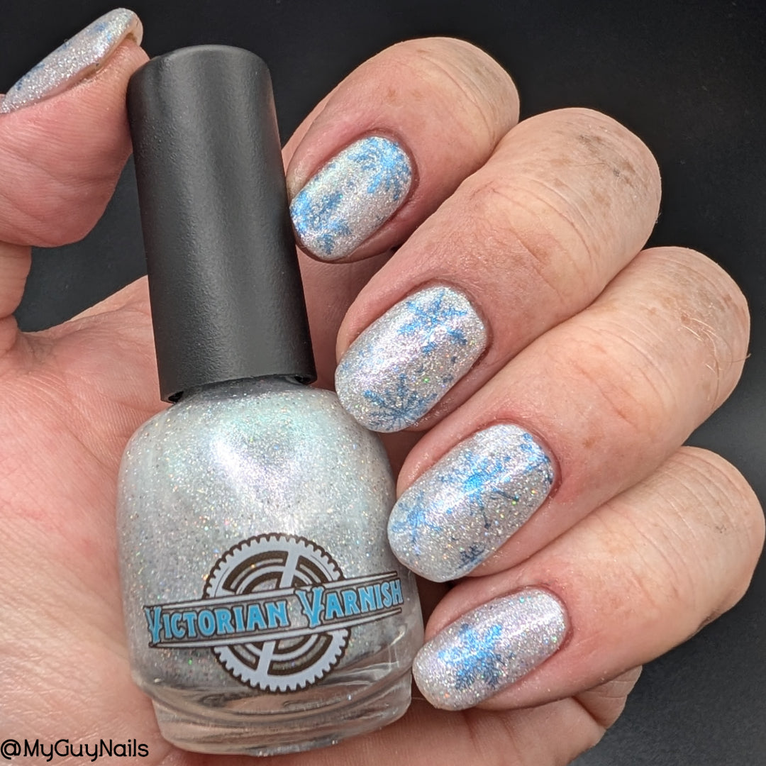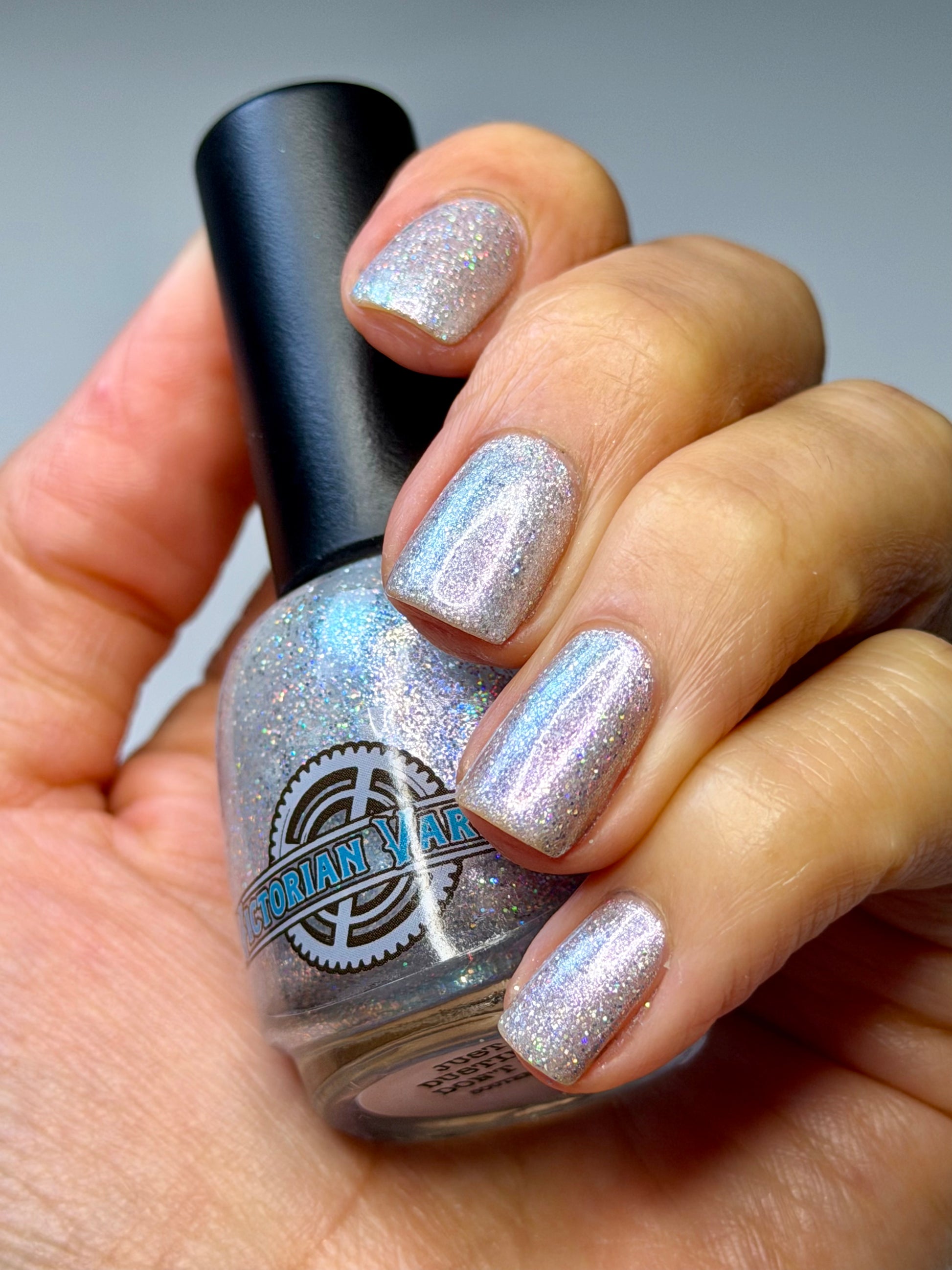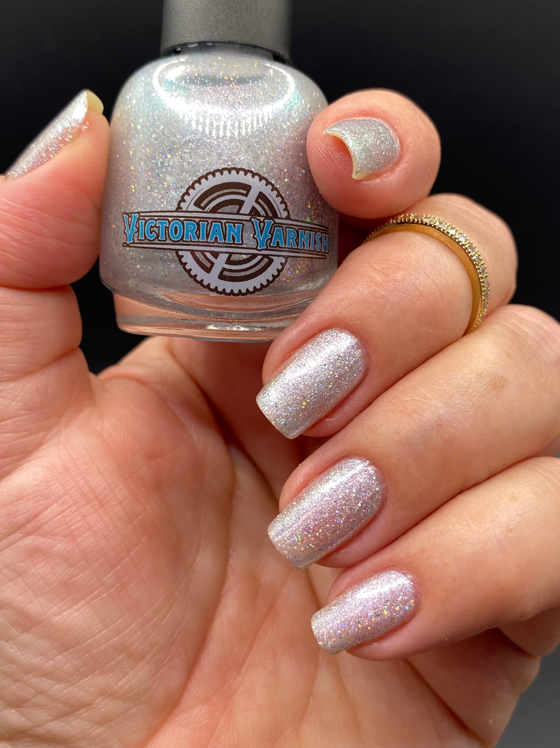 It's just a tiny dusting, it's not Snowmageddon! This polish is a super shimmery base with shifts from pink/purple/blue and loaded with holo flakes and micro silver holo.