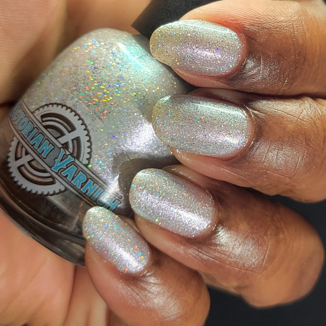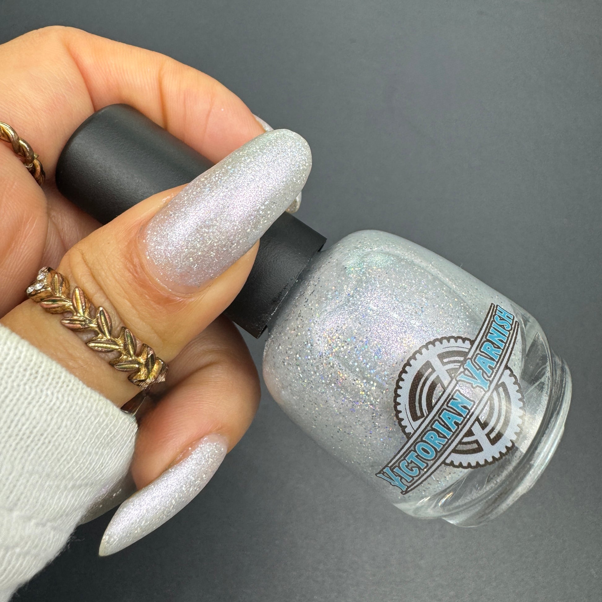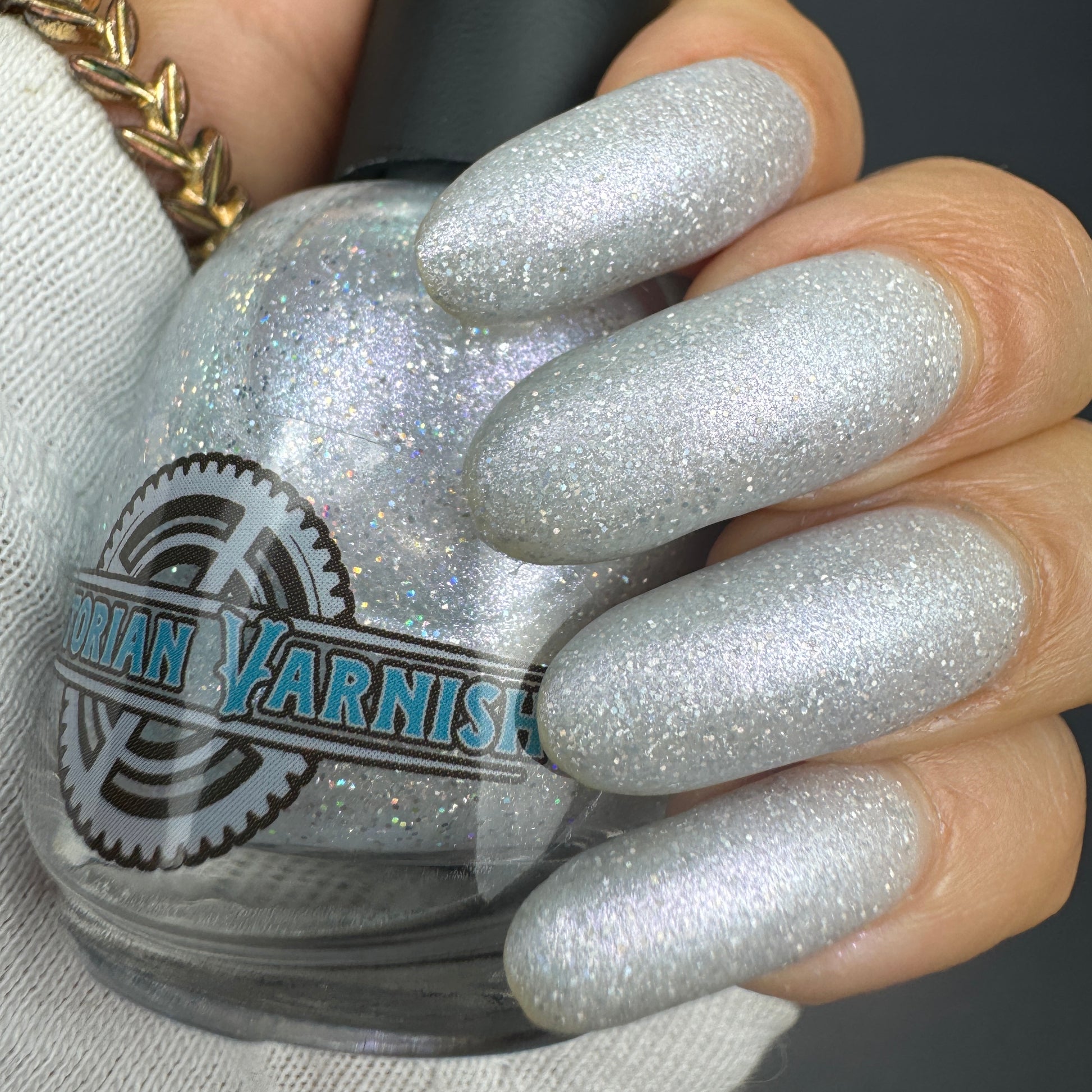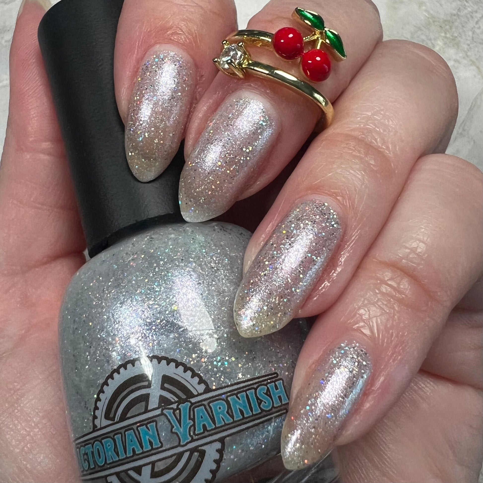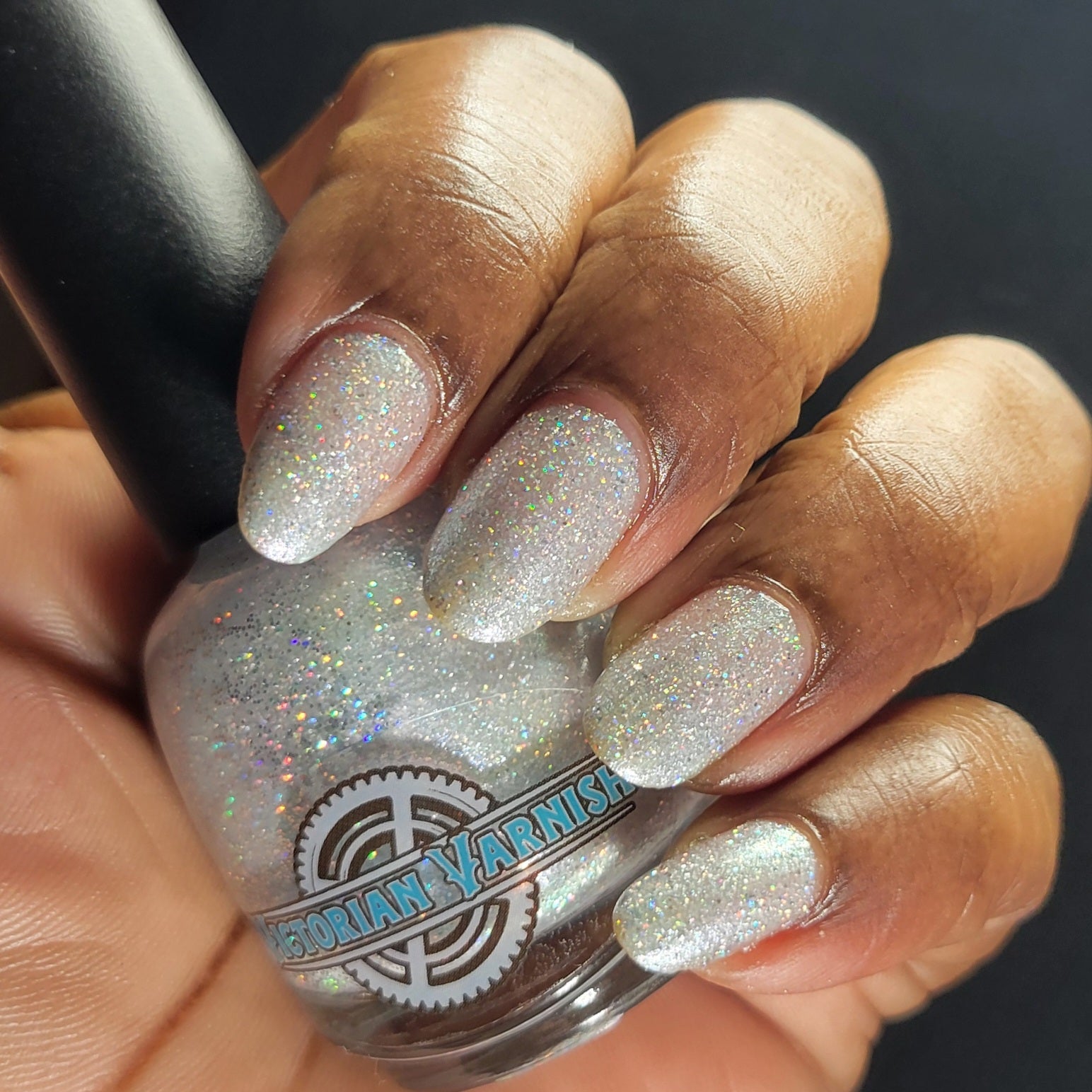 It's just a tiny dusting, it's not Snowmageddon! This polish is a super shimmery base with shifts from pink/purple/blue and loaded with holo flakes and micro silver holo.