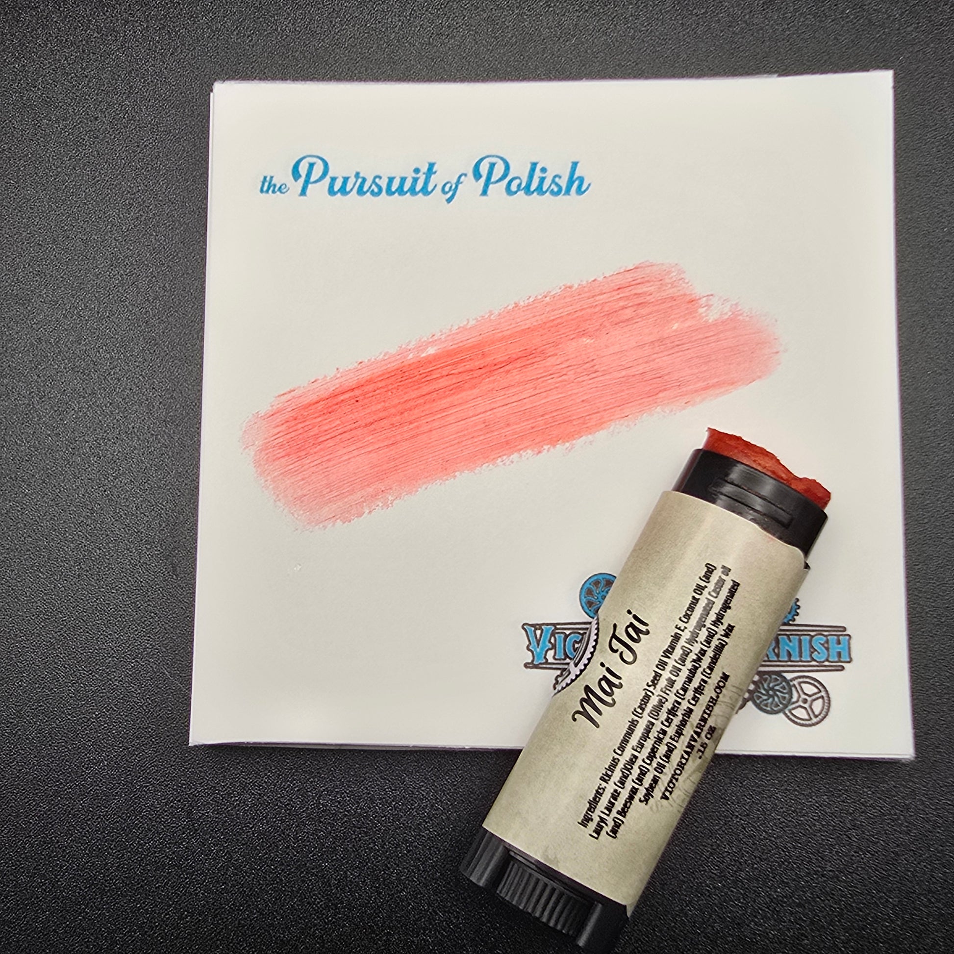 Ingredients: Ricinus Communis (Castor) Seed Oil Vitamin E, Coconut Oil, (and) Lauryl Laurate (and)Olea Europaea (Olive) Fruit Oil (and) Hydrogenated Castor oil (and) Beeswax (and) Copernicia Cerifera (Carnauba)Wax (and) Hydrogenated Soybean Oil (and) Euphorbia Cerifera (Candelilla) Wax, Lip safe fragrance and tint