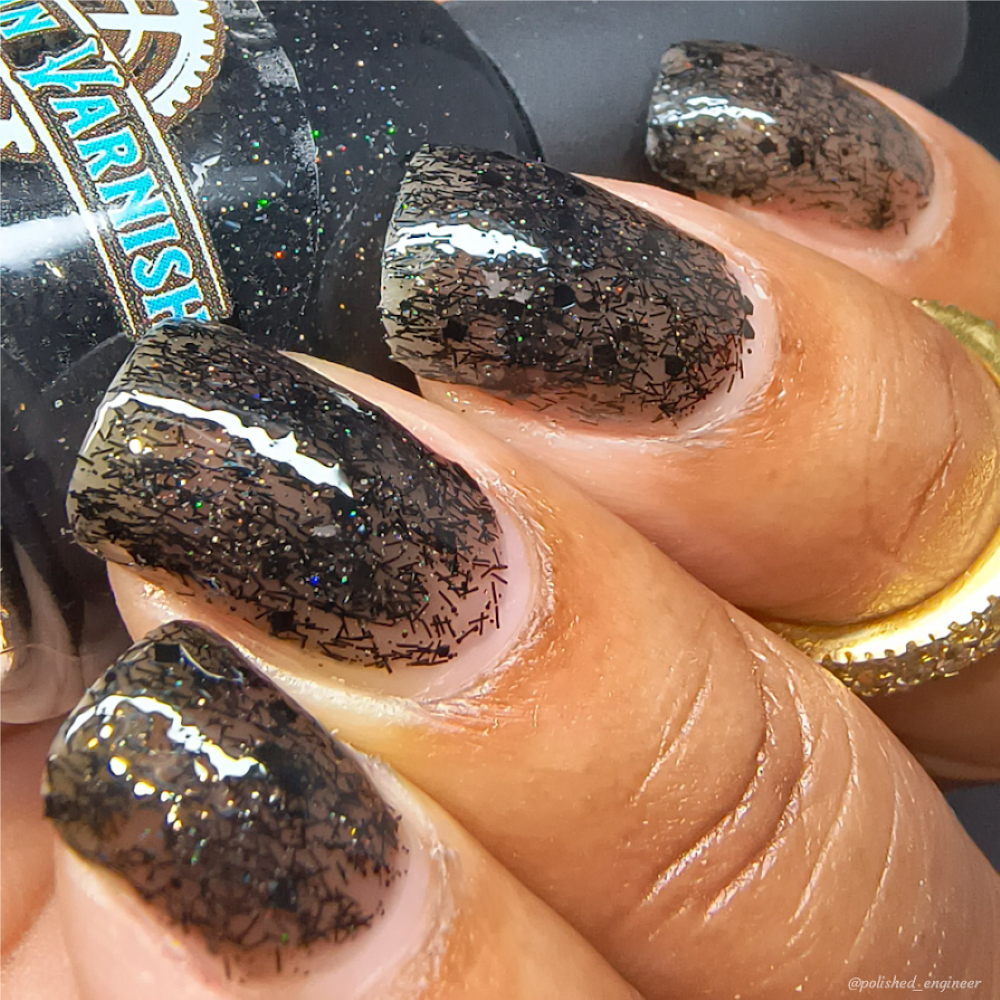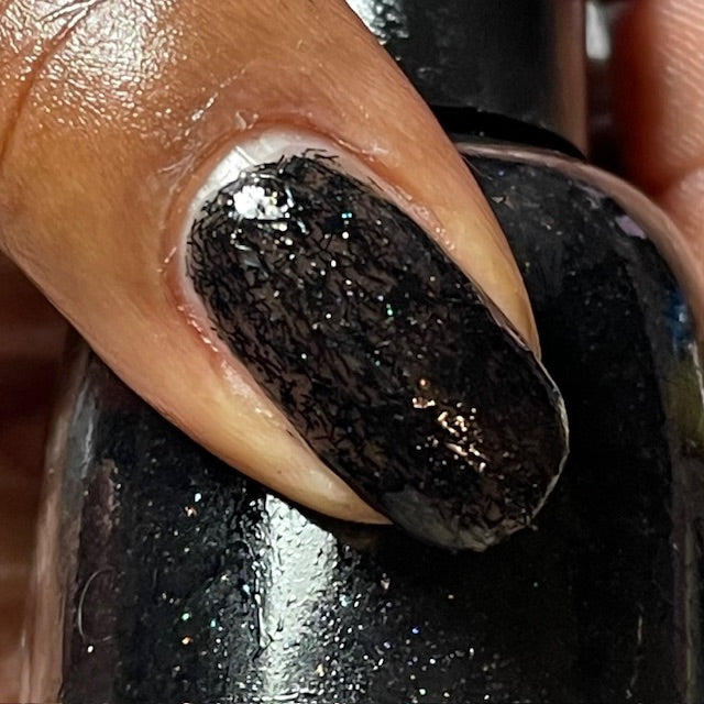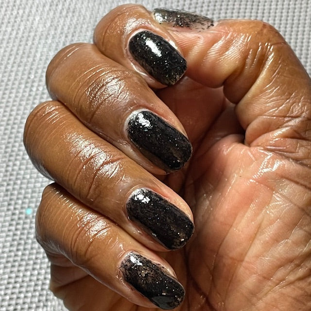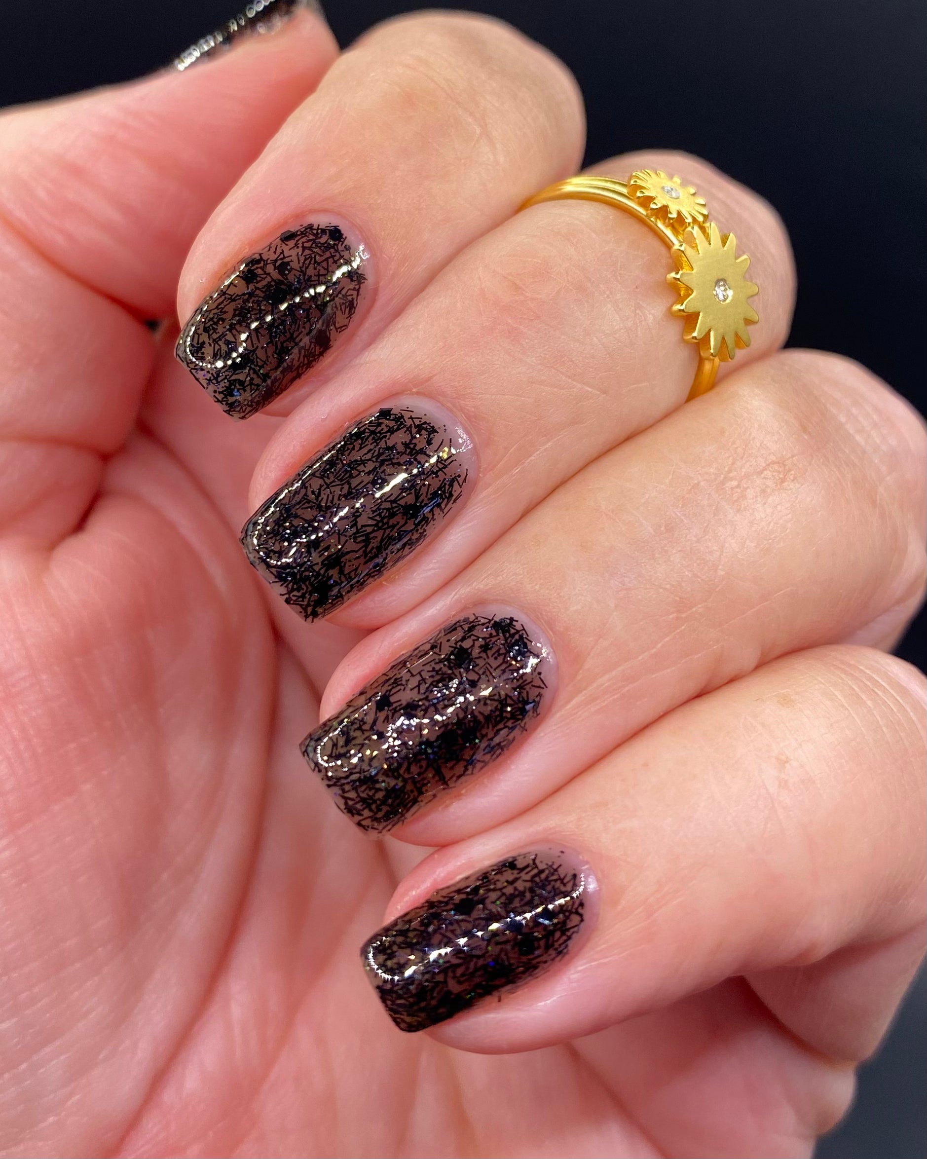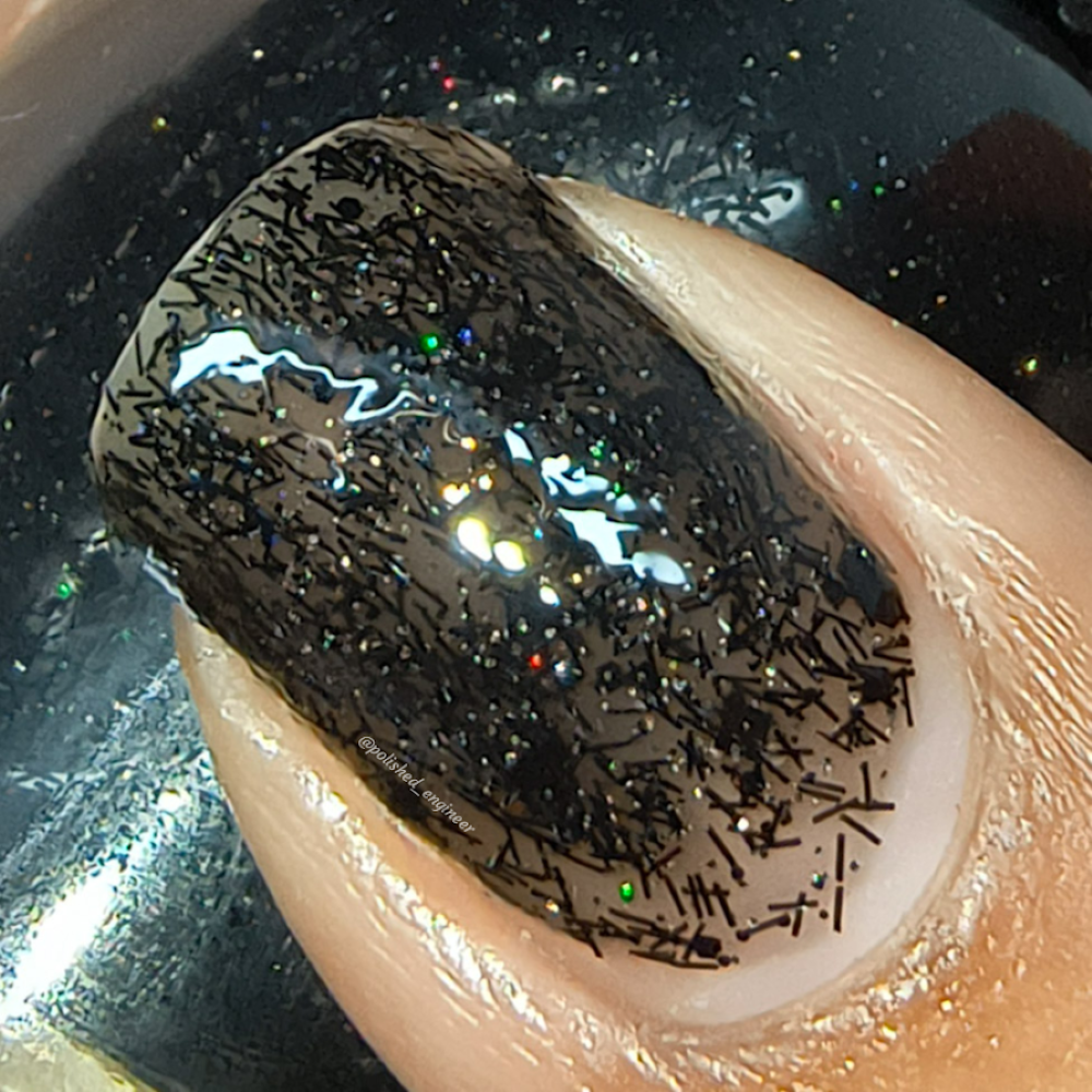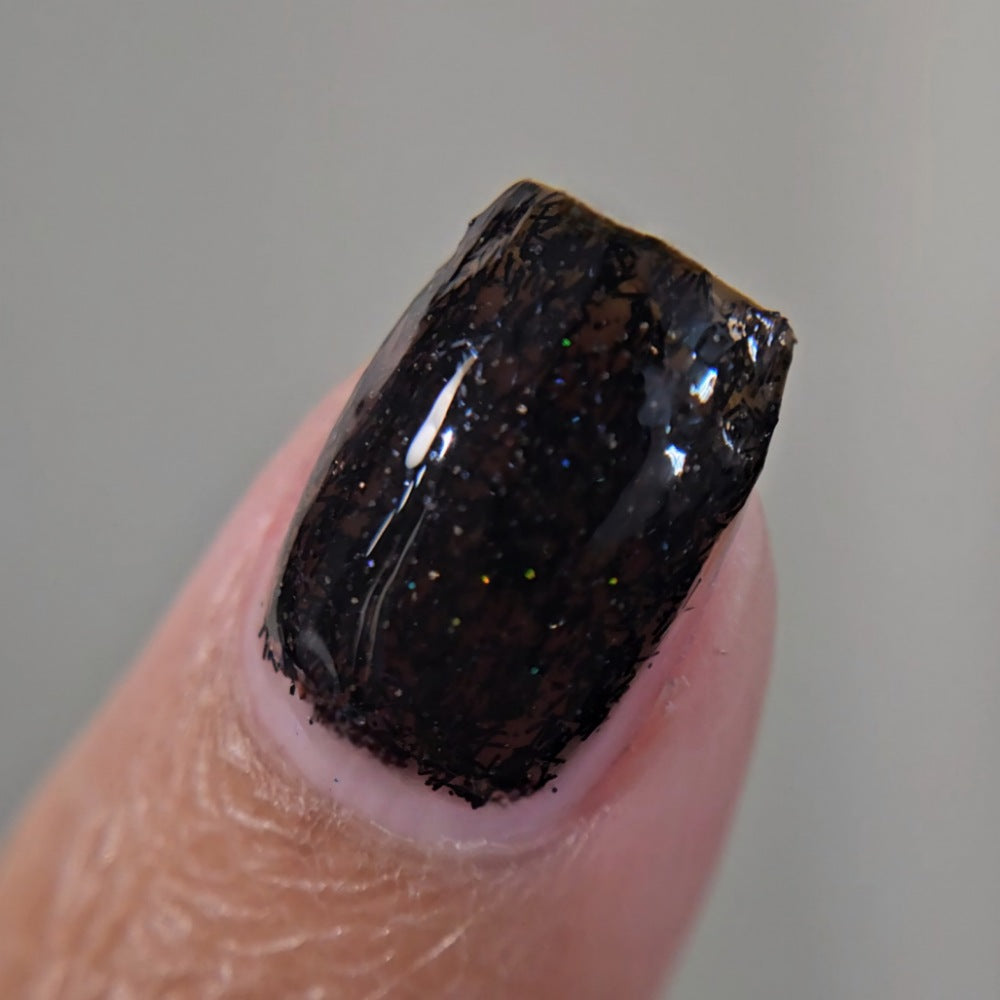 A black jelly base with black micro shreds, black glitters, and black micro holo