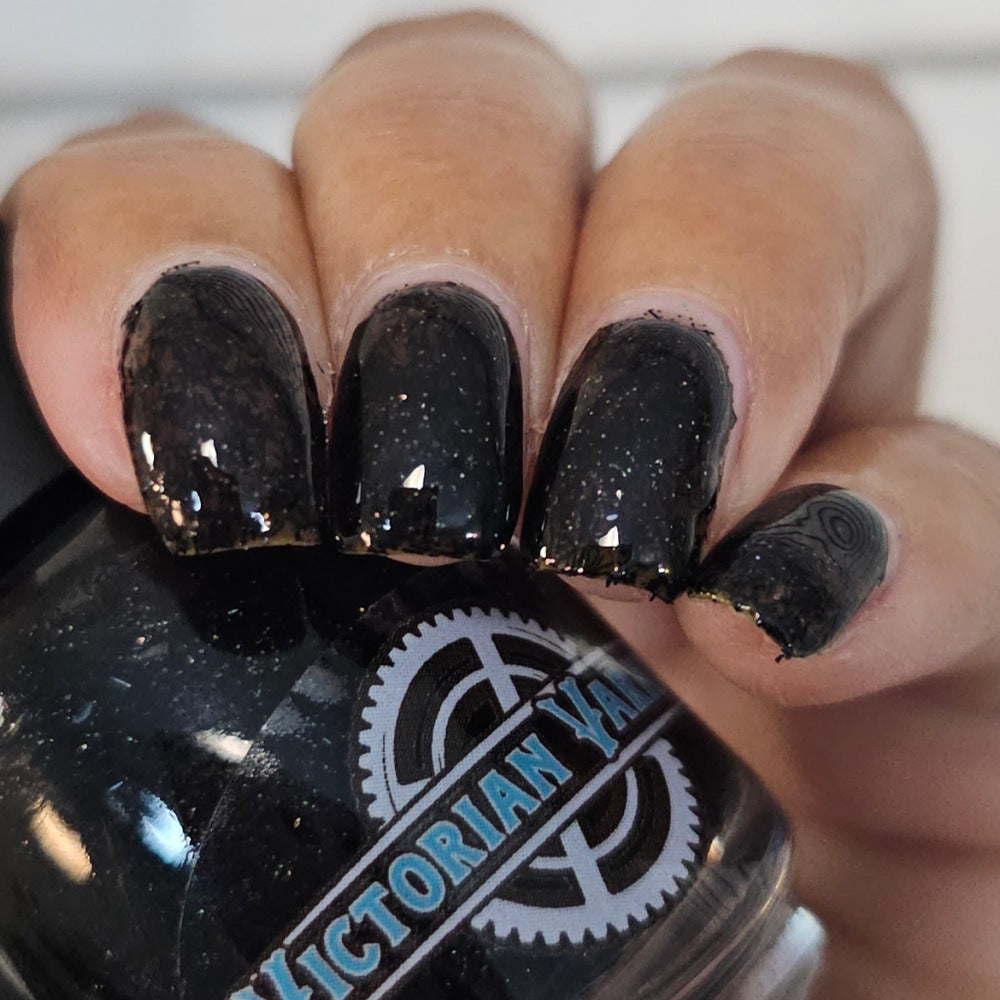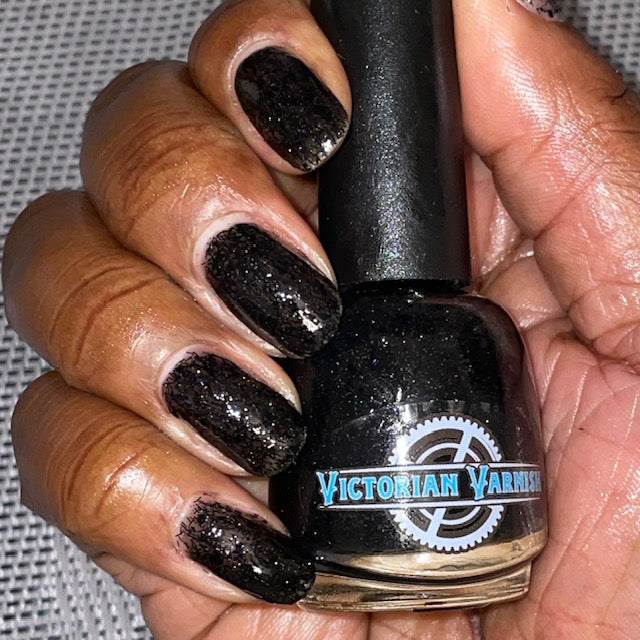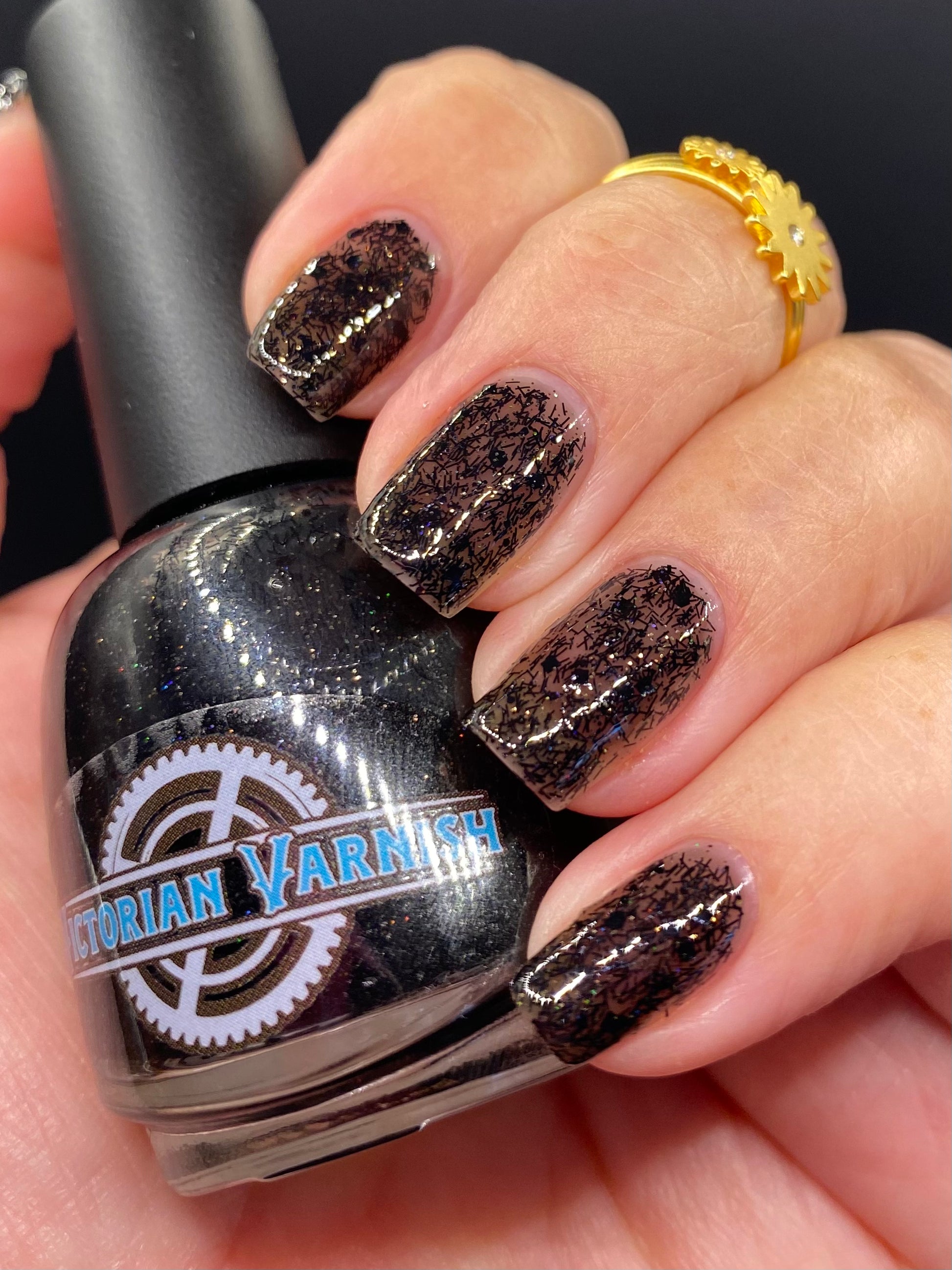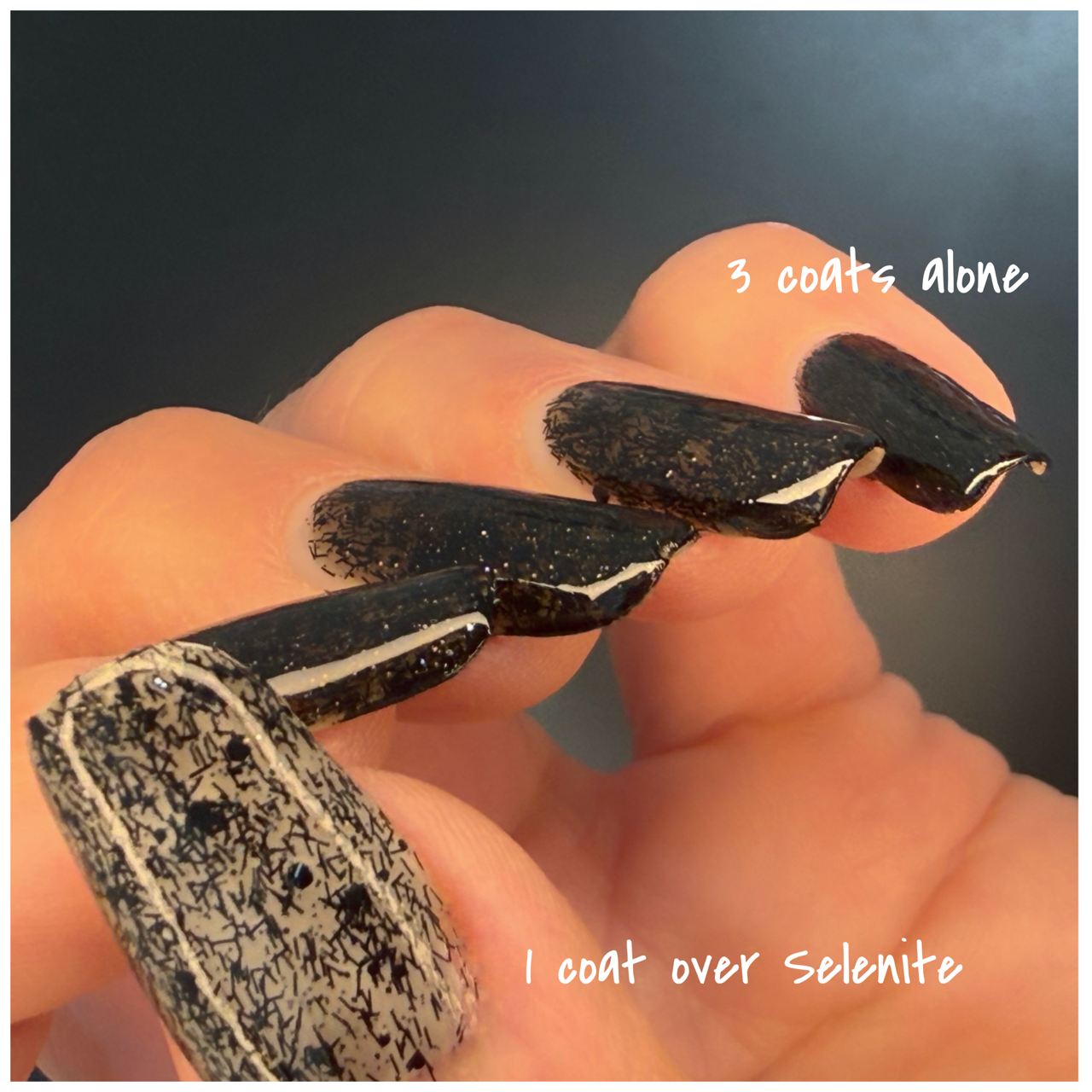 A black jelly base with black micro shreds, black glitters, and black micro holo
