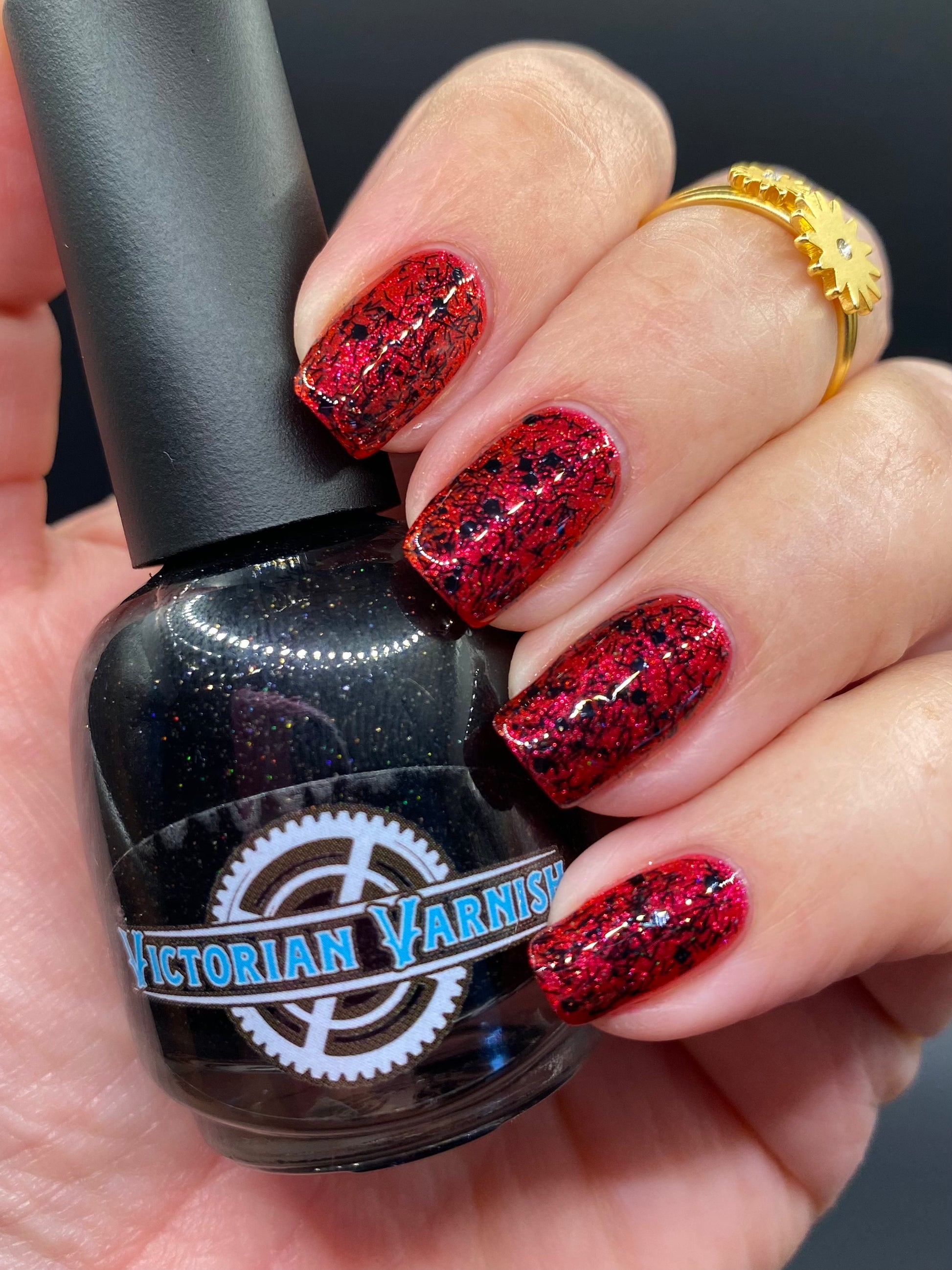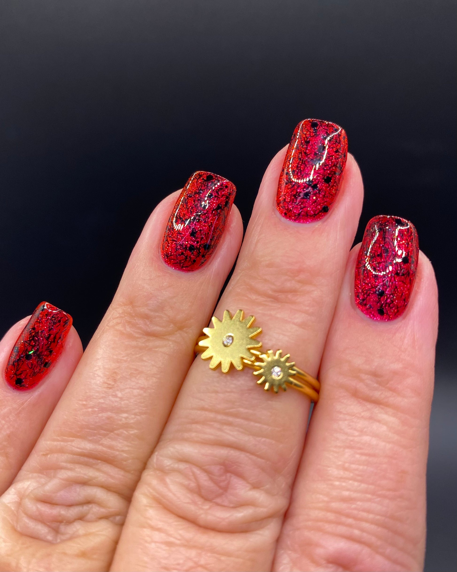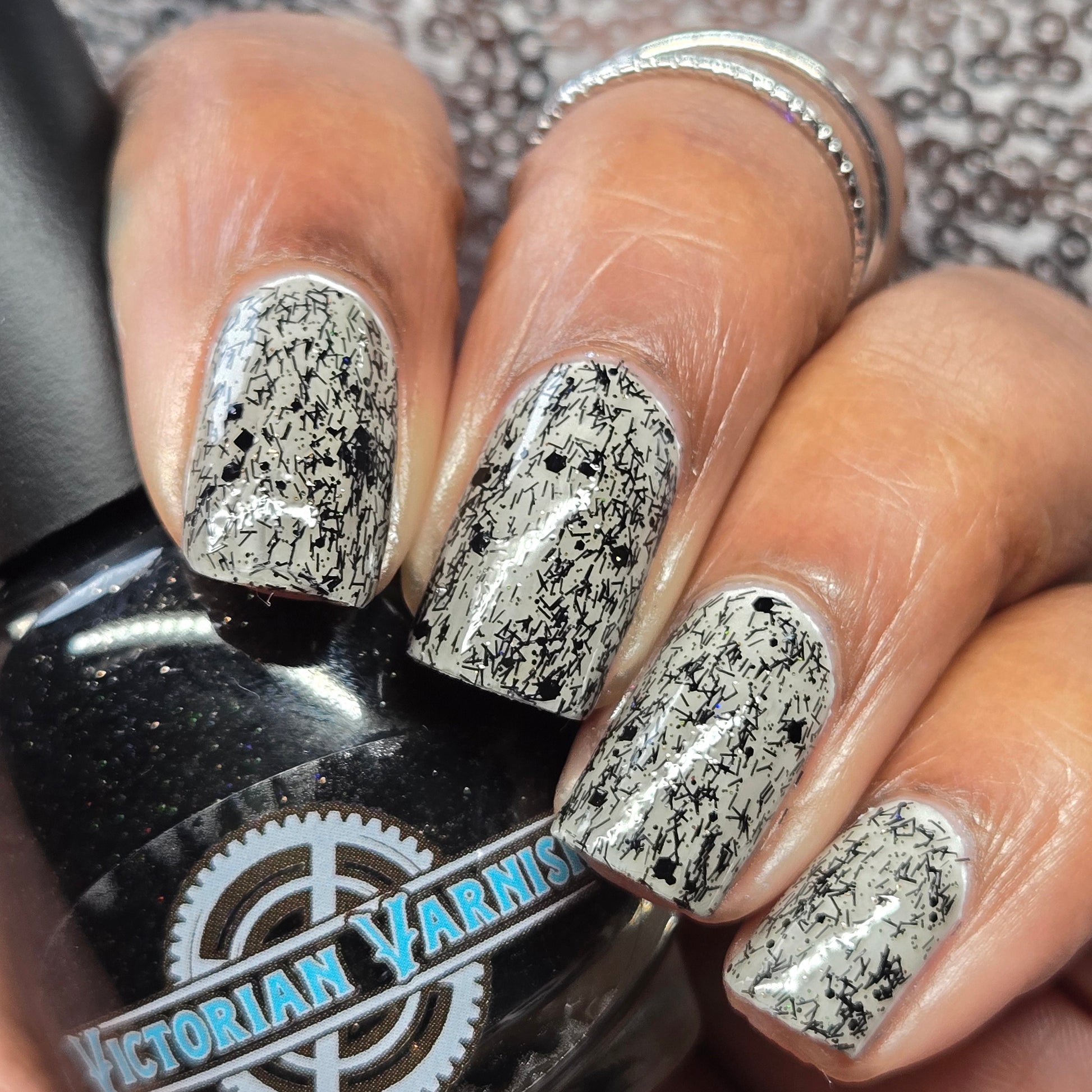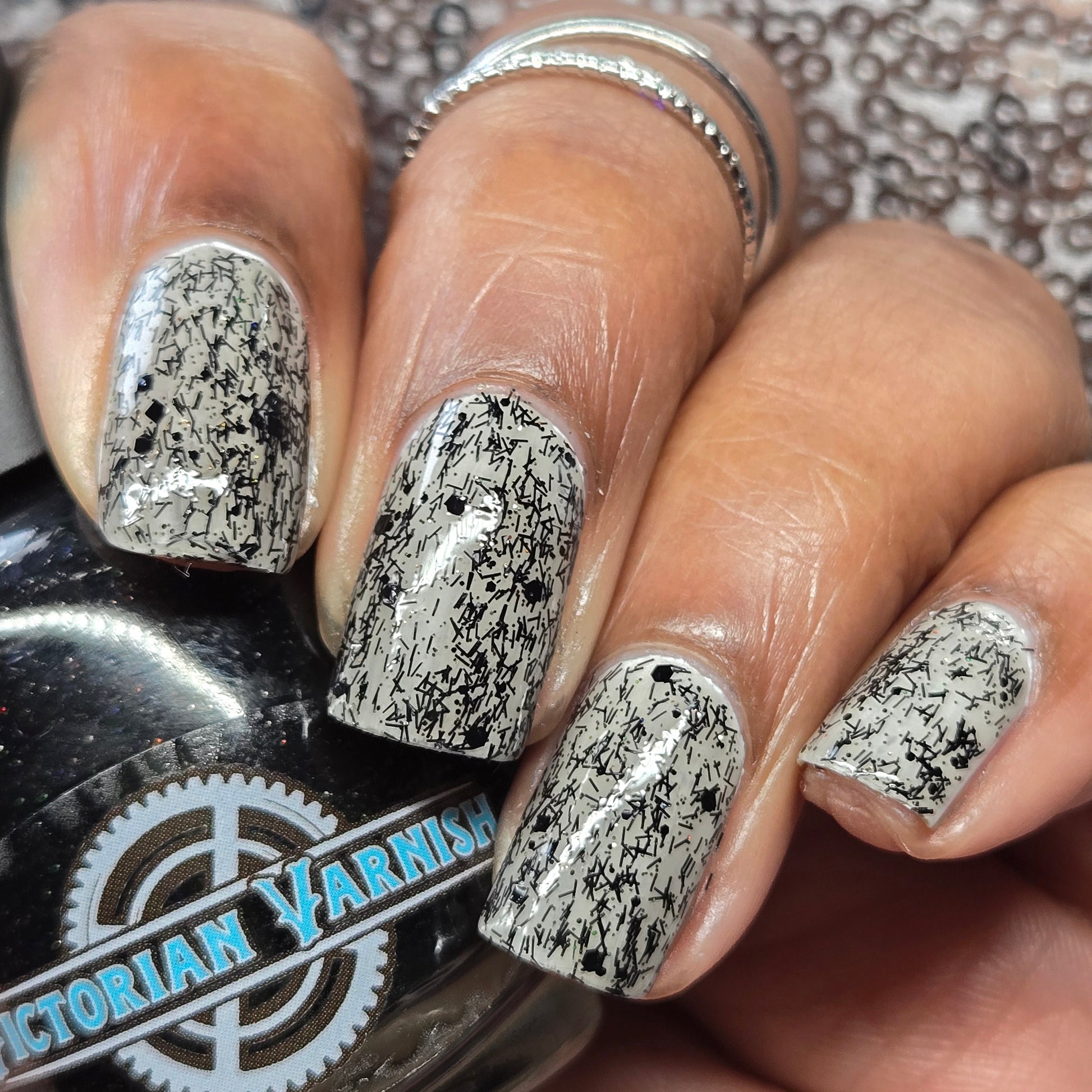 A black jelly base with black micro shreds, black glitters, and black micro holo