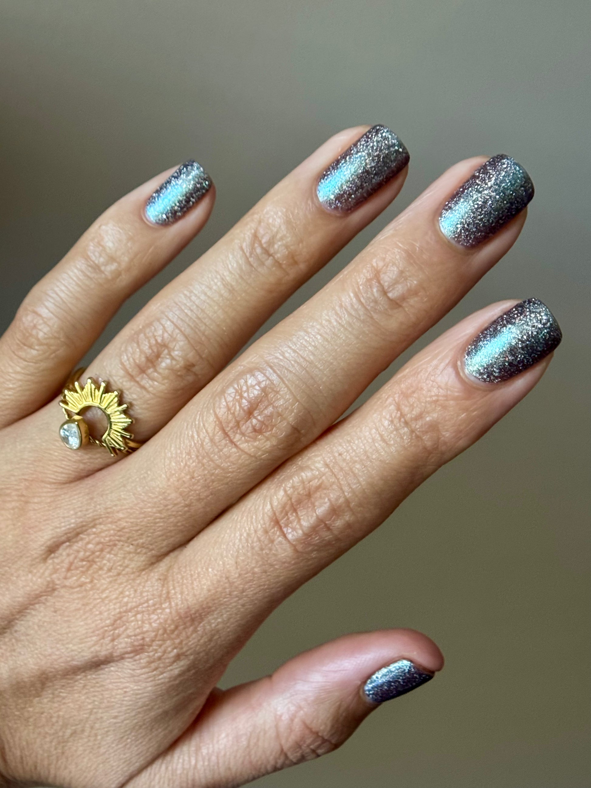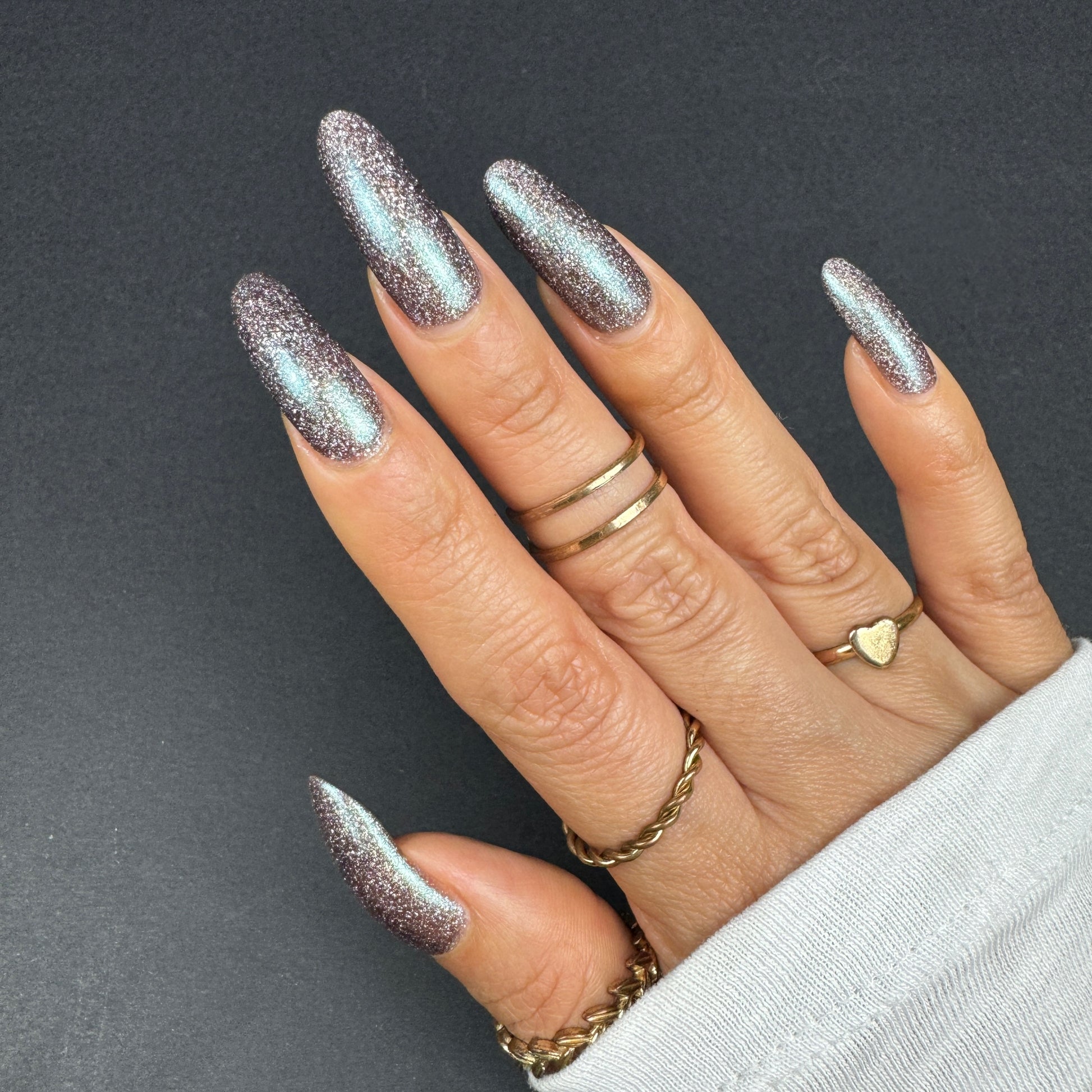 Dee - A deep indigo jelly base with violet/red shimmer and loads of holo flakies