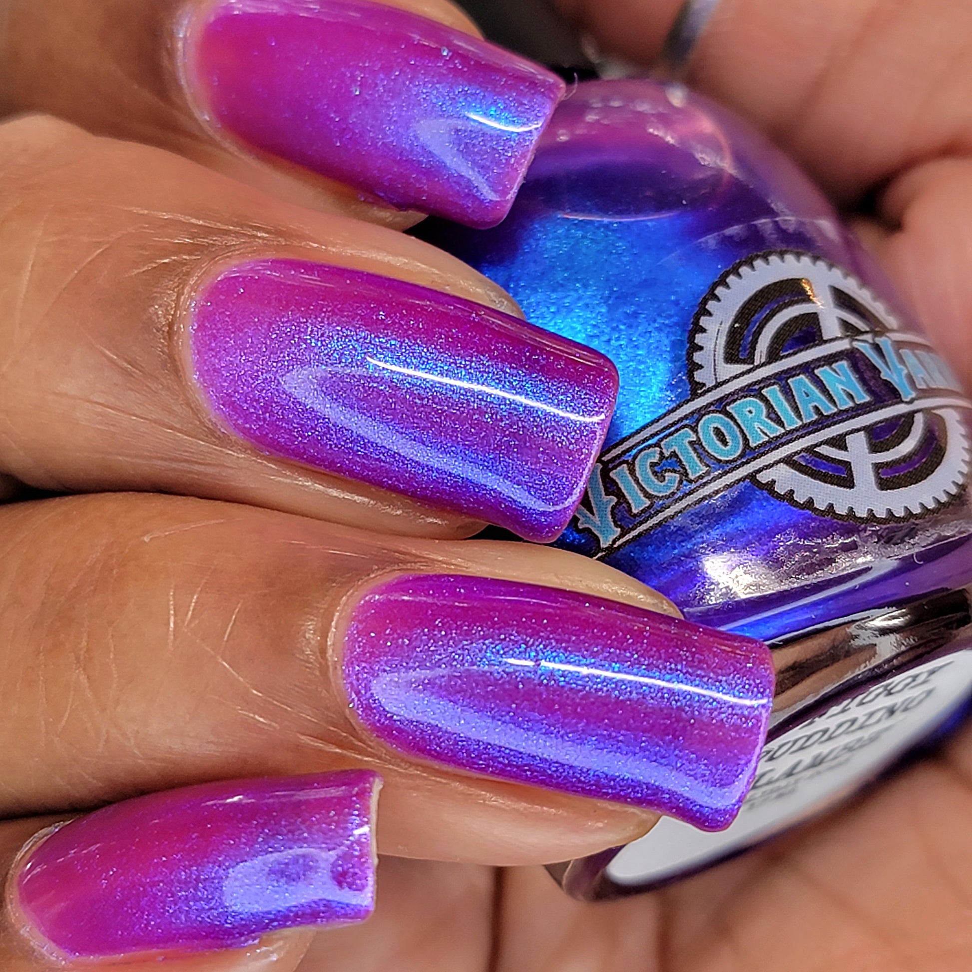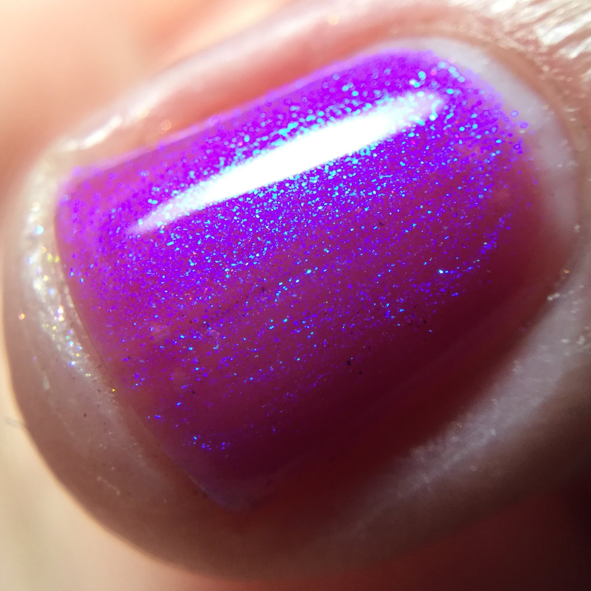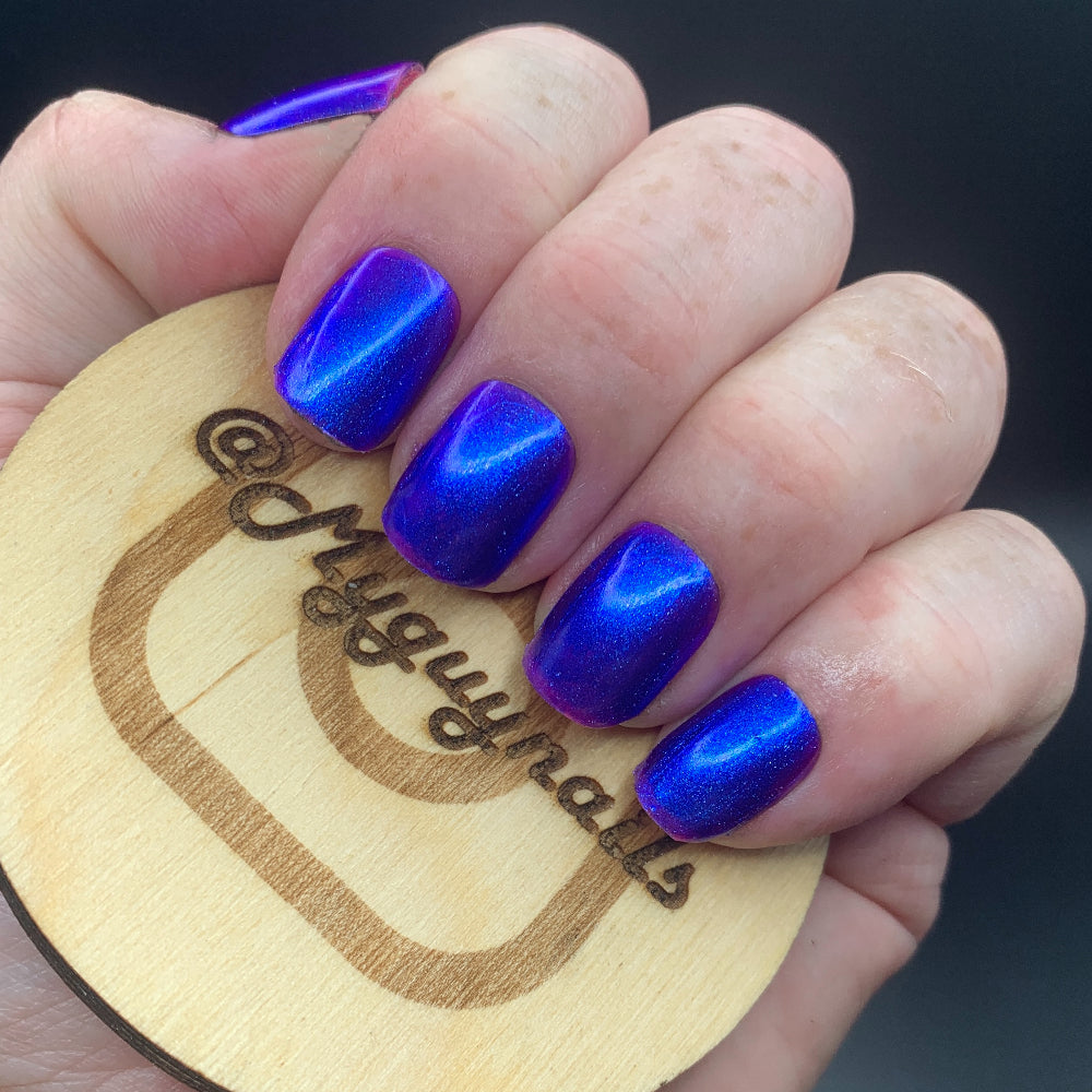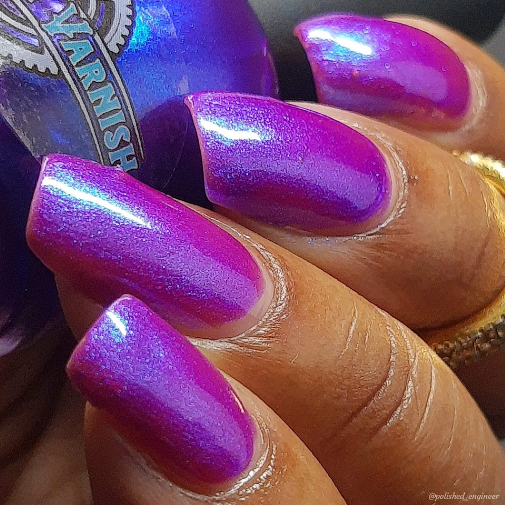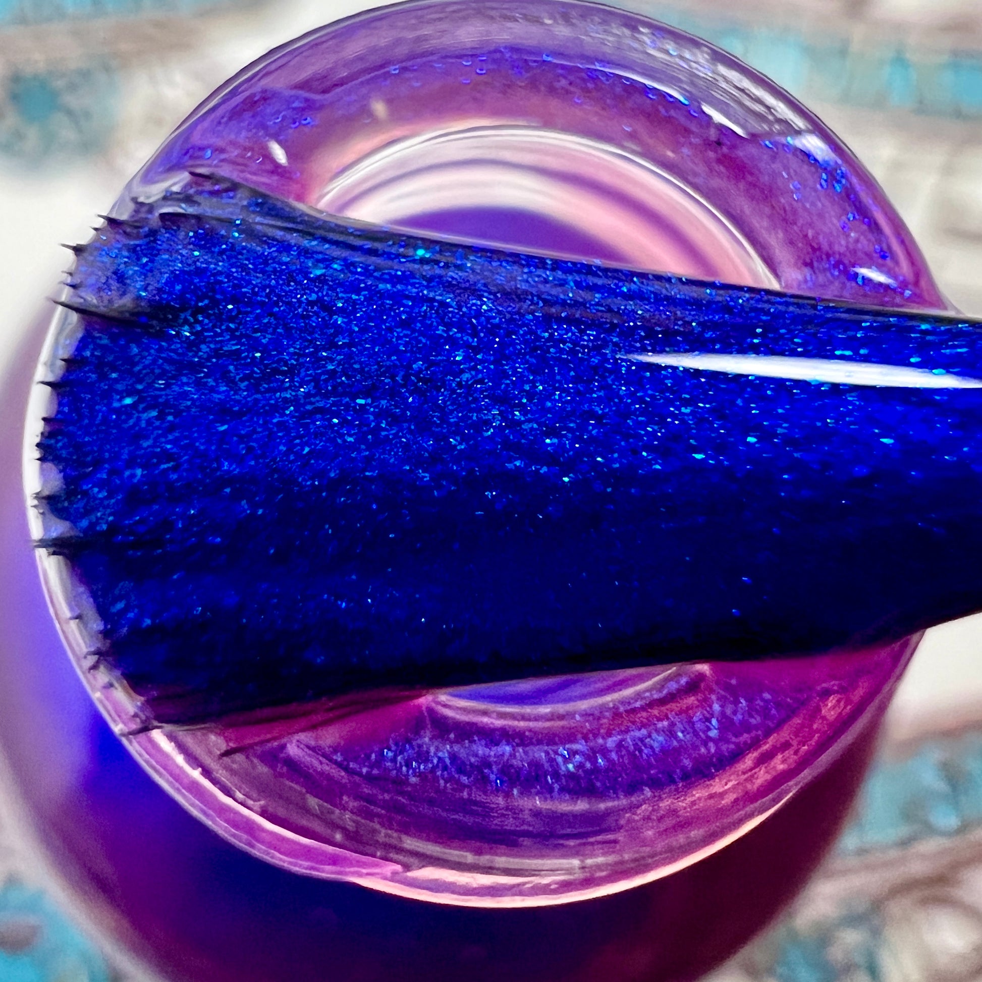 We were inspired by lighting the pudding on fire and the blue flame that emerges - A Figgy purple jelly base with berry undertones and large particle aurora shimmer in blues/purples.