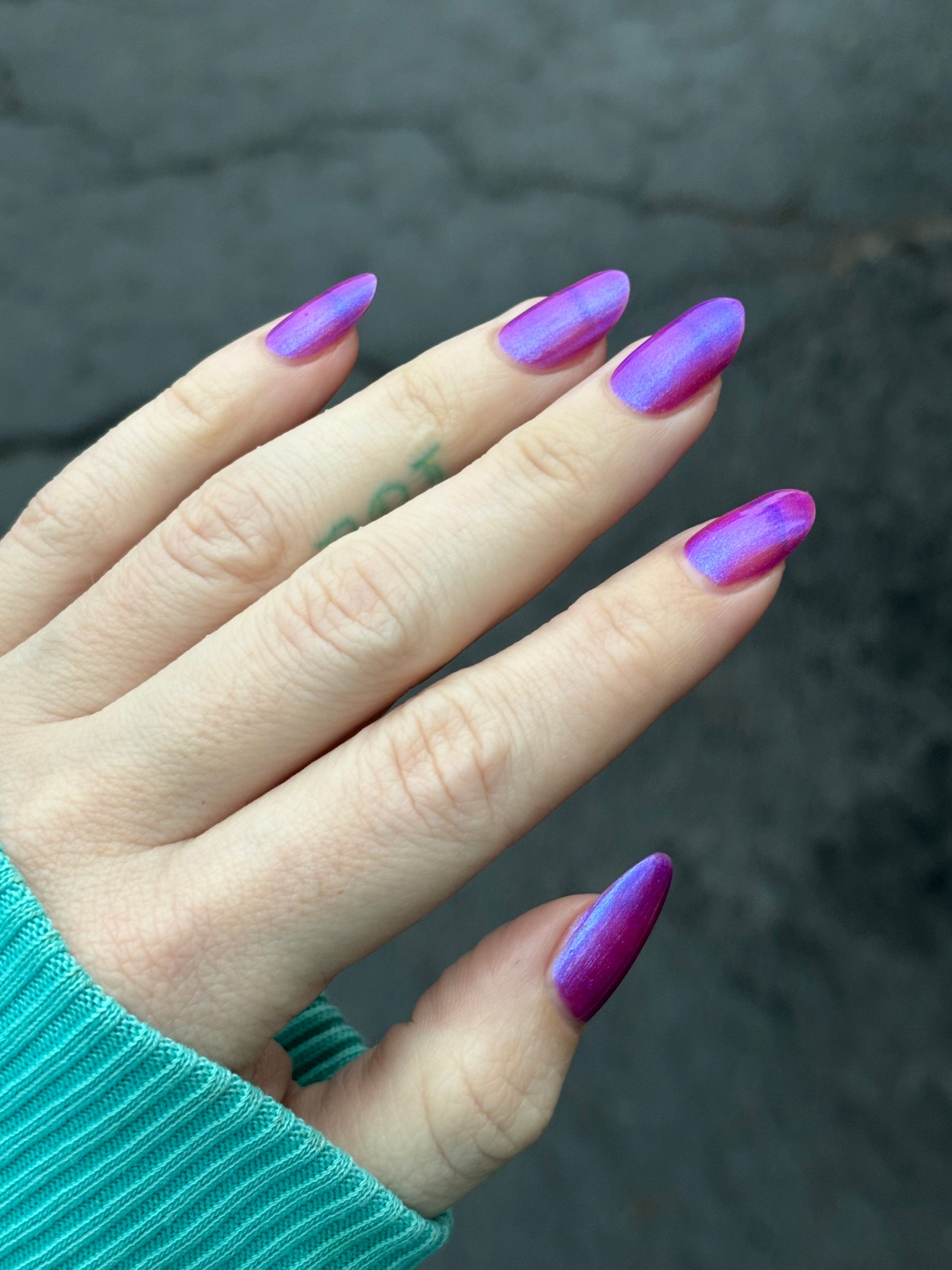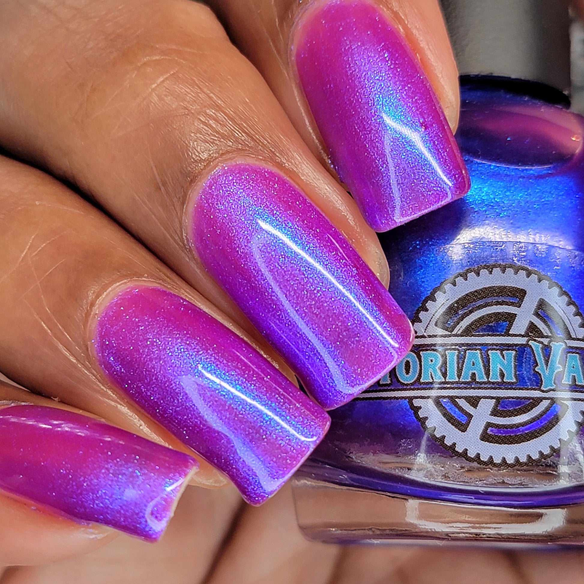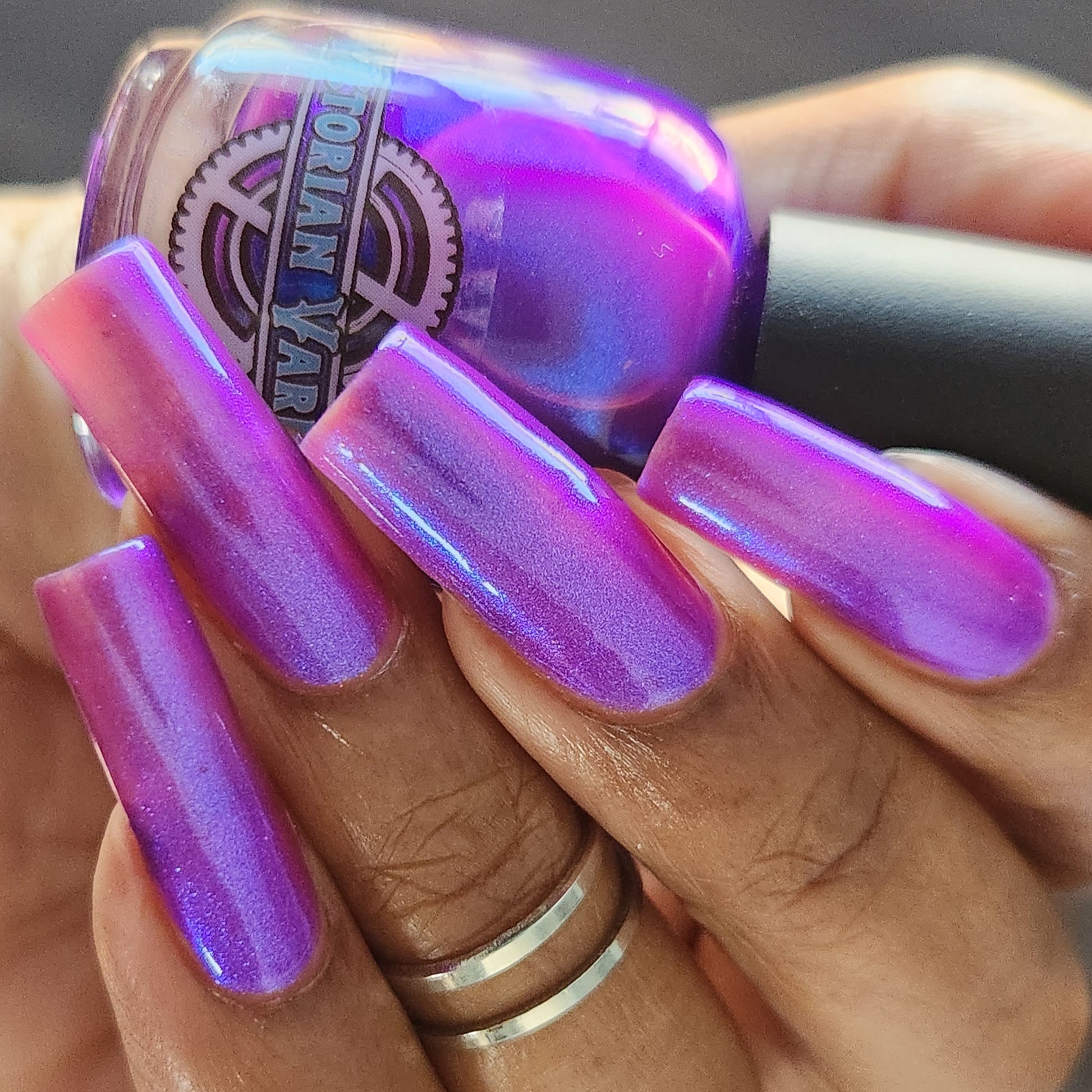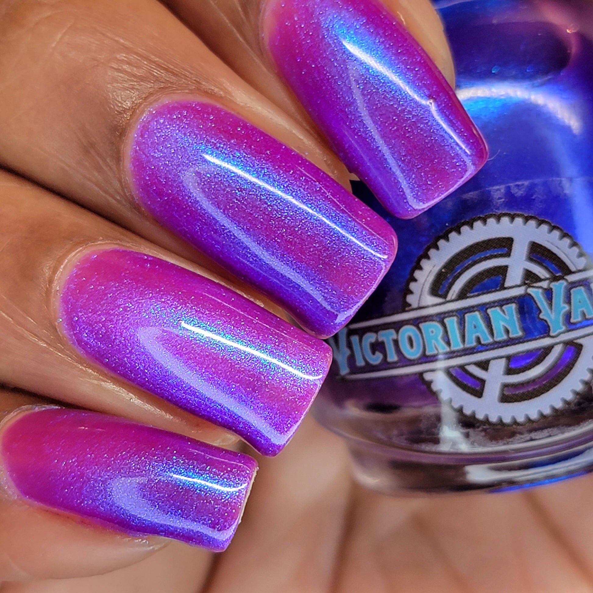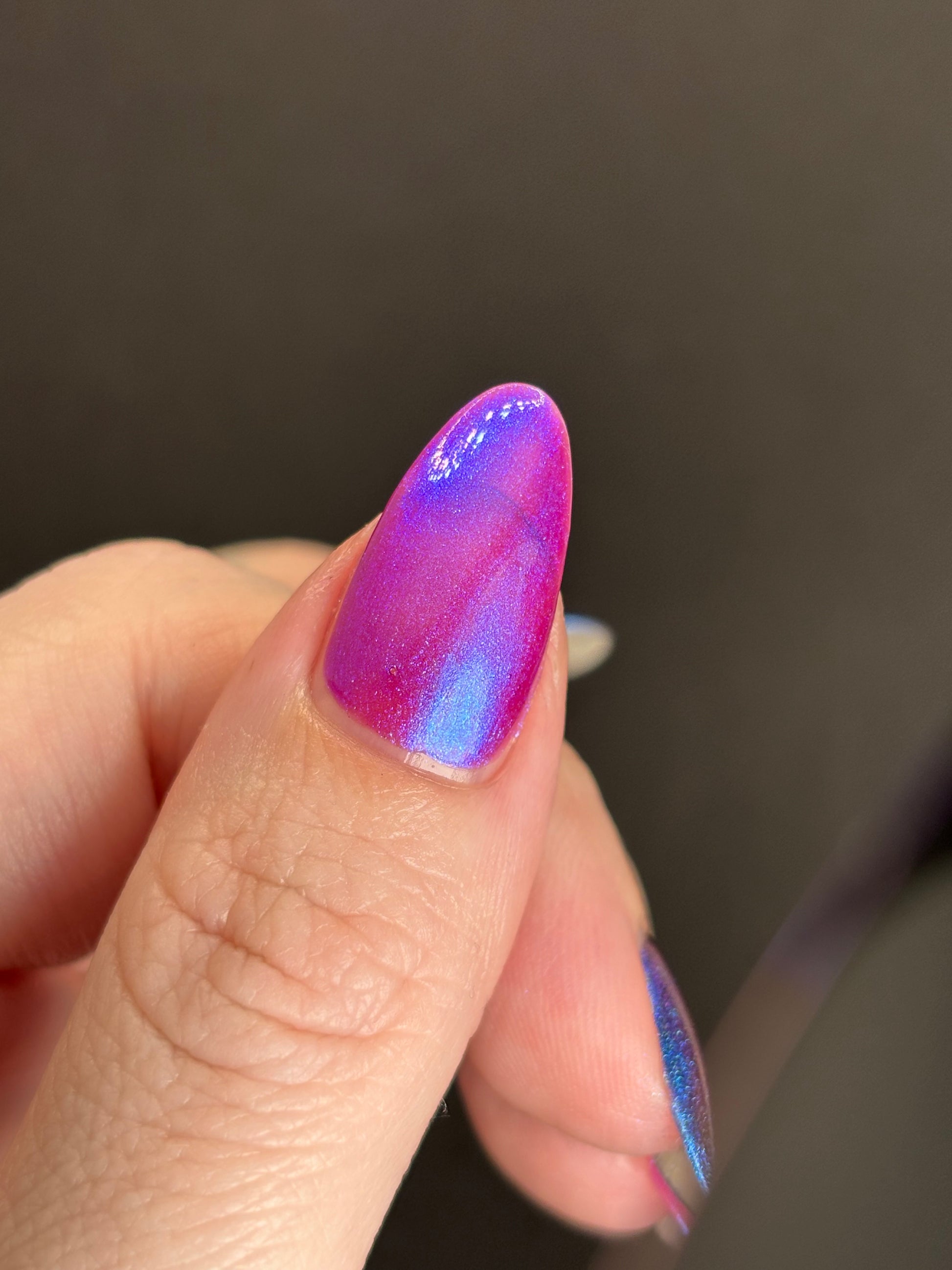 We were inspired by lighting the pudding on fire and the blue flame that emerges - A Figgy purple jelly base with berry undertones and large particle aurora shimmer in blues/purples.