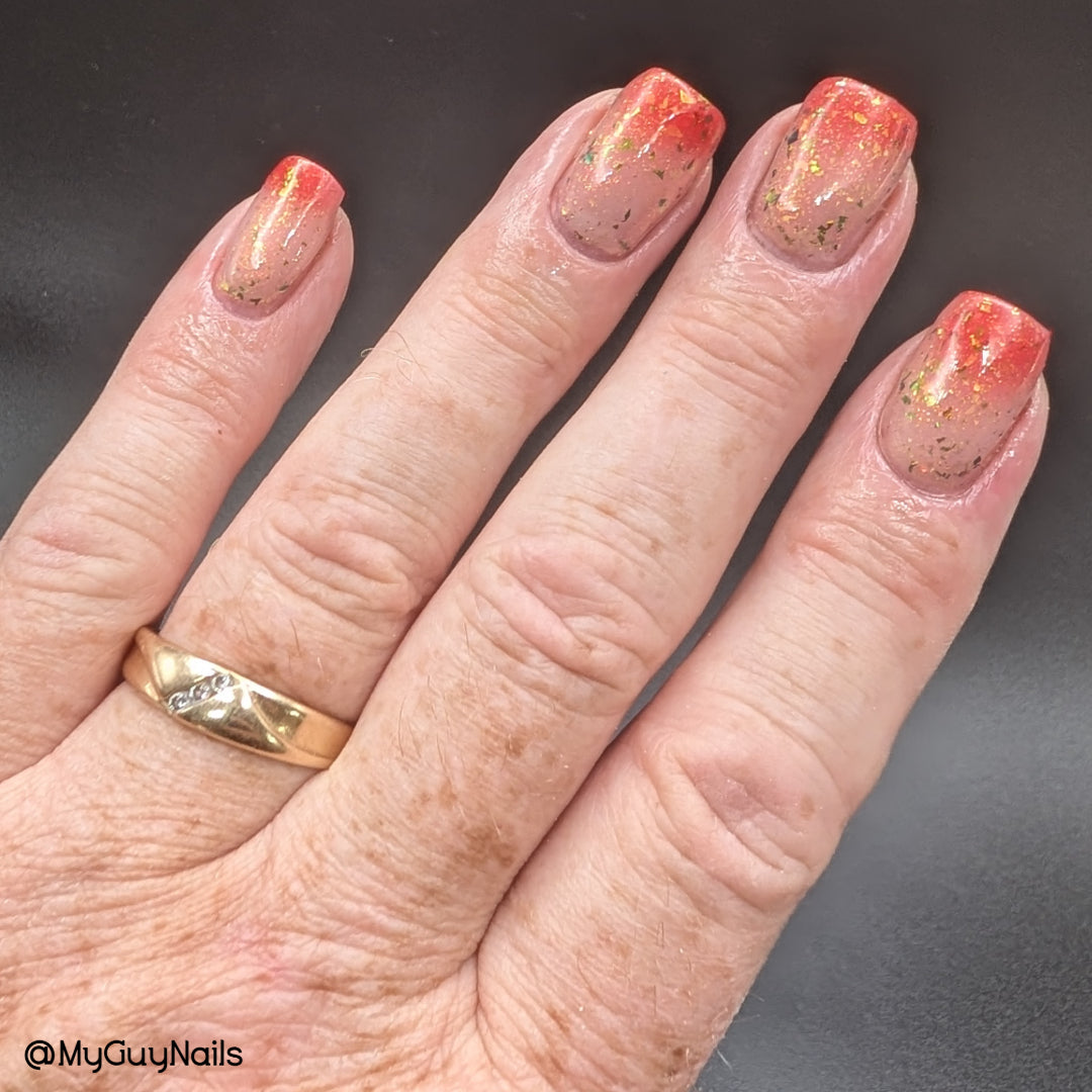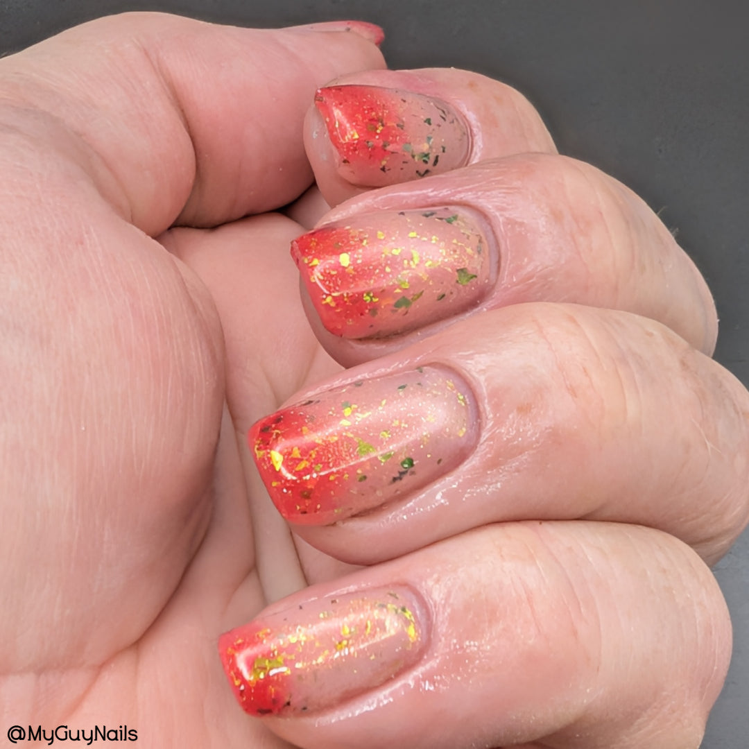 Comes with Collectible sticker/These are limited once they are gone they’re gone! Description: Red cold state to clear warm state, with red/orange aurora shimmer and UCC Flakies and Crystal Chameleon flakies.