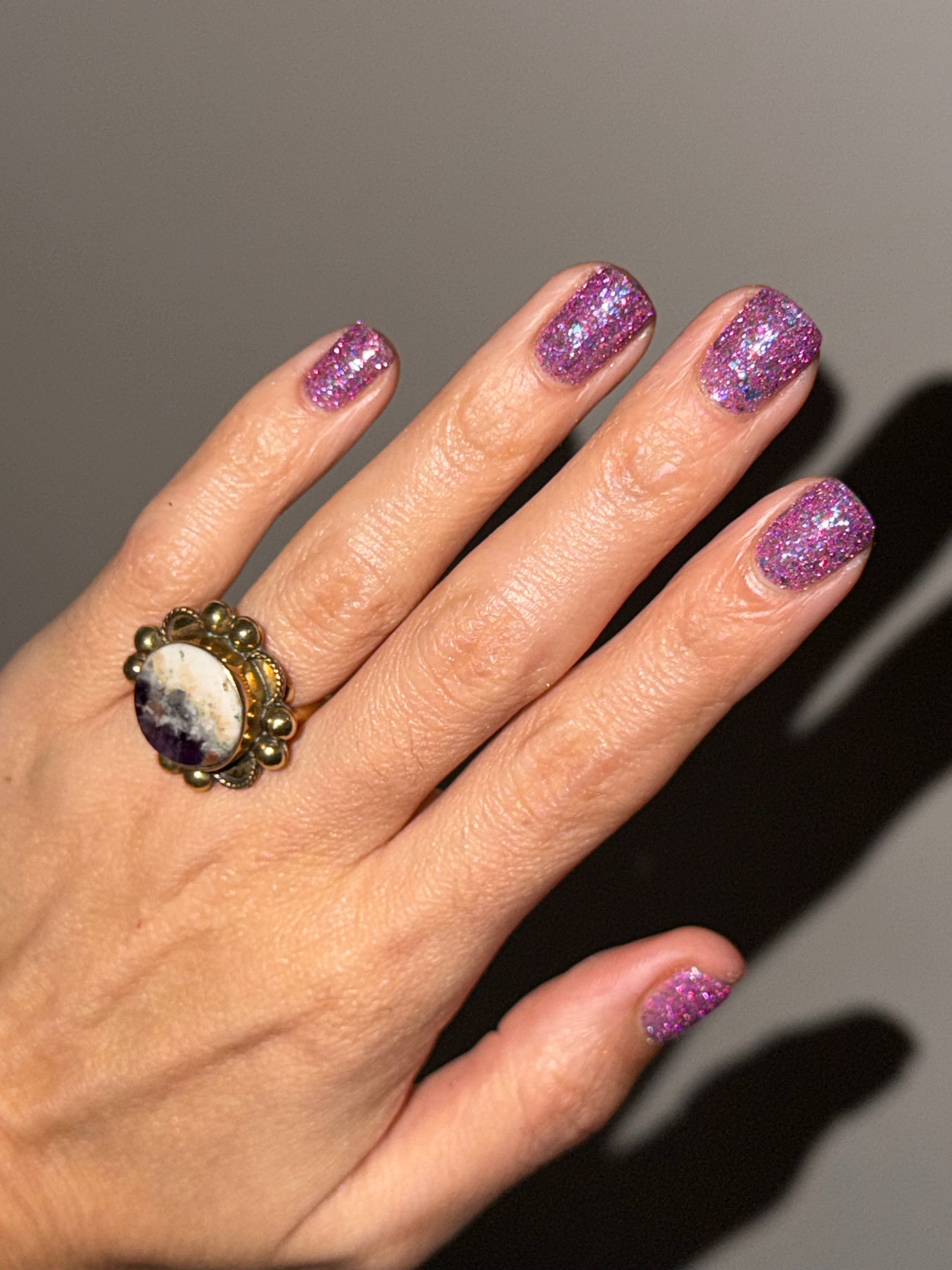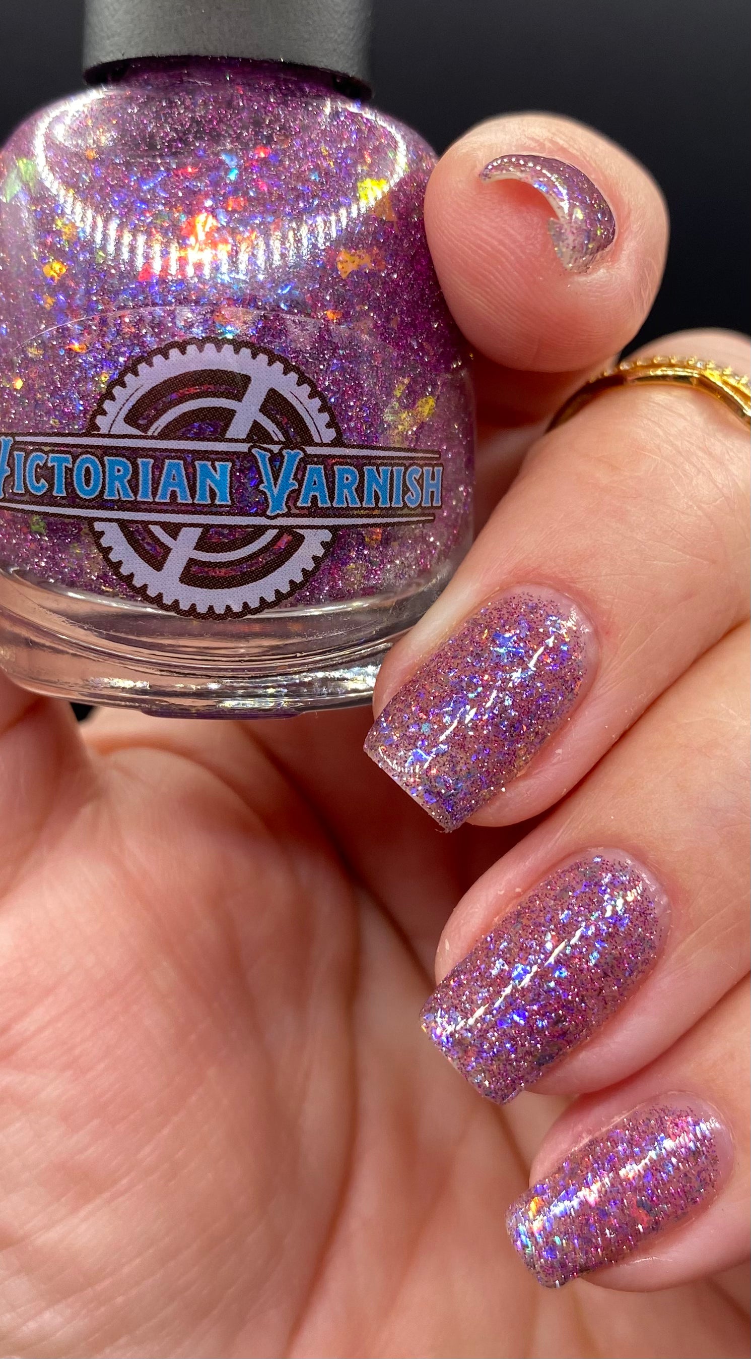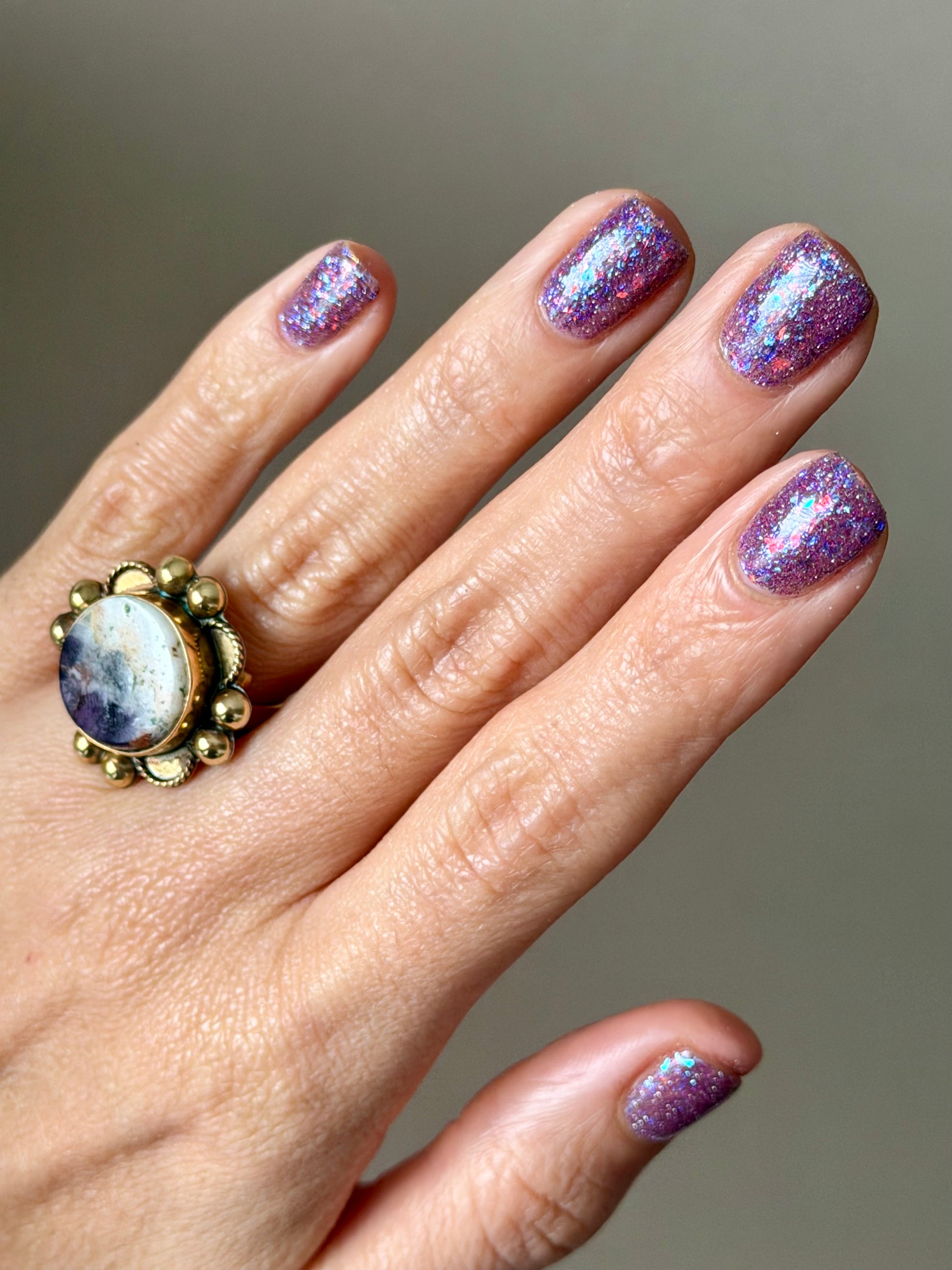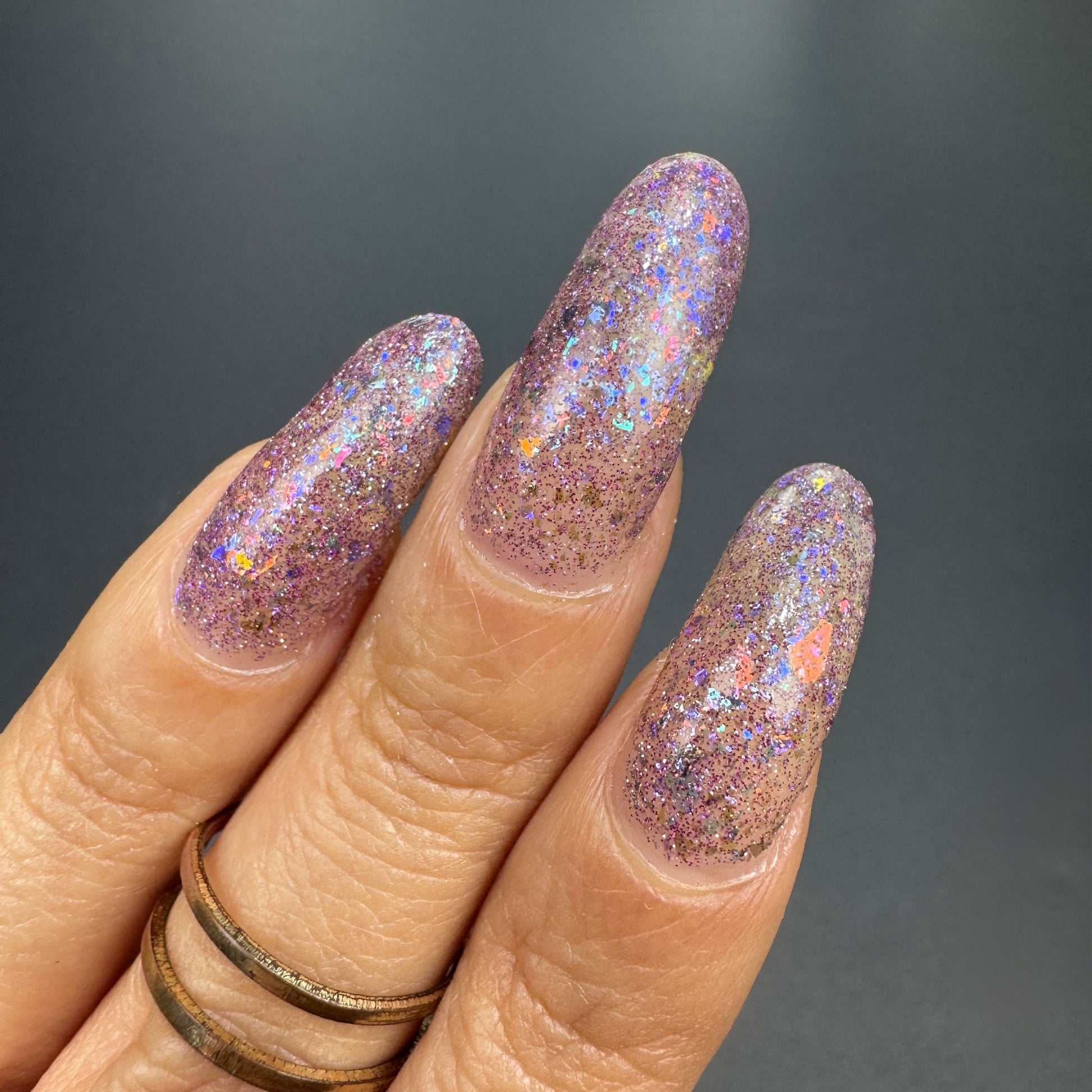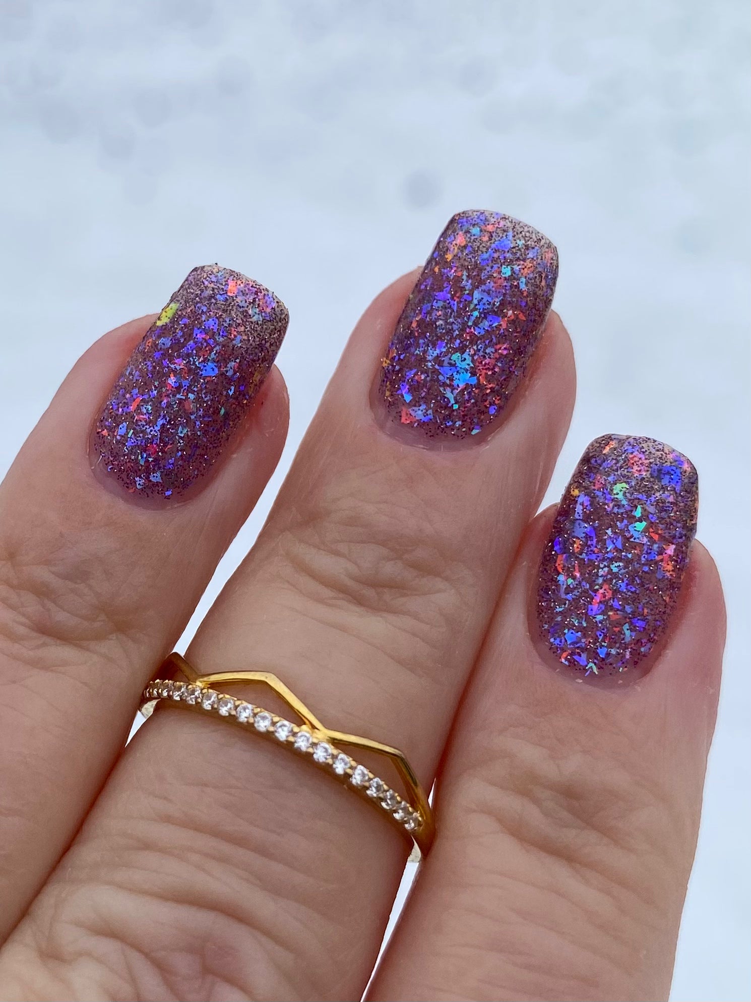 IYKYK - it was bad ya'll - those who lived thru it truly felt we had survived! (Butterball sibling) - can be used as a topper - clear base with Deep Purple reflective glitters with iridescent flakies and micro UCC flakies that make this one pop!