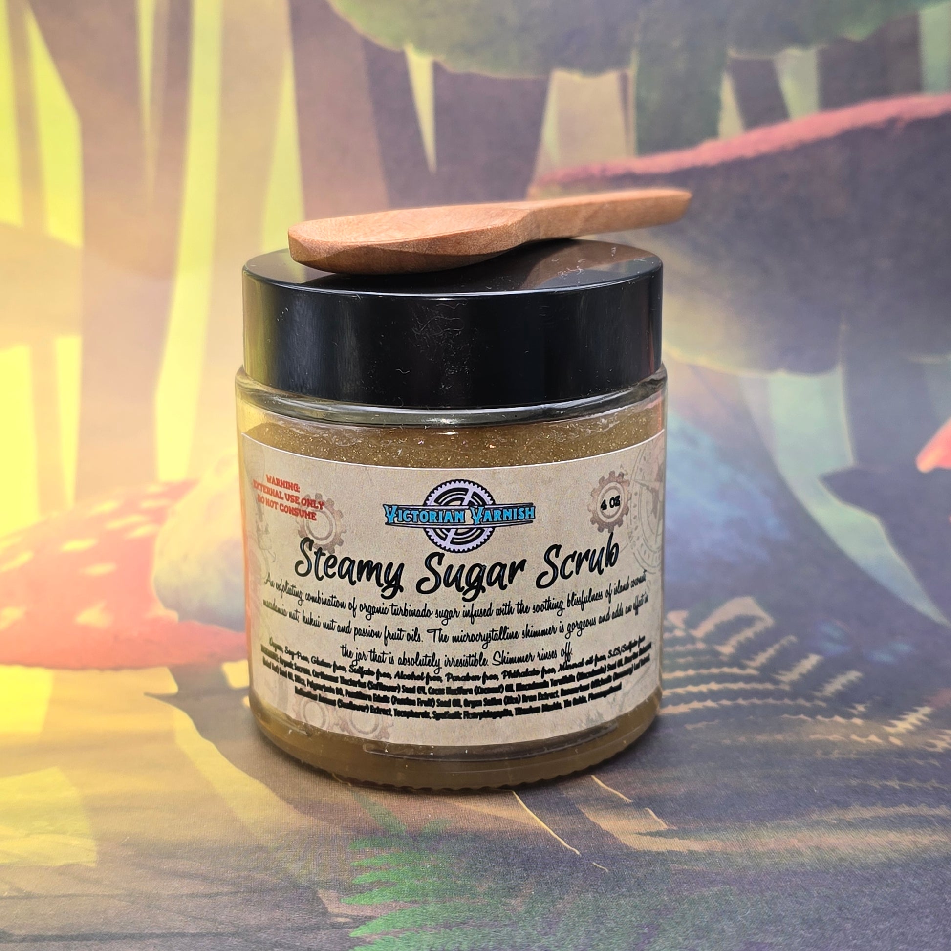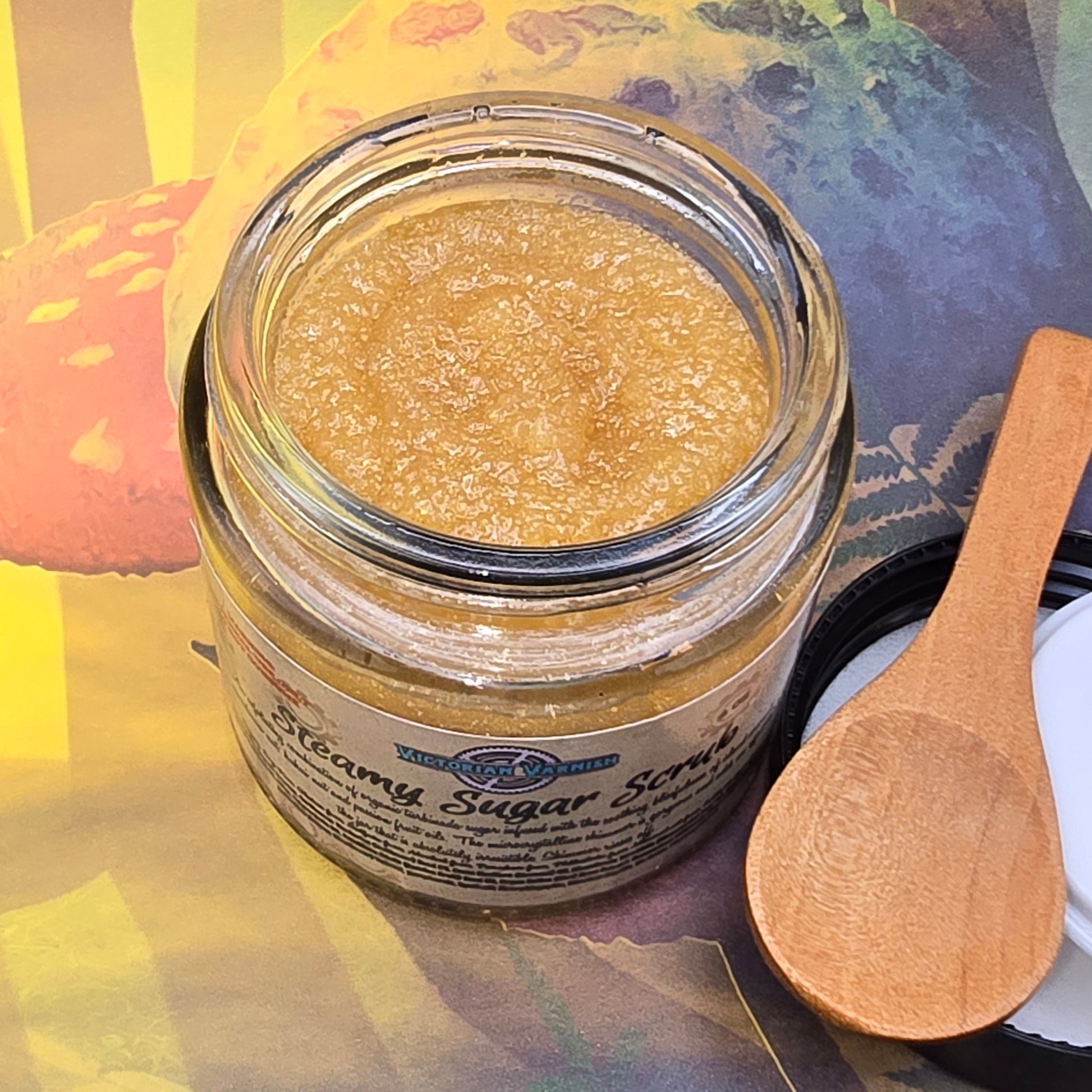 An exfoliating combination of organic turbinado sugar infused with the soothing blissfulness of island coconut, macadamia nut, kukui nut and passion fruit oils. The microcrystalline shimmer adds gorgeous luminosity to the skin but easily rinses off. Comes in a re-usable 4oz glass jar.