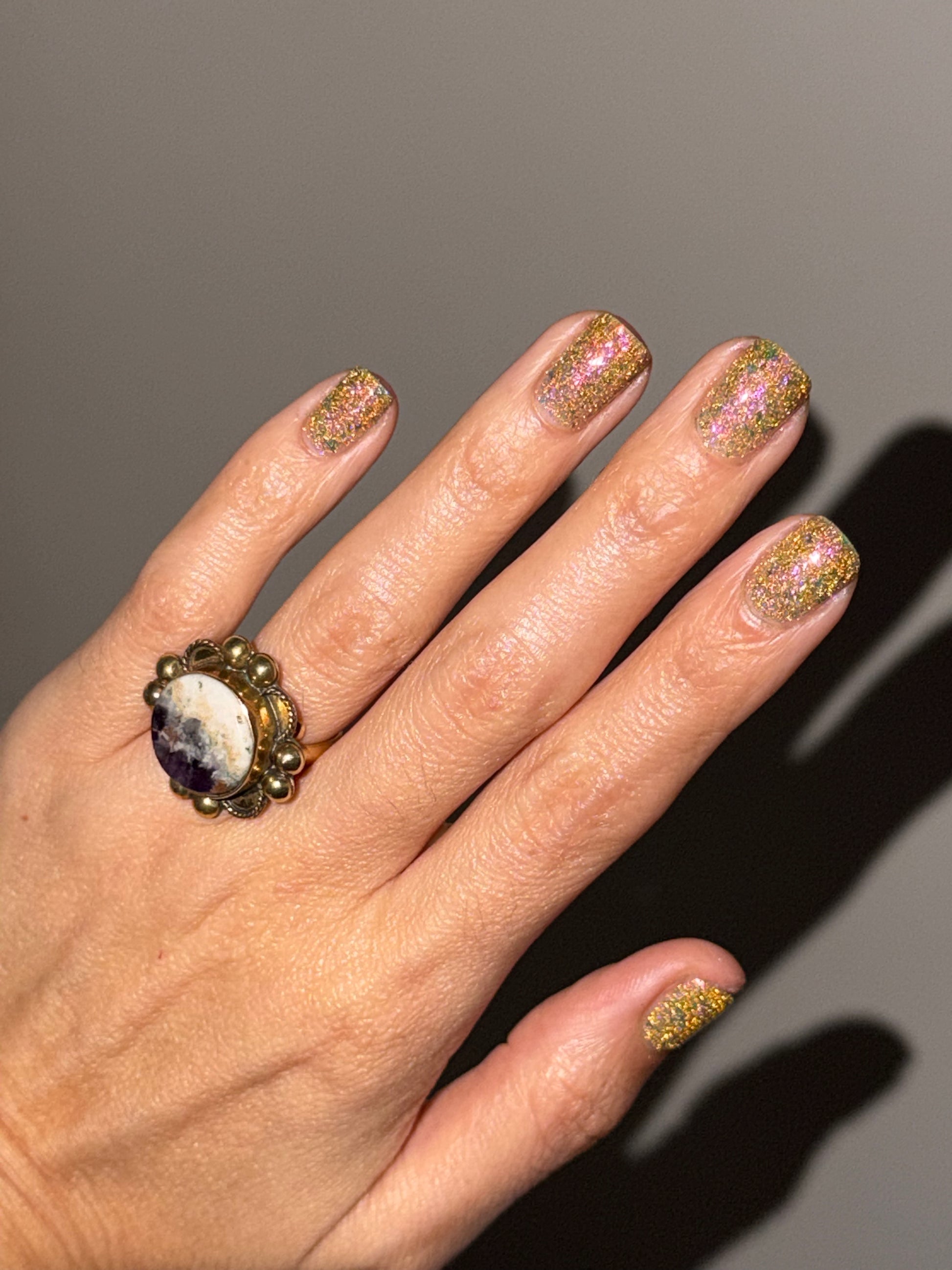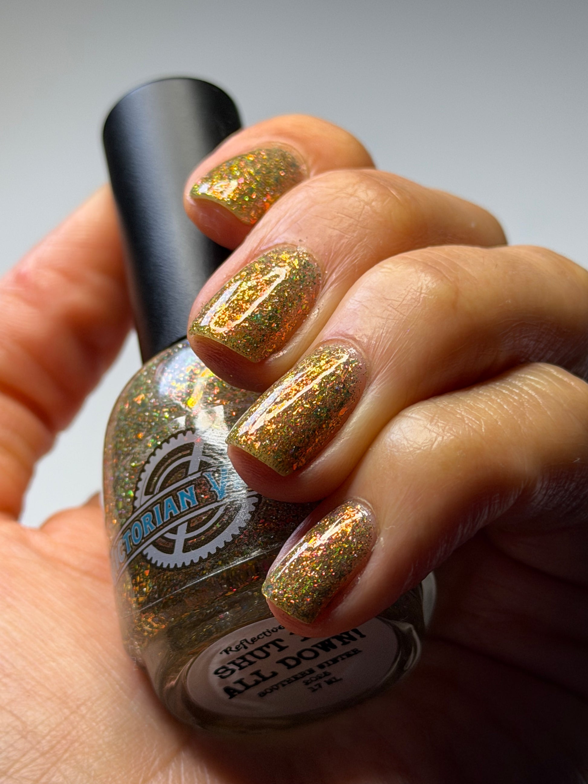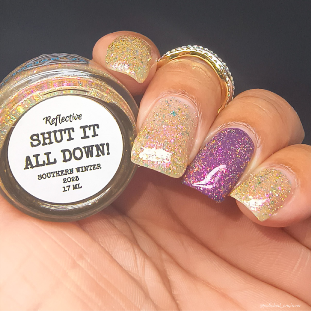 NO, here in the south most of us can't drive in snow and yes they close all the roads. (Butterball sibling) - can be used as a topper - clear base with Golden reflective glitters with a heavy dose of micro holo flakies and iridescent flakies that range thru the rainbow!
