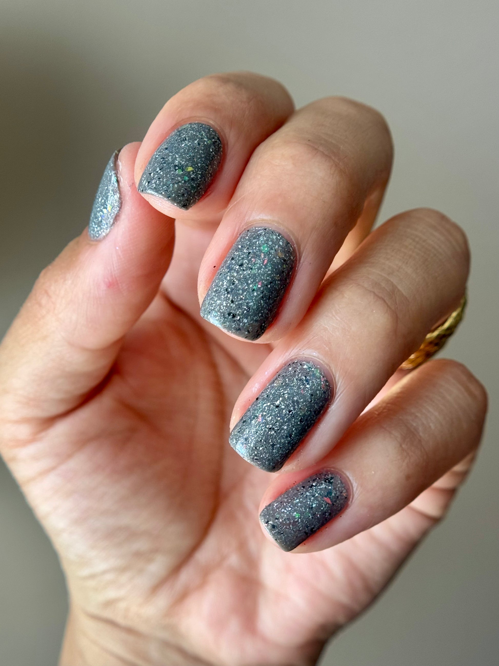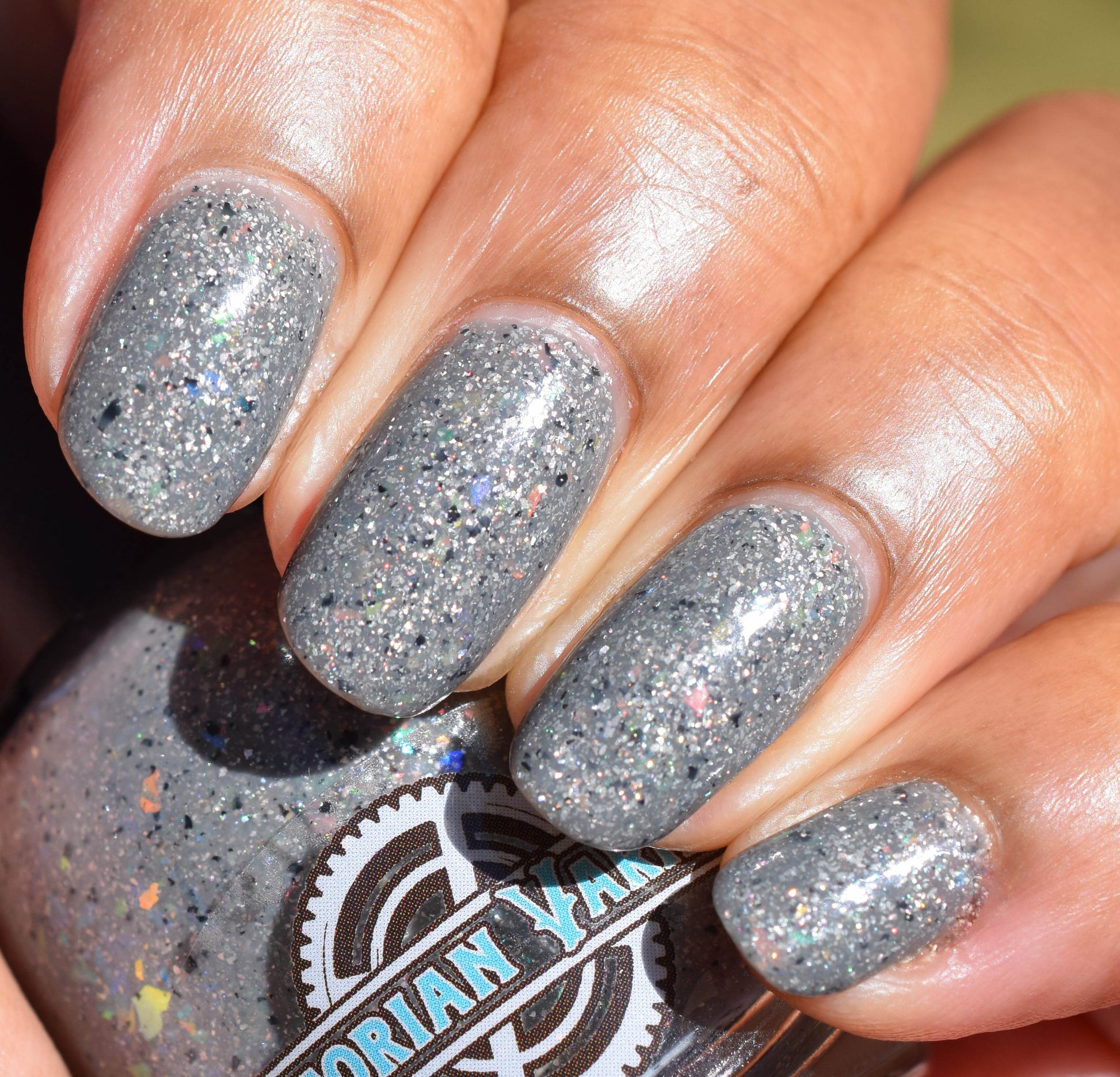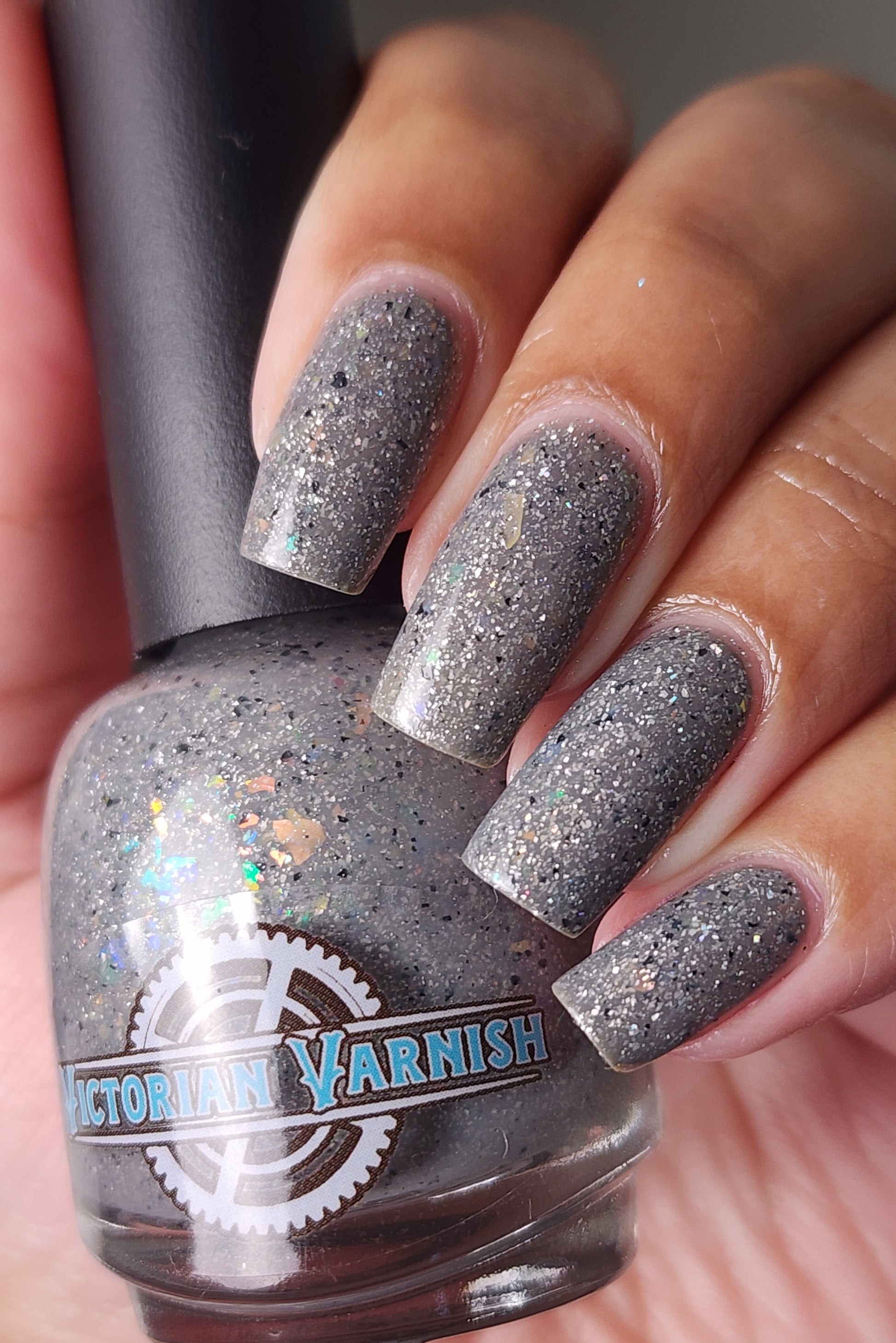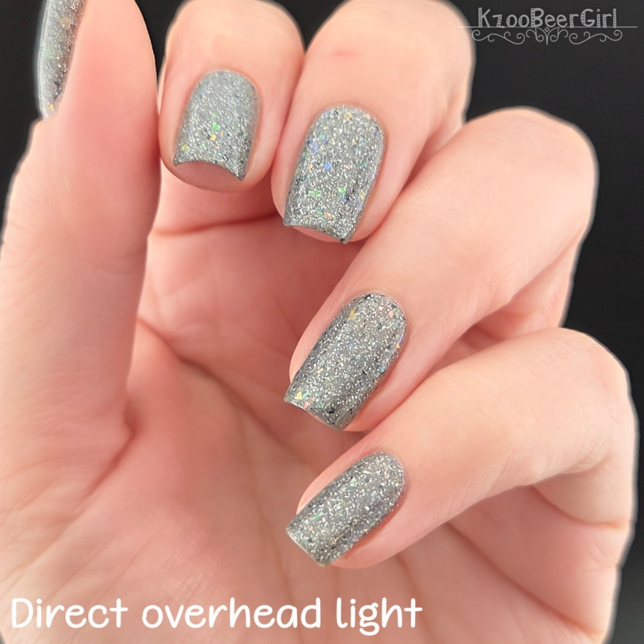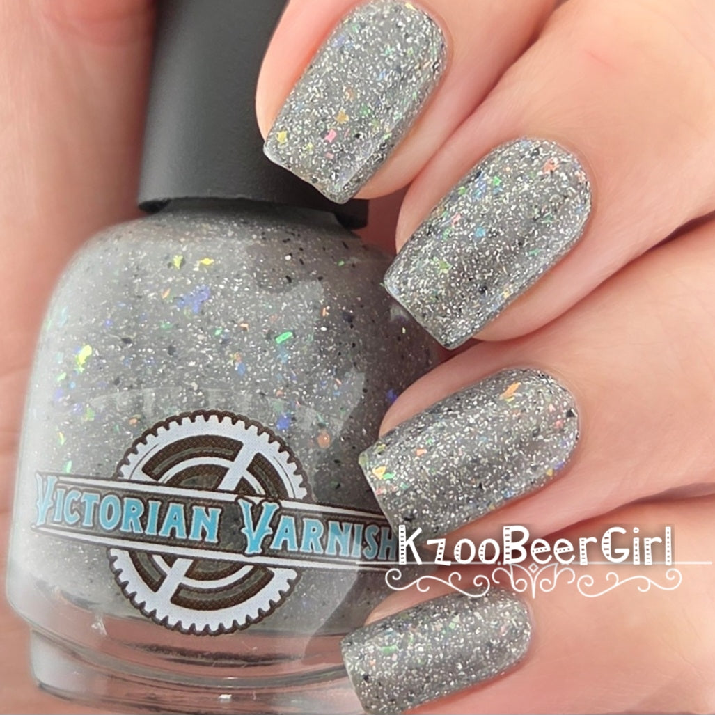 A lovely light dove grey base with ghost flakies, chameleon flakes, black flakes and holo flakies. Comes with a collectible sticker/these are limited, once they are gone, they're gone!