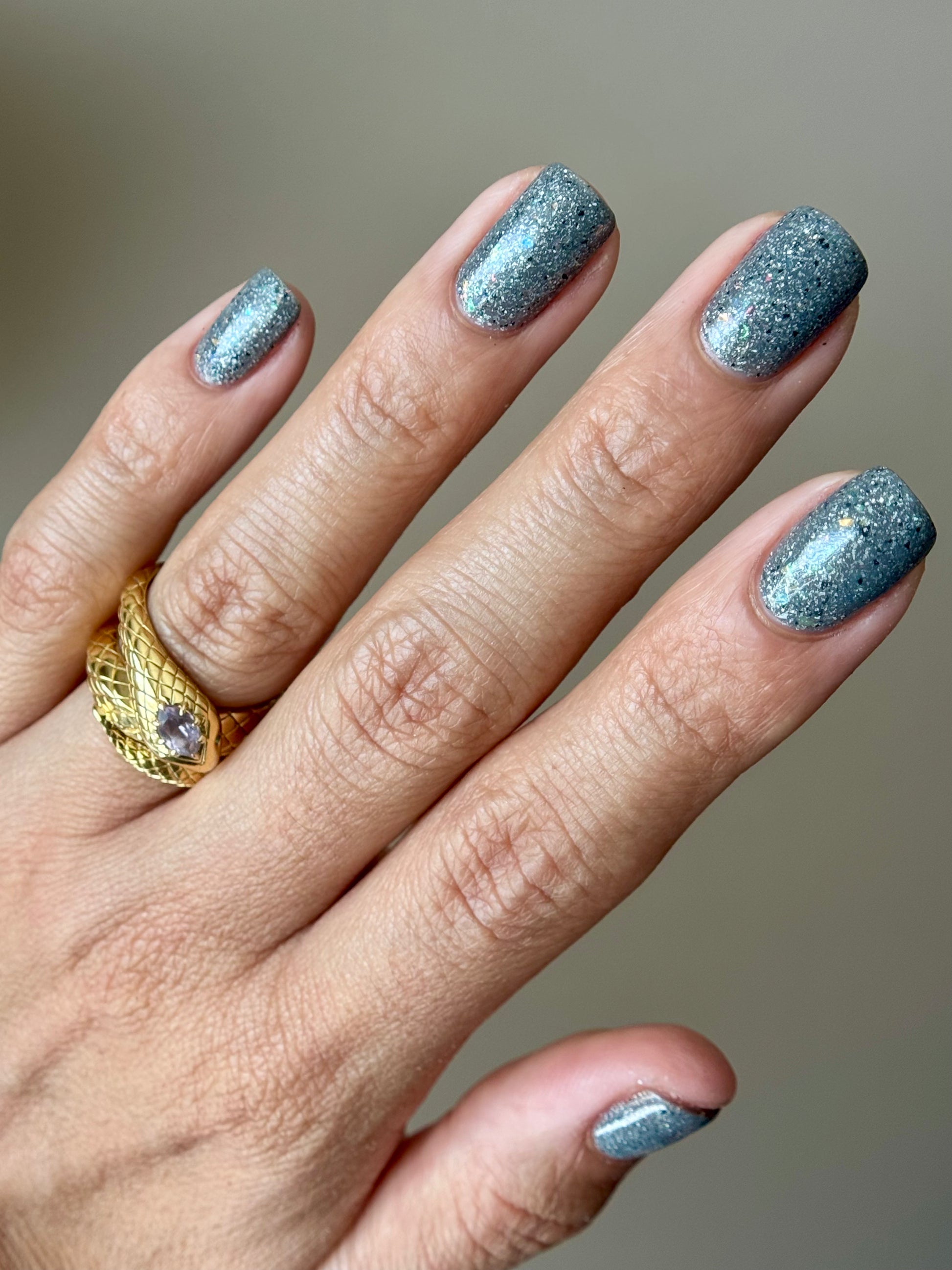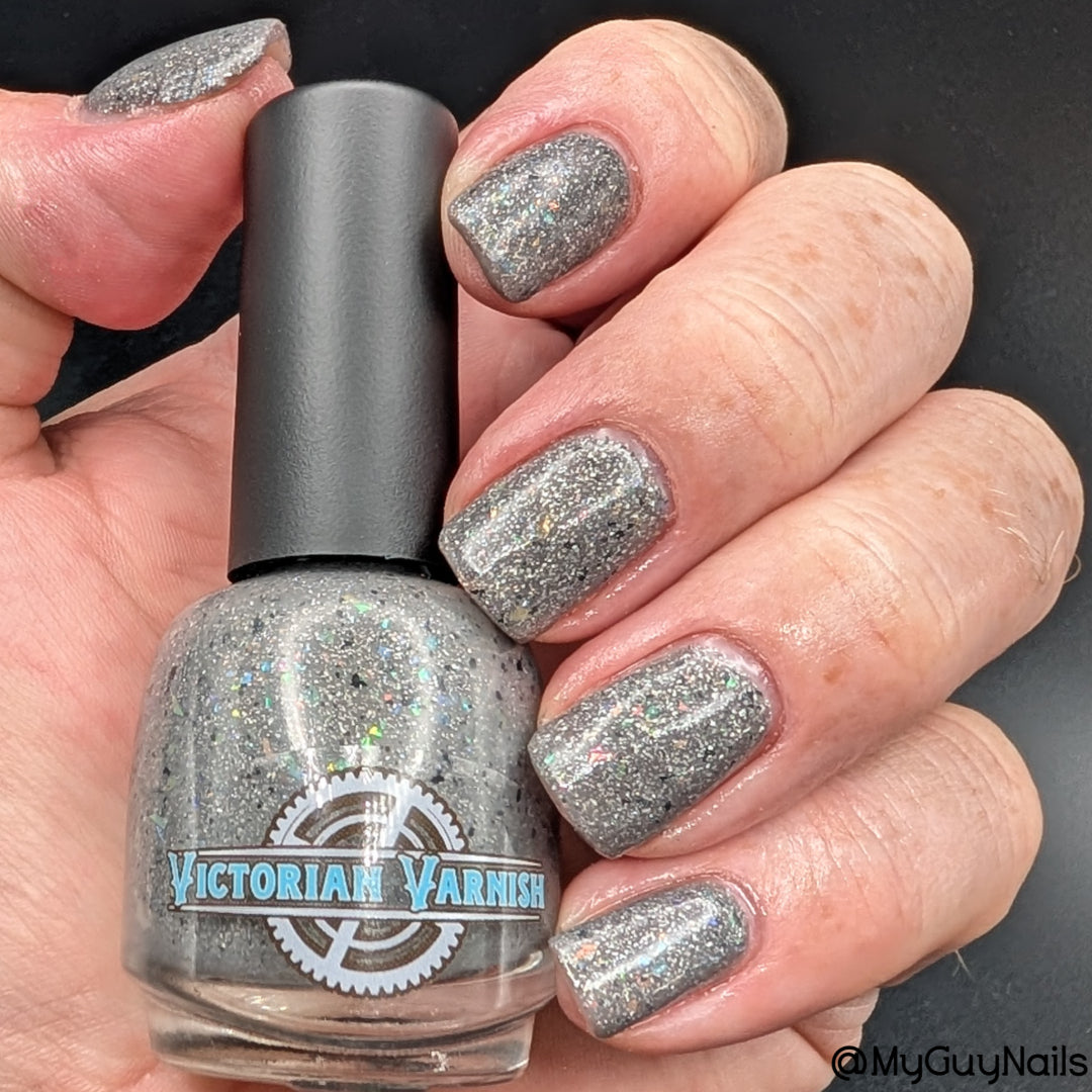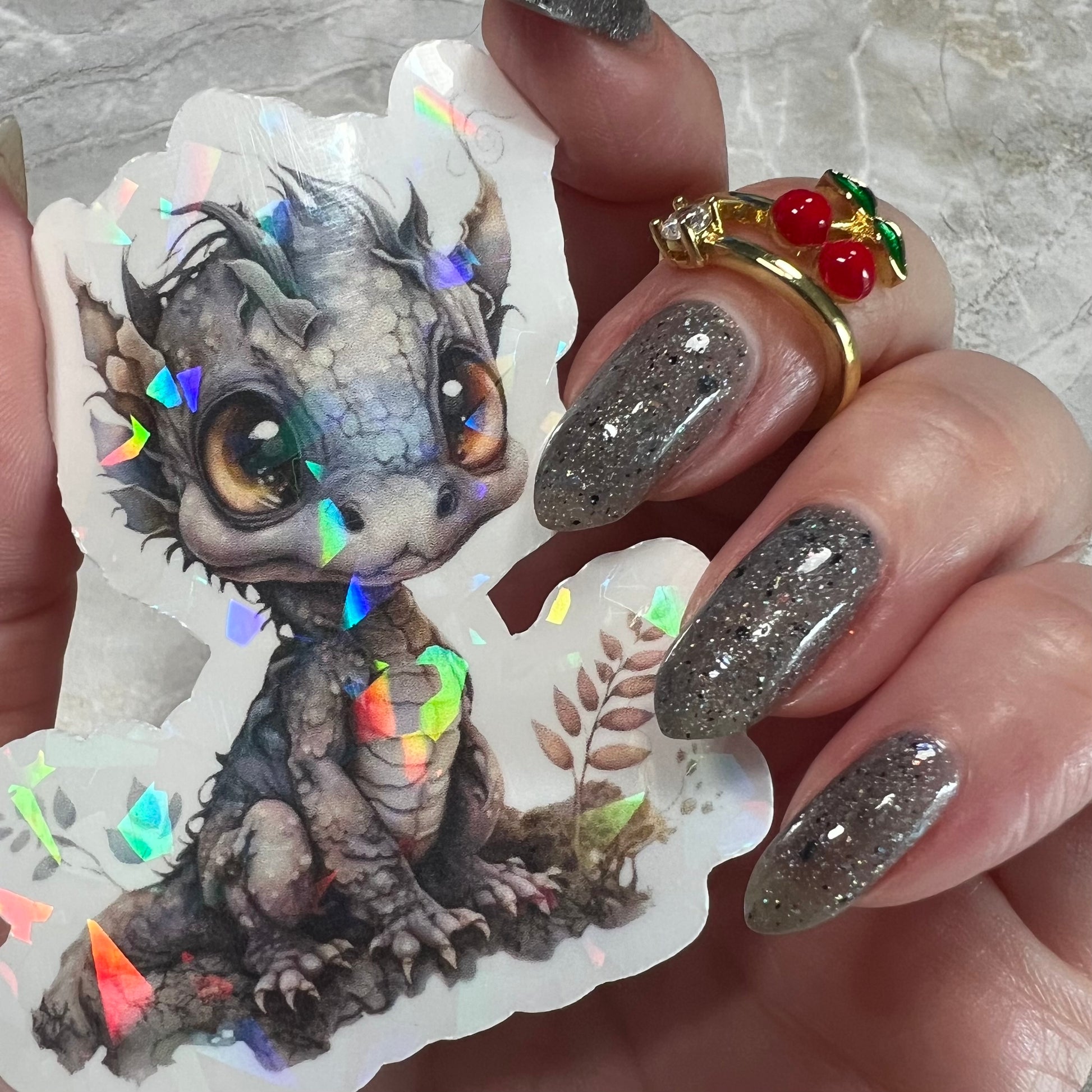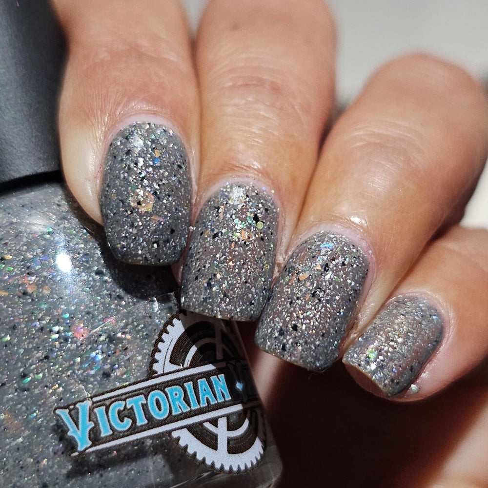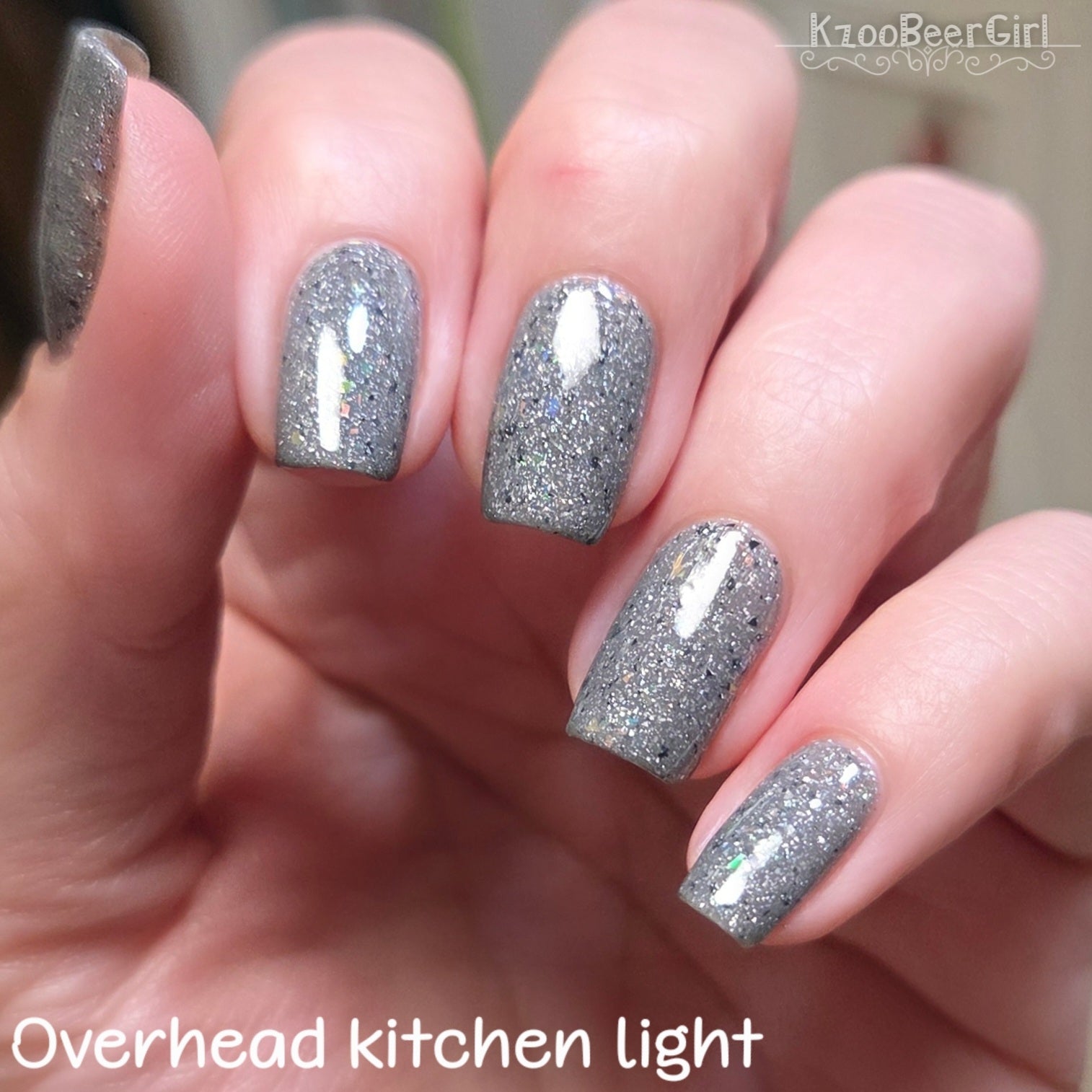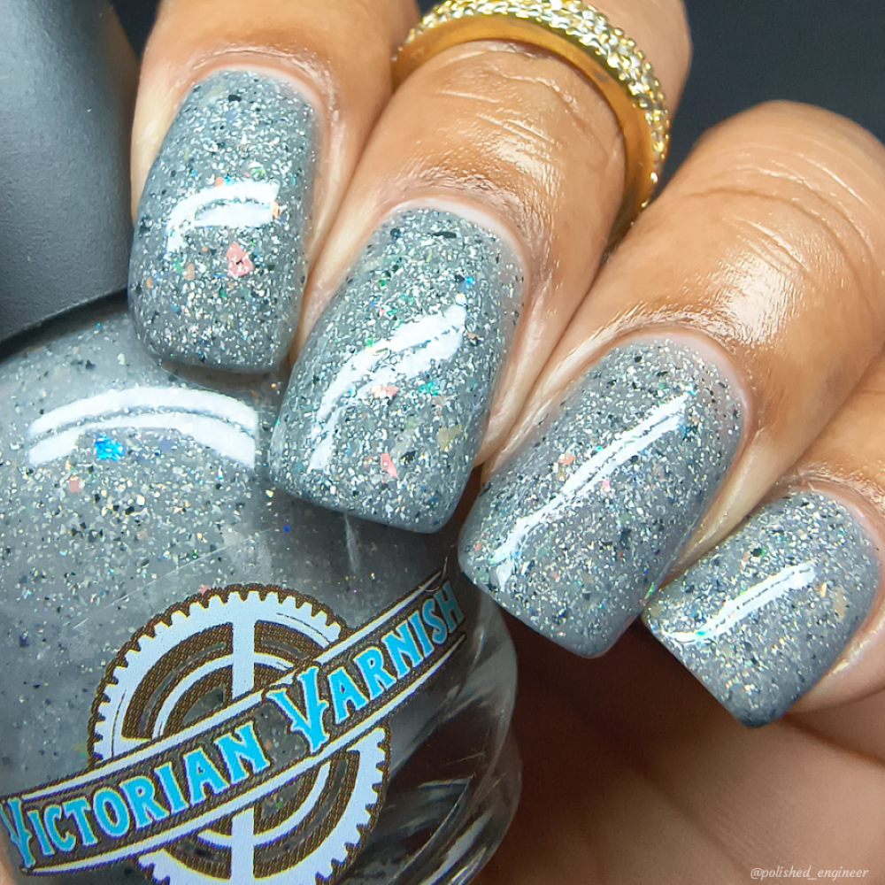 A lovely light dove grey base with ghost flakies, chameleon flakes, black flakes and holo flakies. Comes with a collectible sticker/these are limited, once they are gone, they're gone!