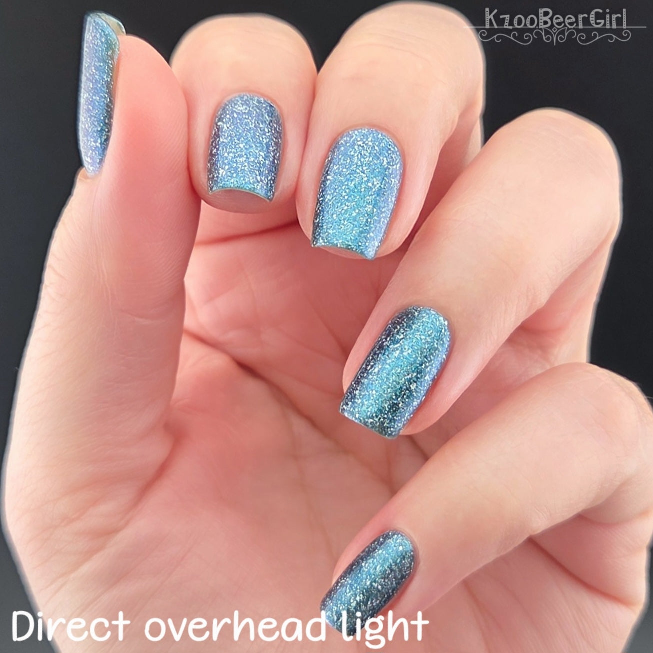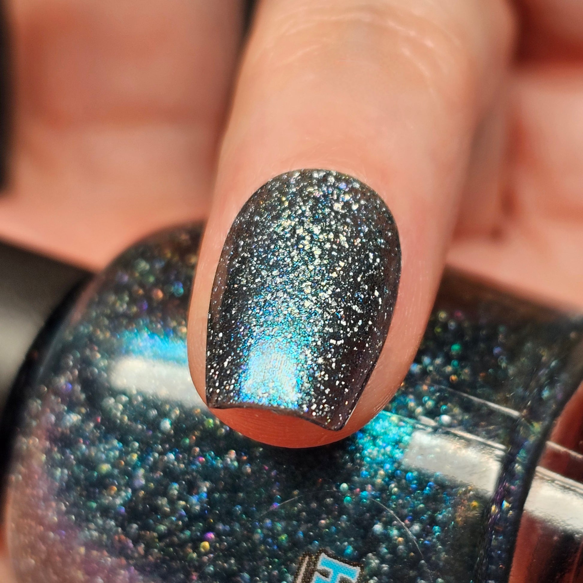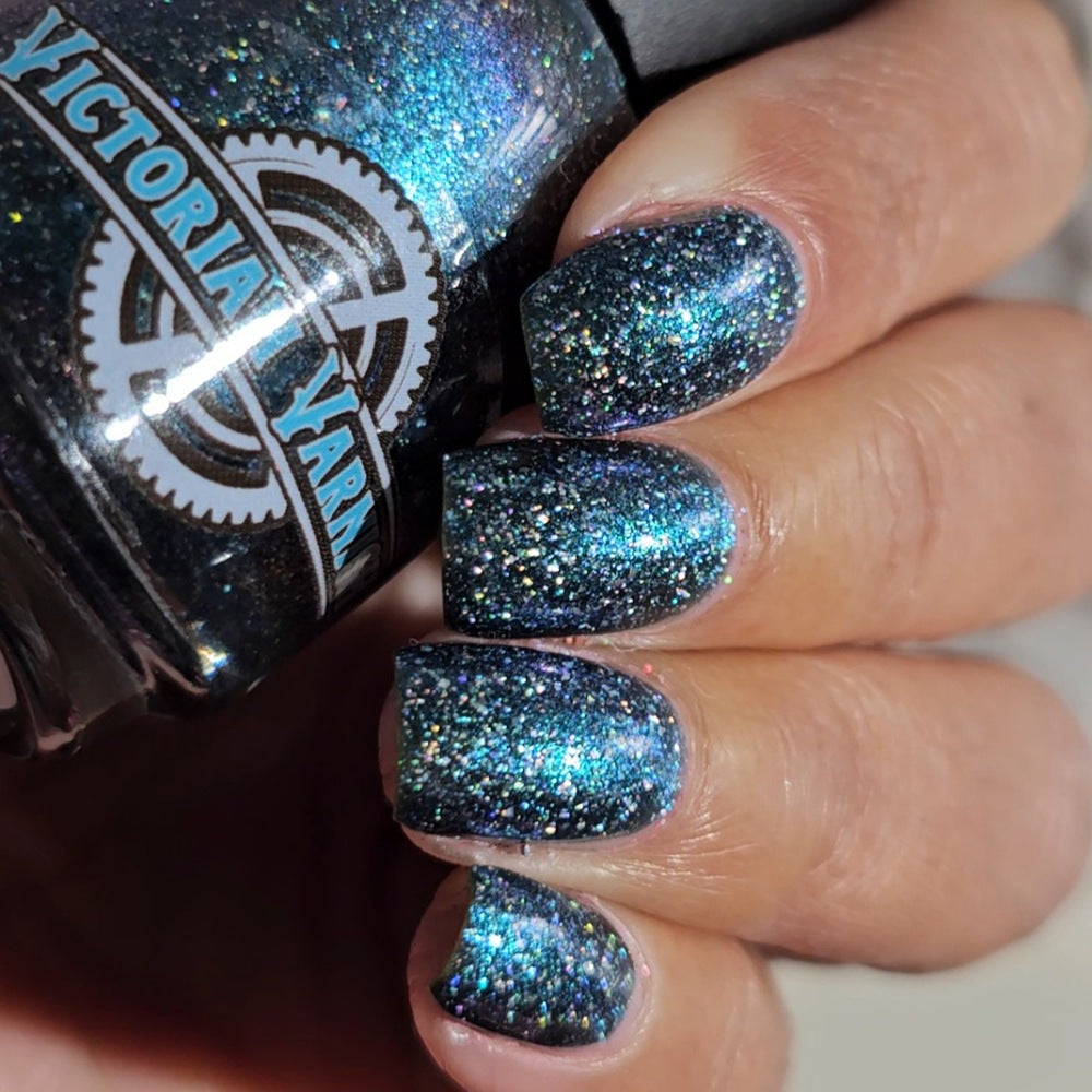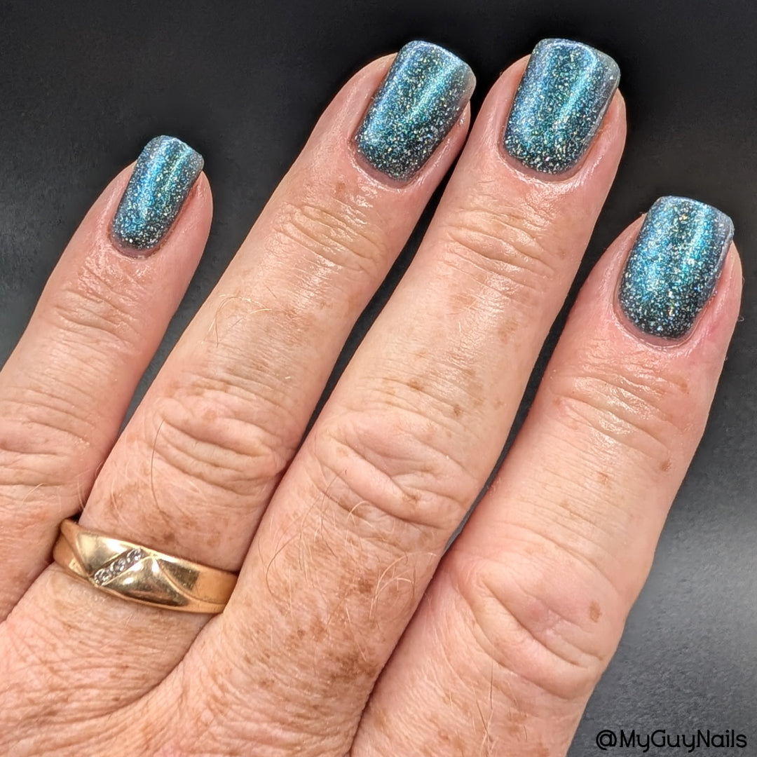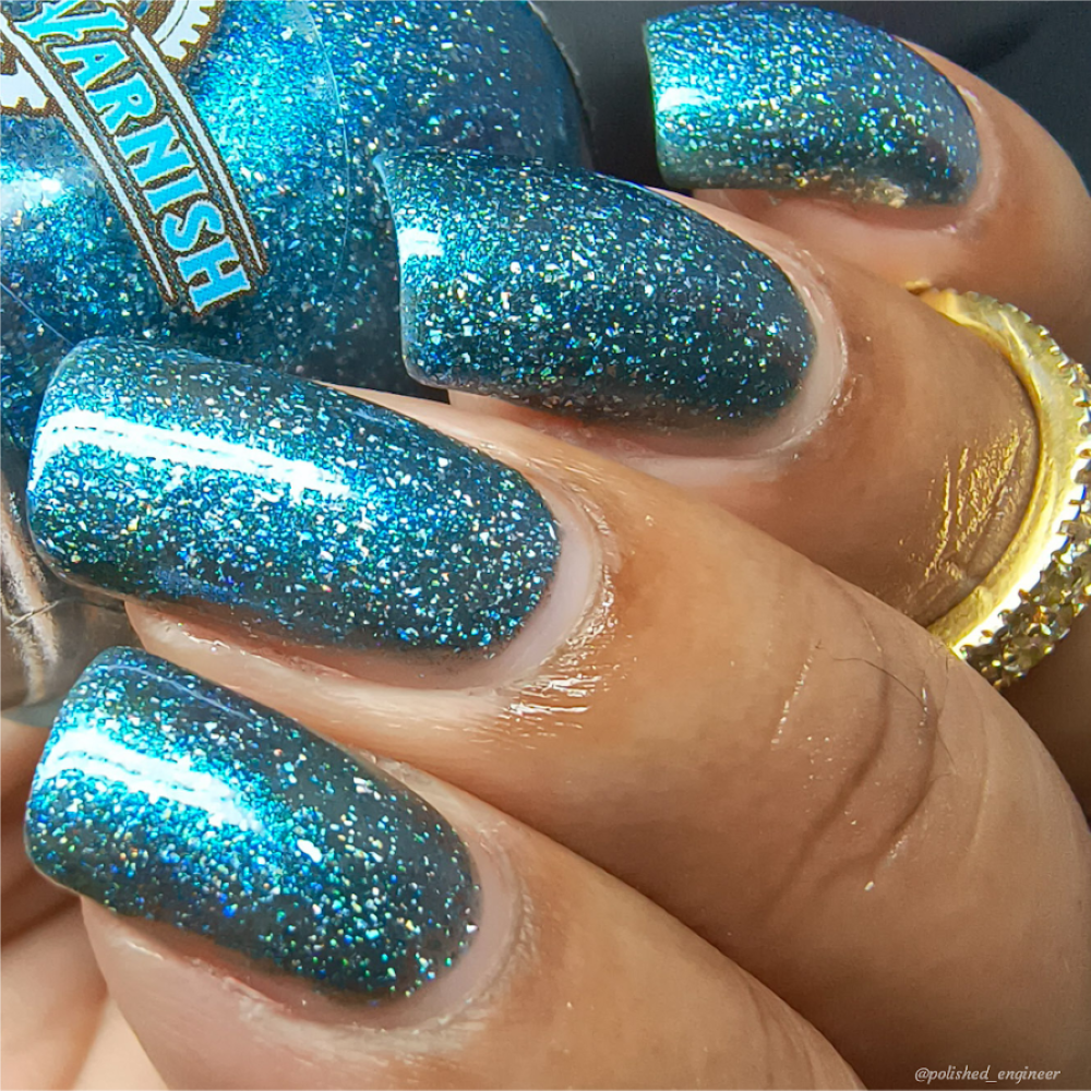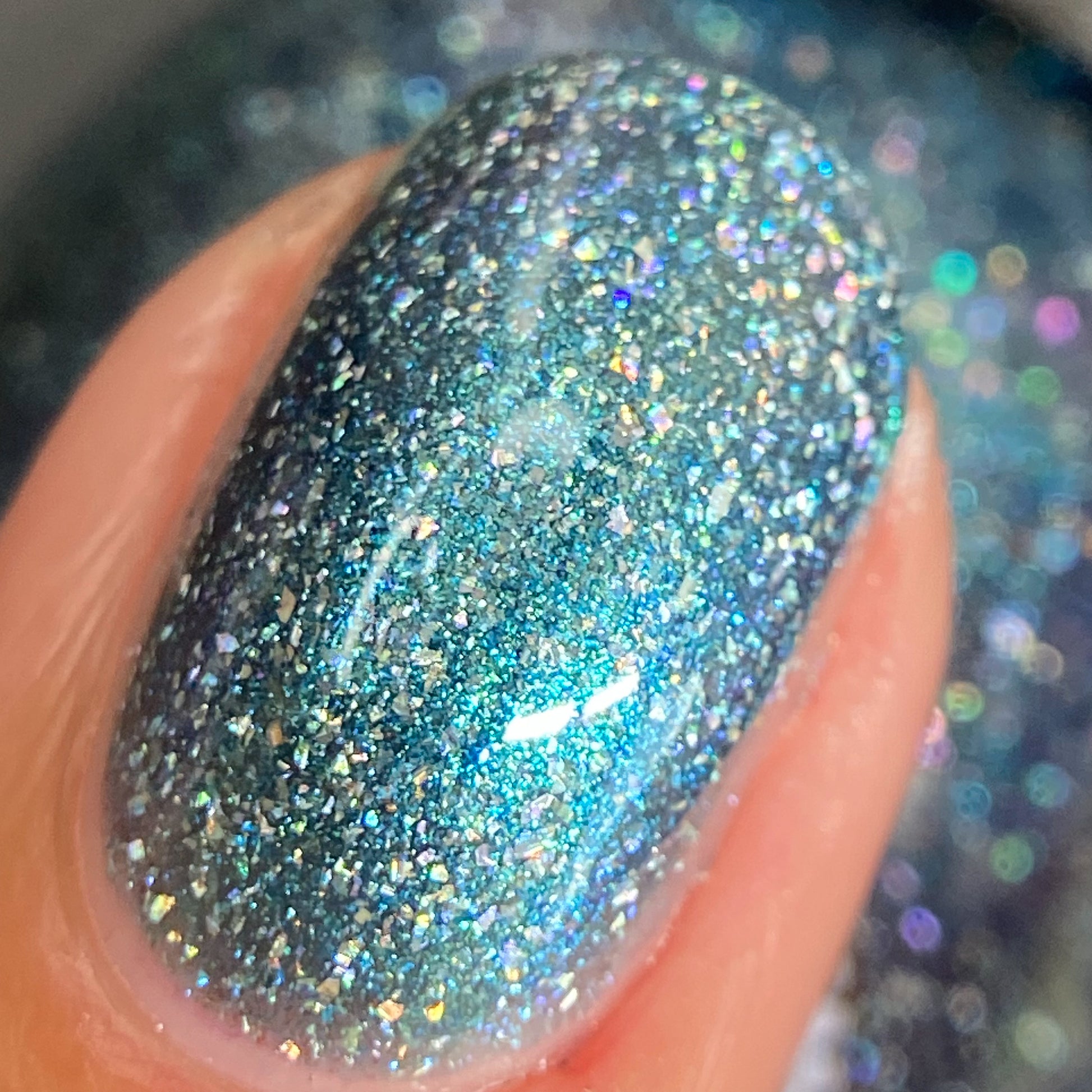 Trecorum is a fall sky blue base with a large particle blue/purple/aqua aurora shimmer and loads of holo flakies