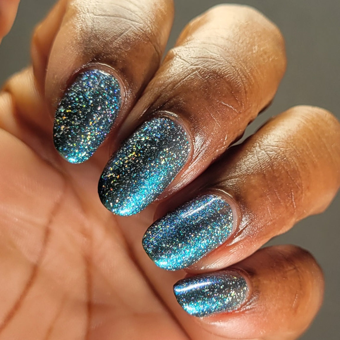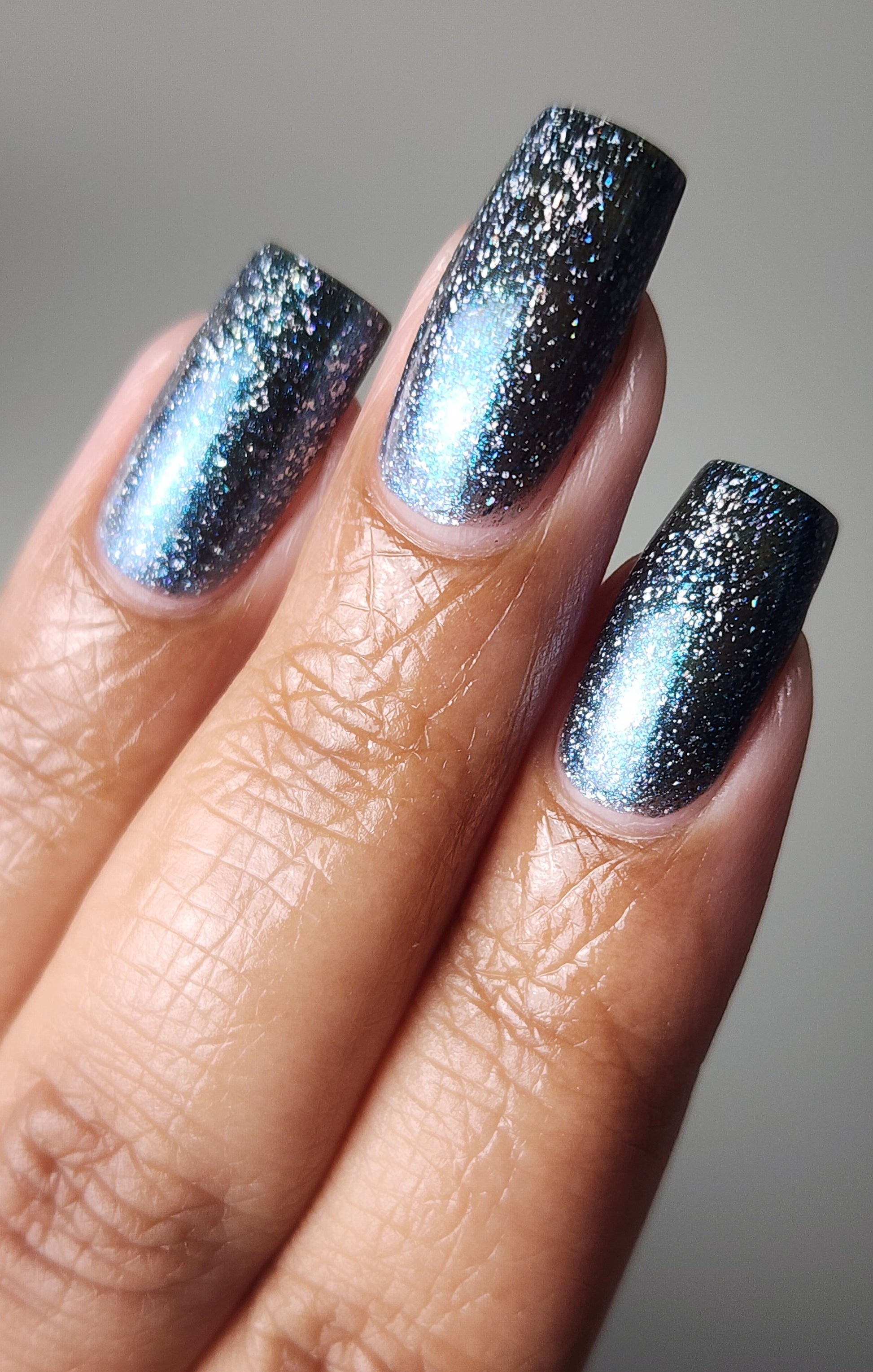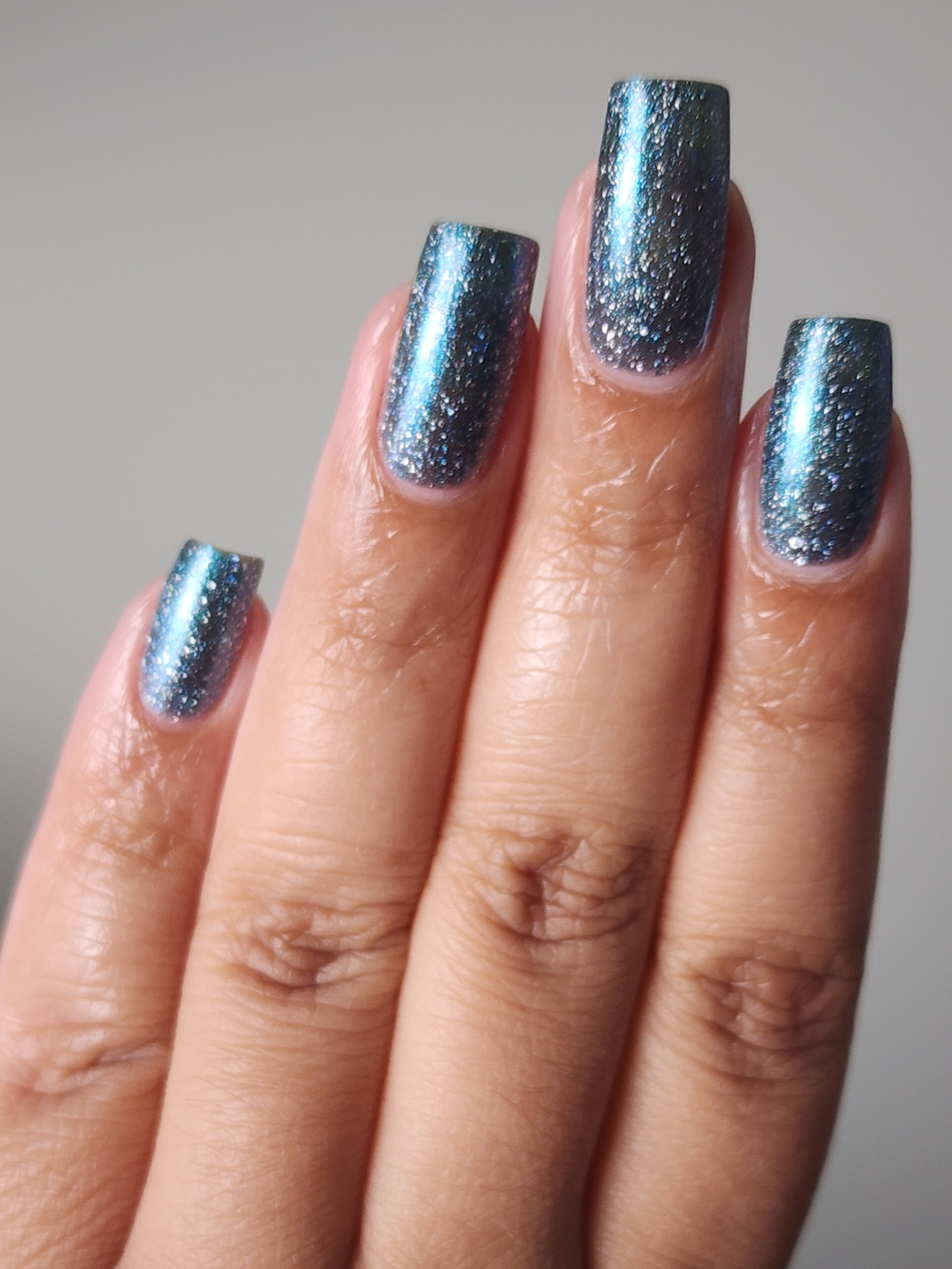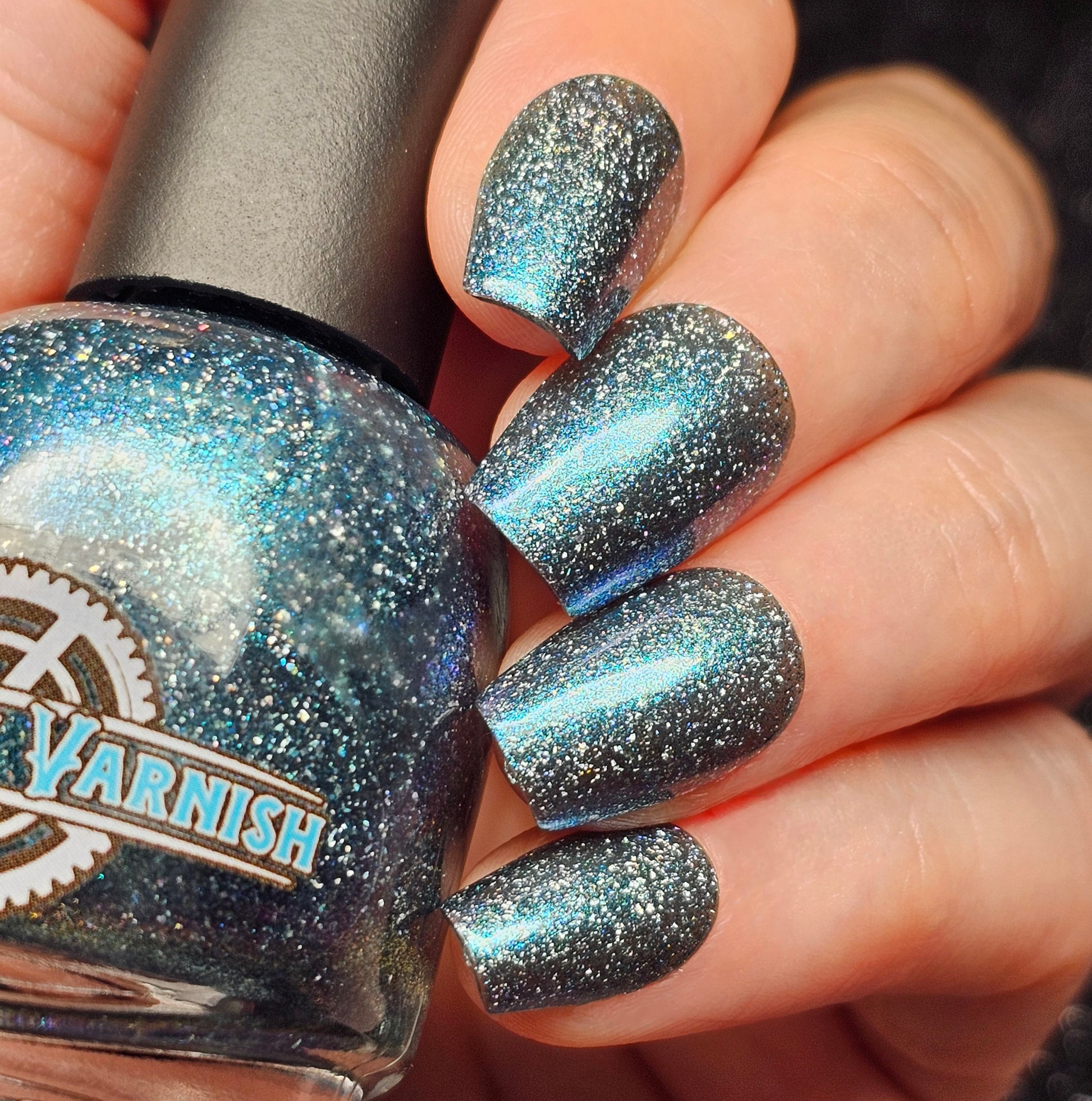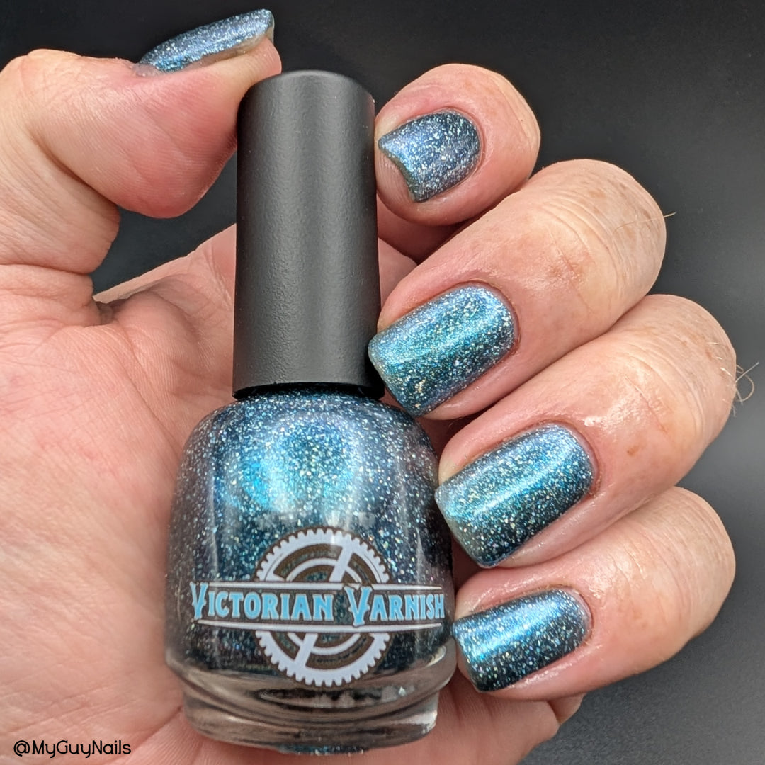 Trecorum is a fall sky blue base with a large particle blue/purple/aqua aurora shimmer and loads of holo flakies