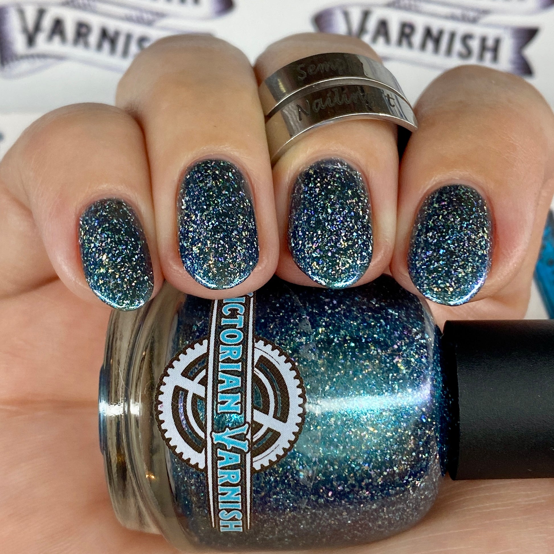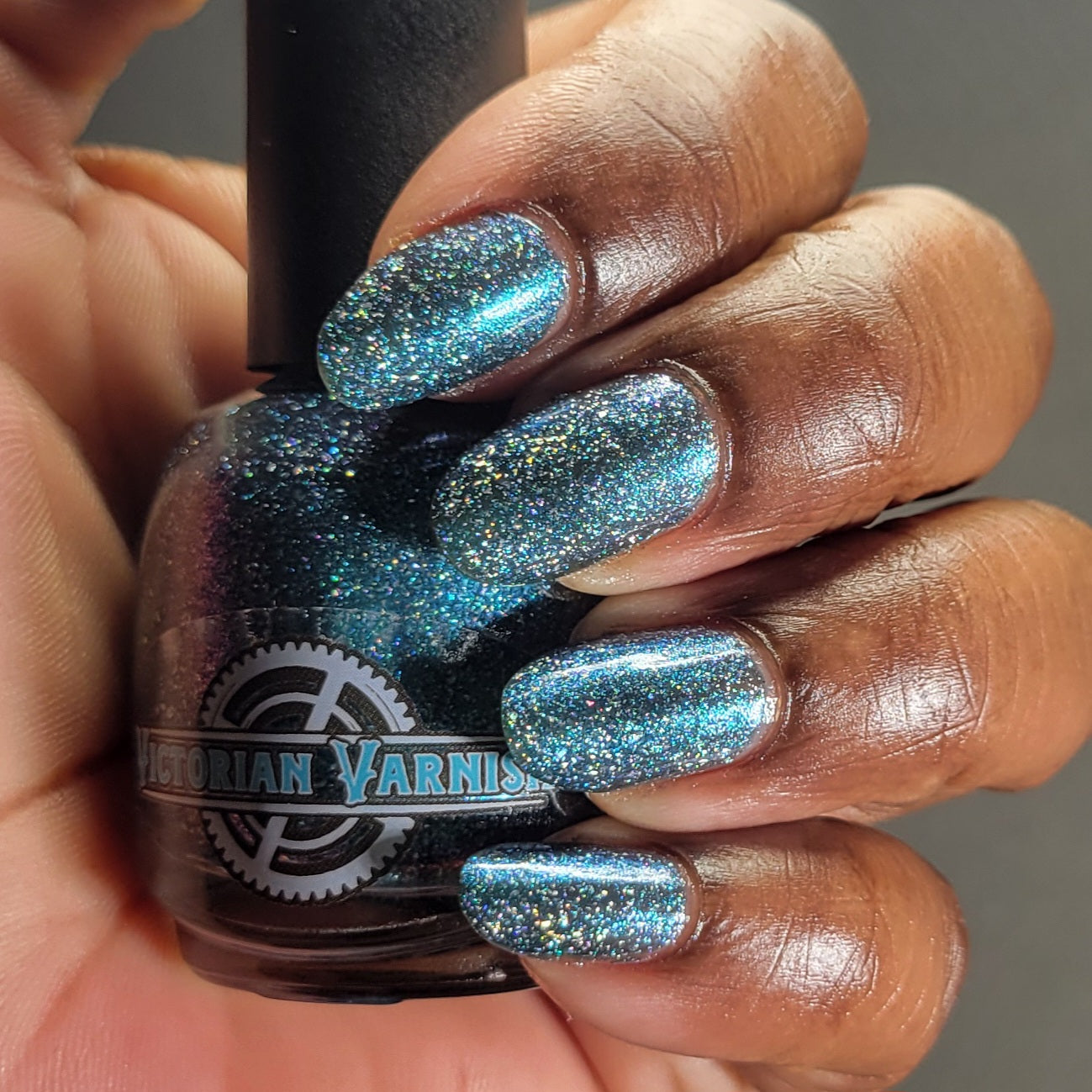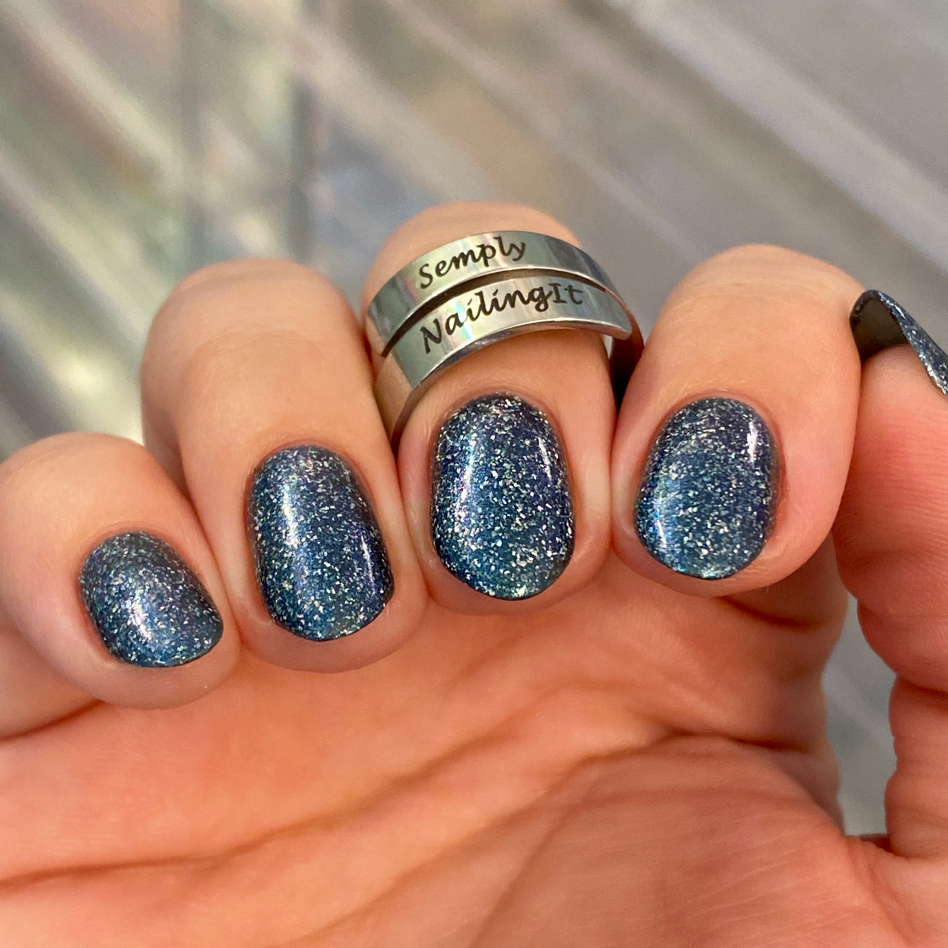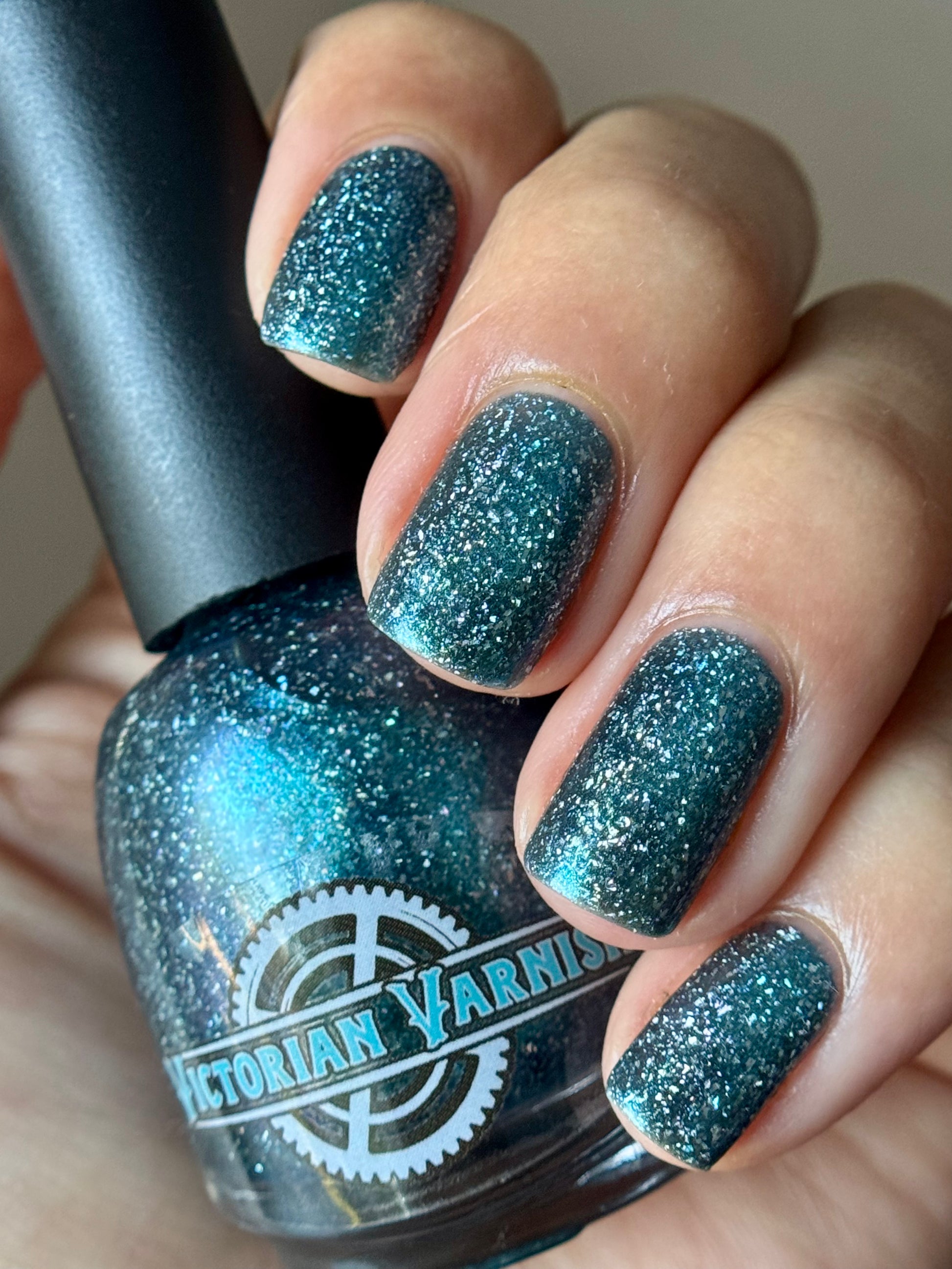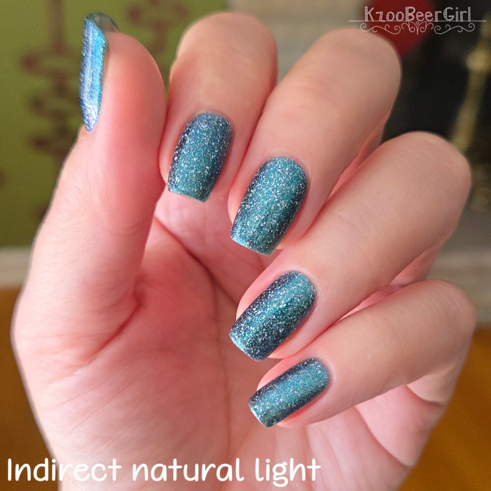 Trecorum is a fall sky blue base with a large particle blue/purple/aqua aurora shimmer and loads of holo flakies
