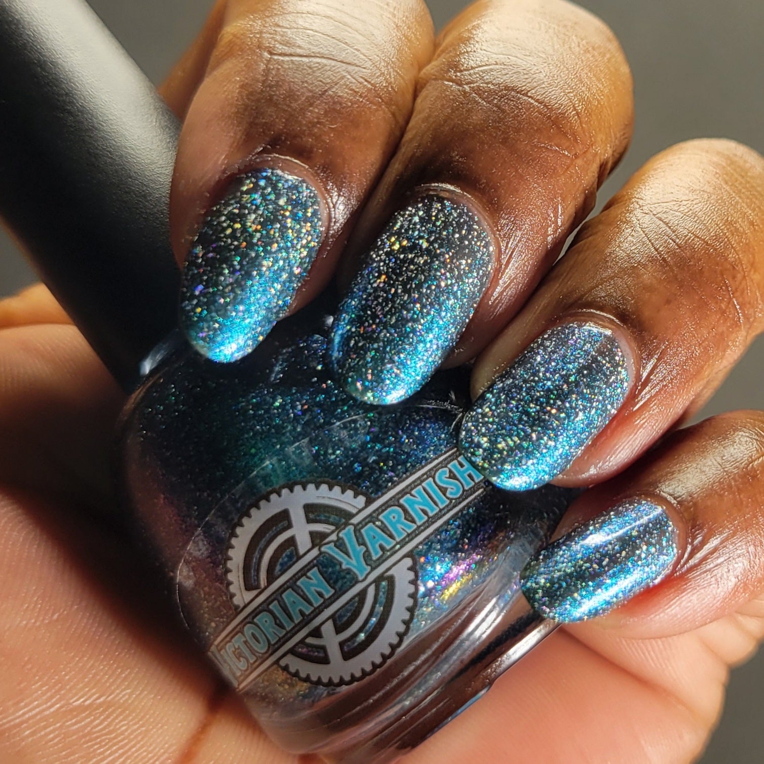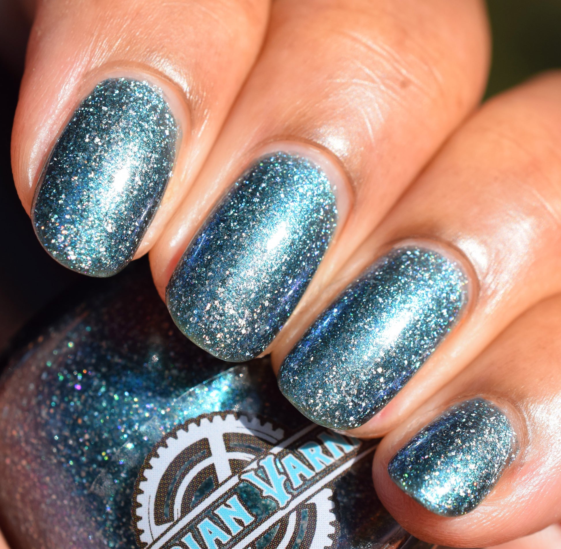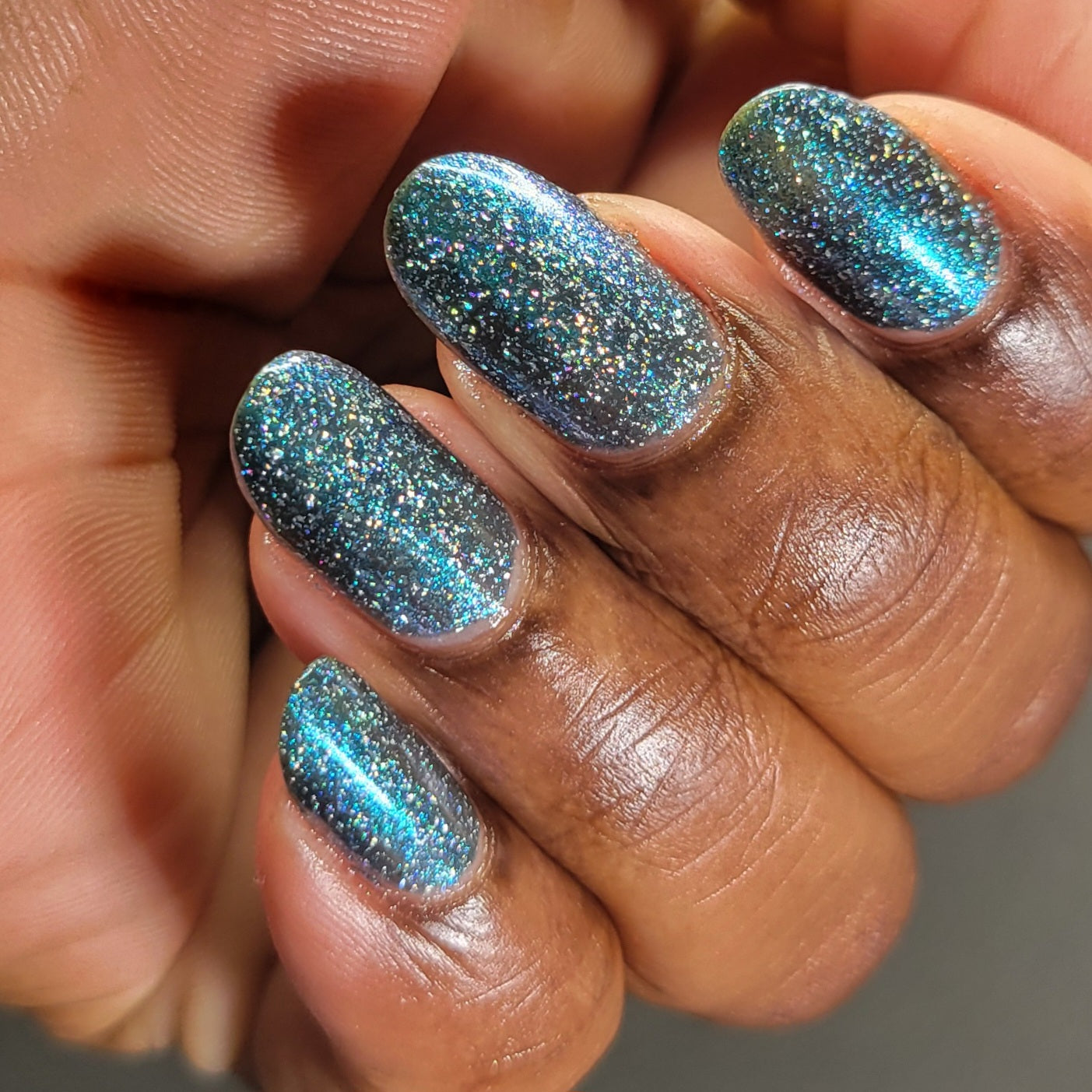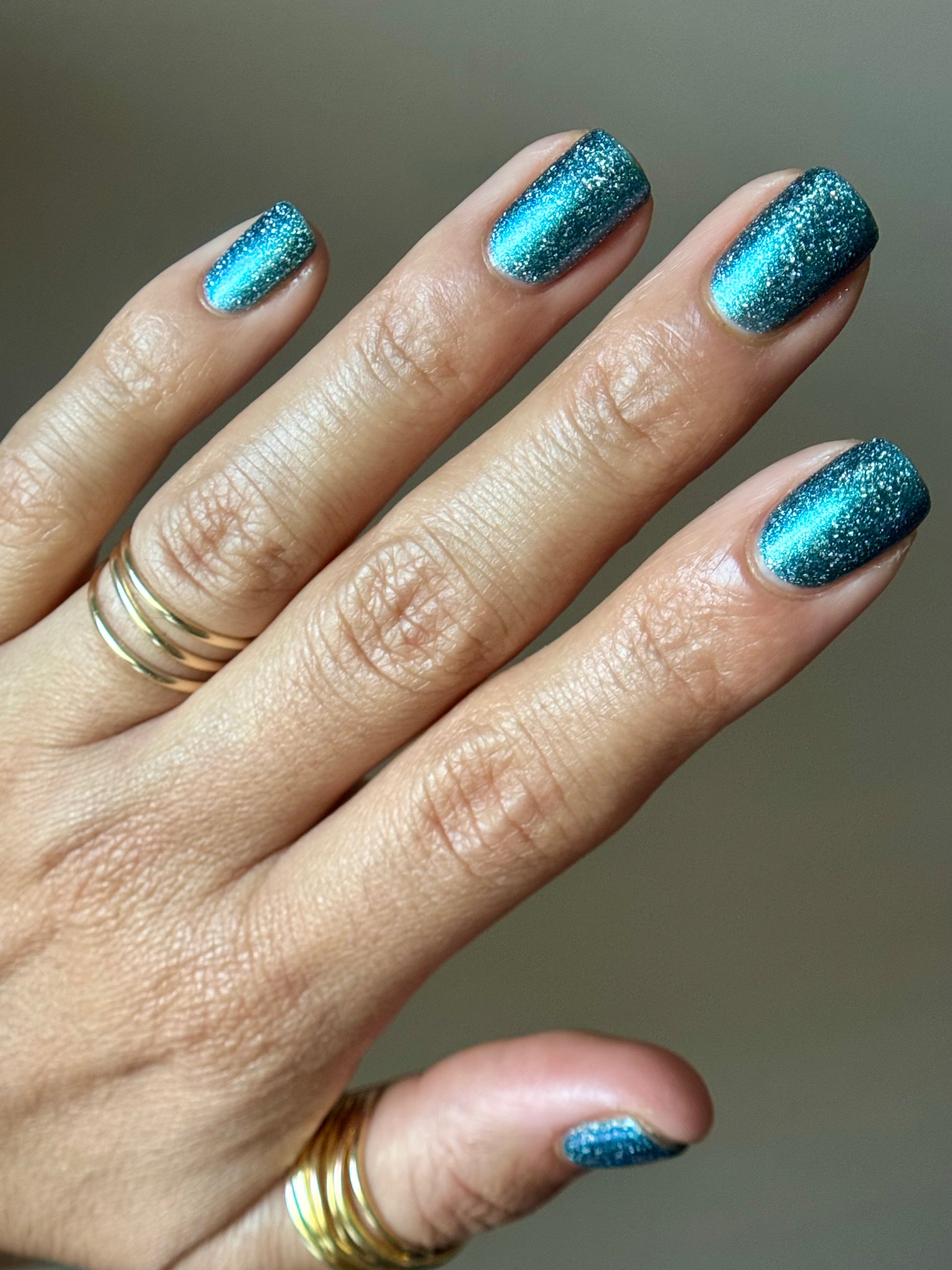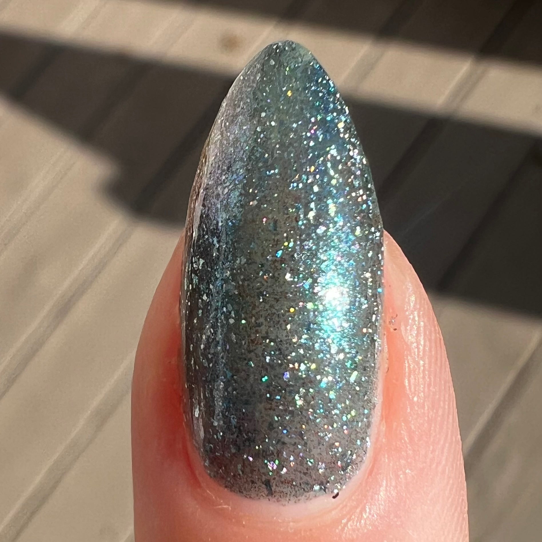 Trecorum is a fall sky blue base with a large particle blue/purple/aqua aurora shimmer and loads of holo flakies