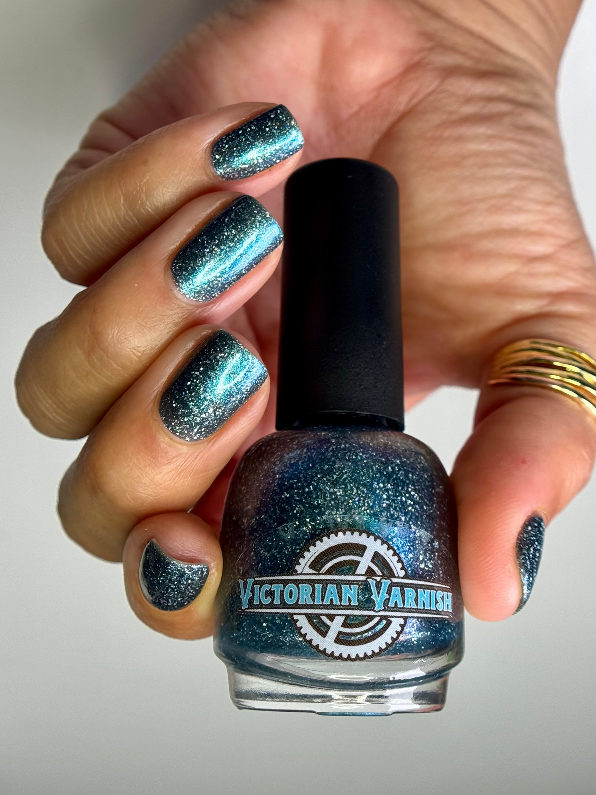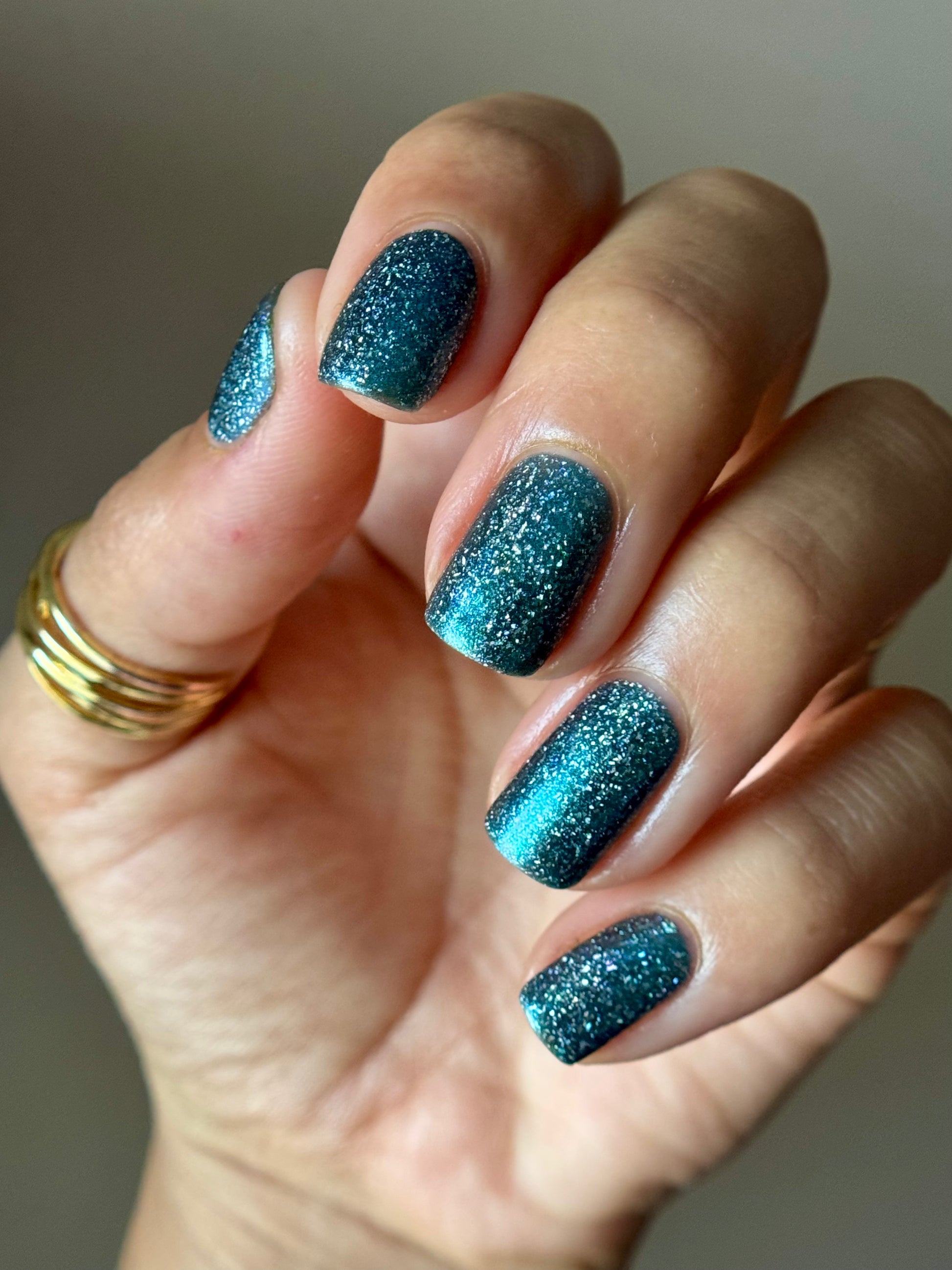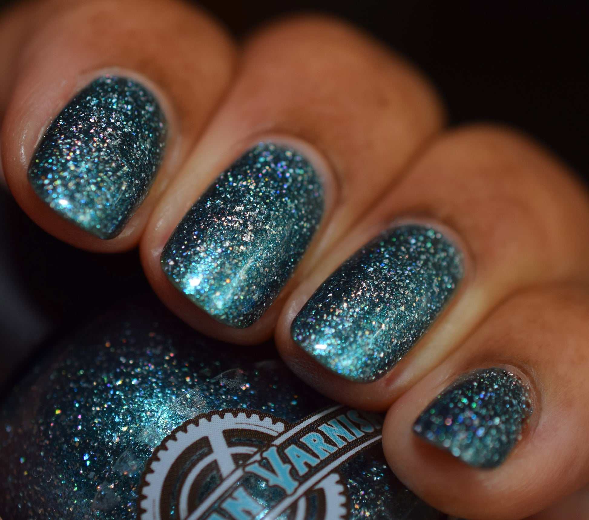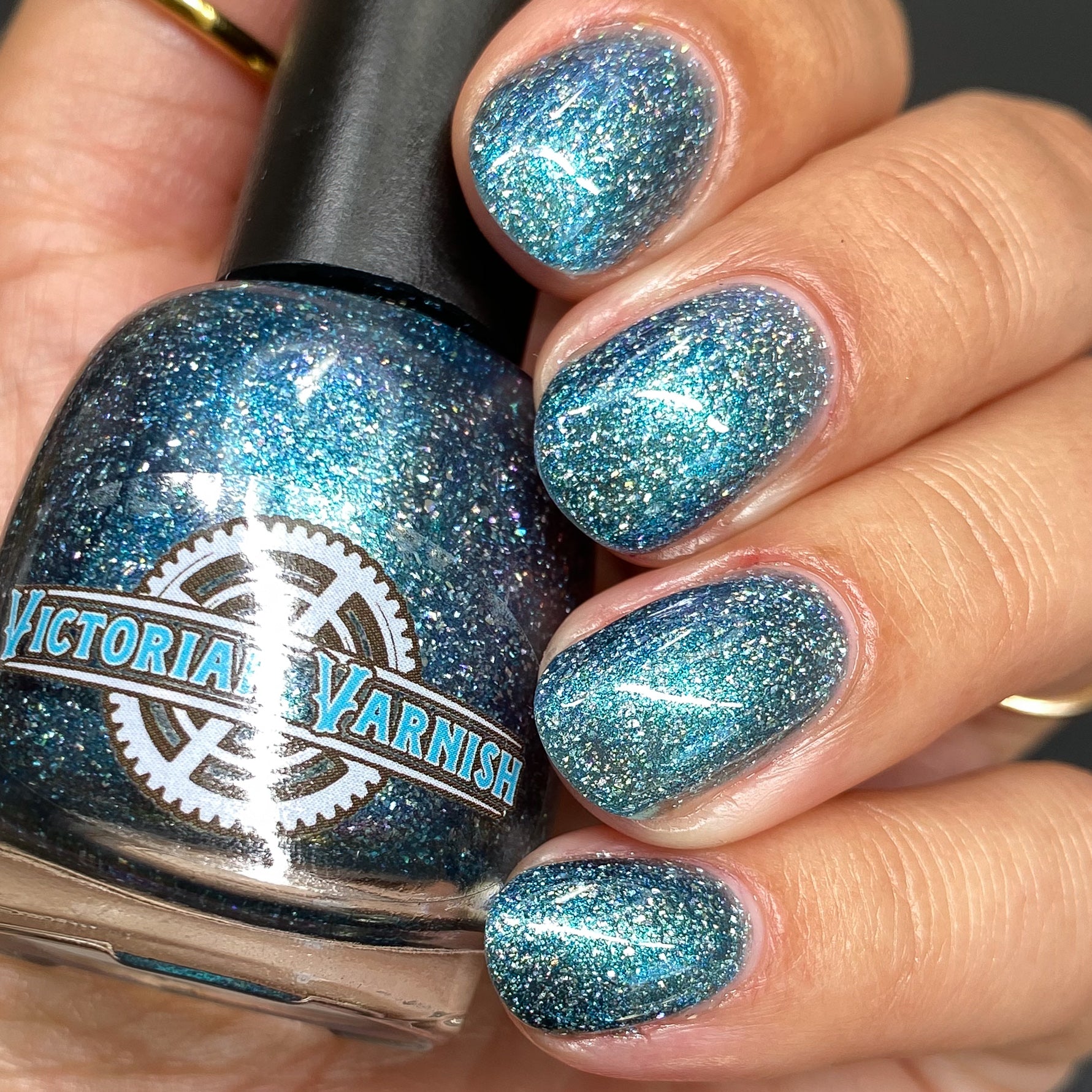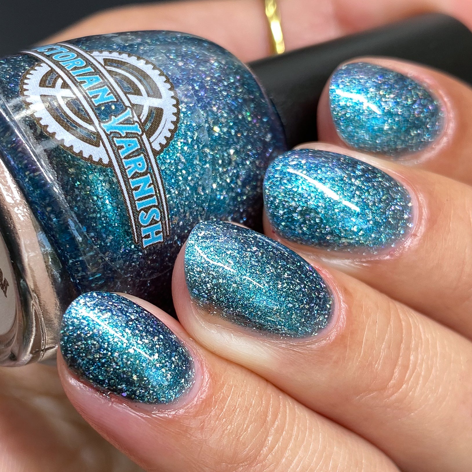 Trecorum is a fall sky blue base with a large particle blue/purple/aqua aurora shimmer and loads of holo flakies