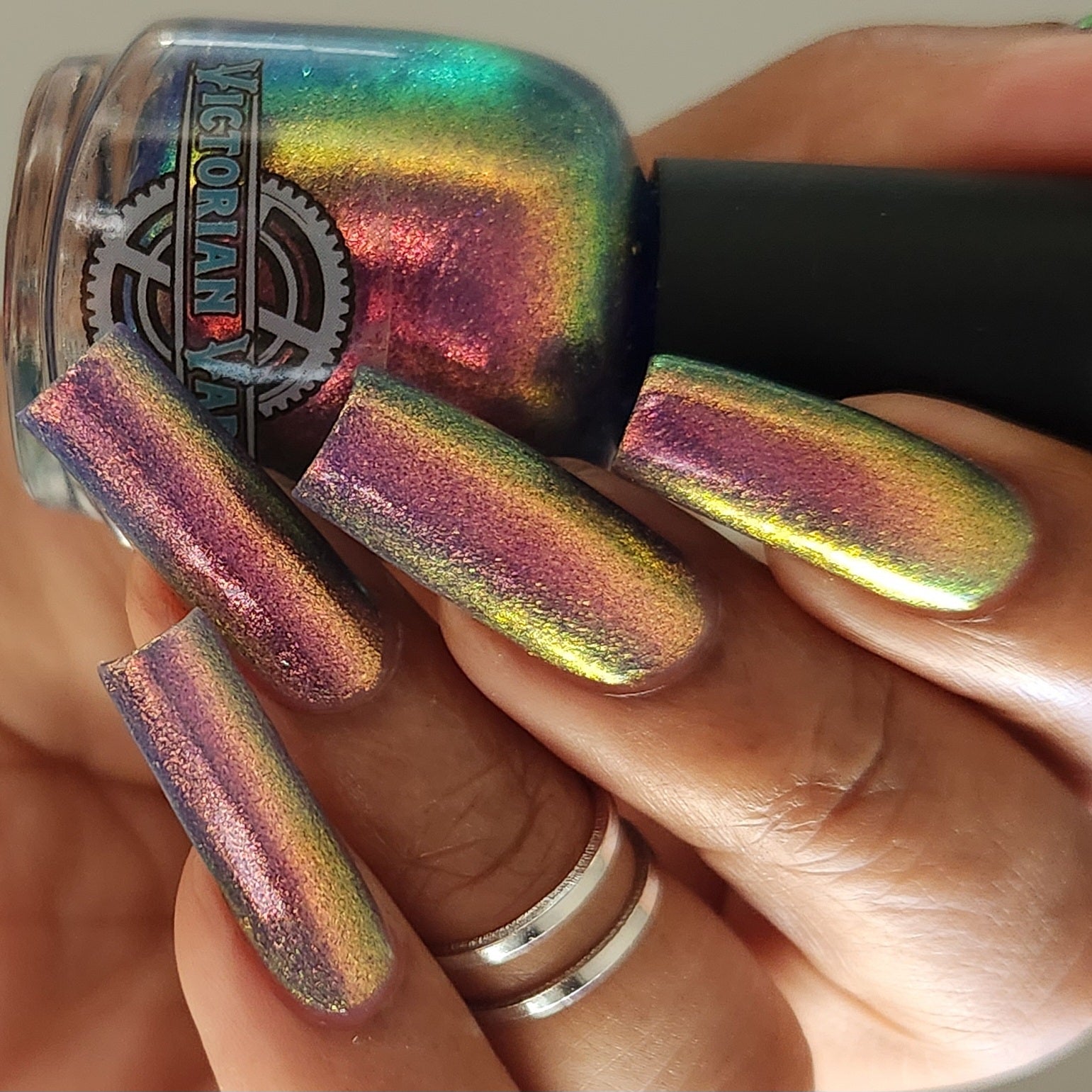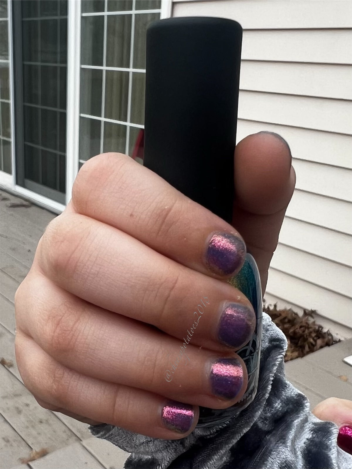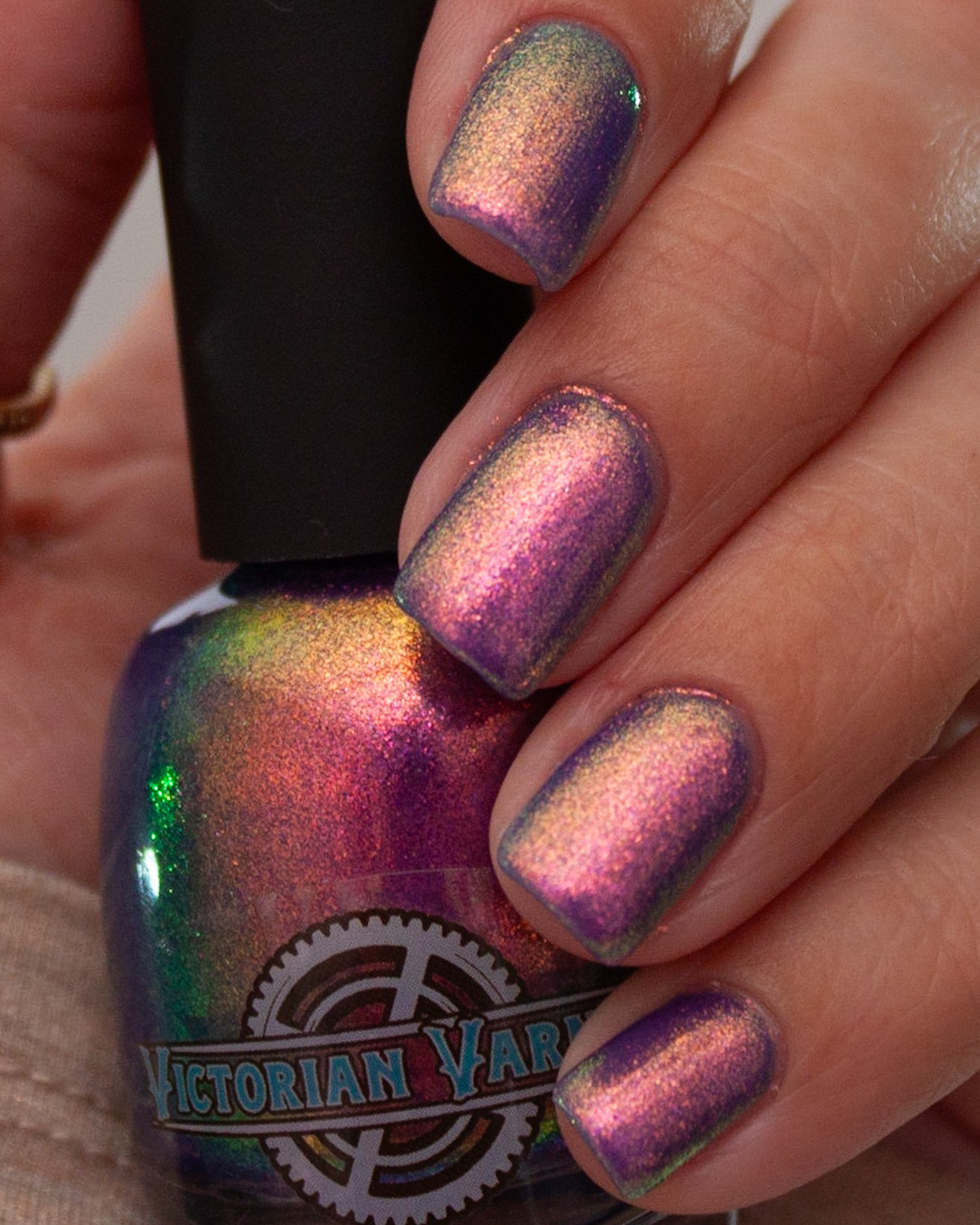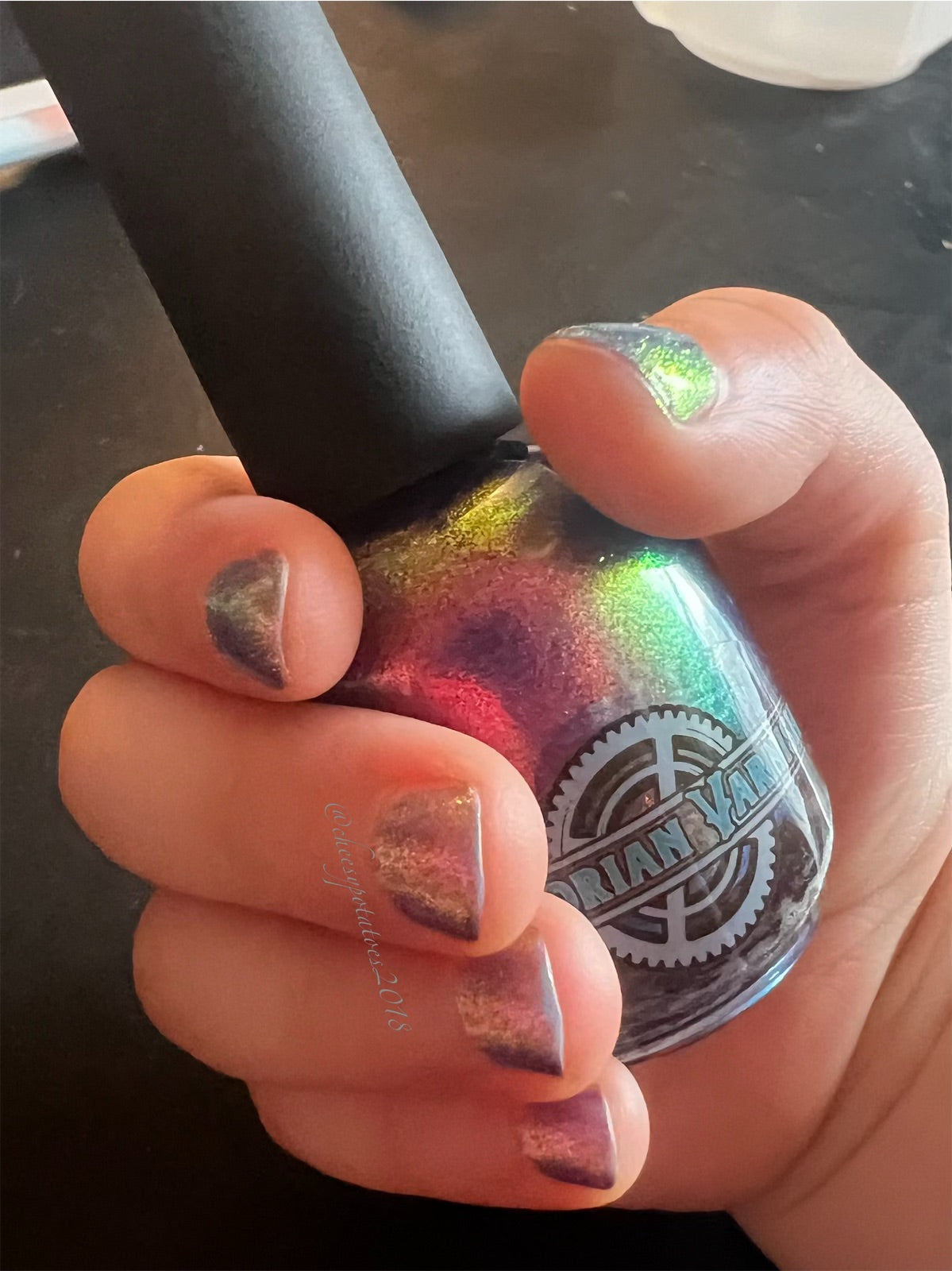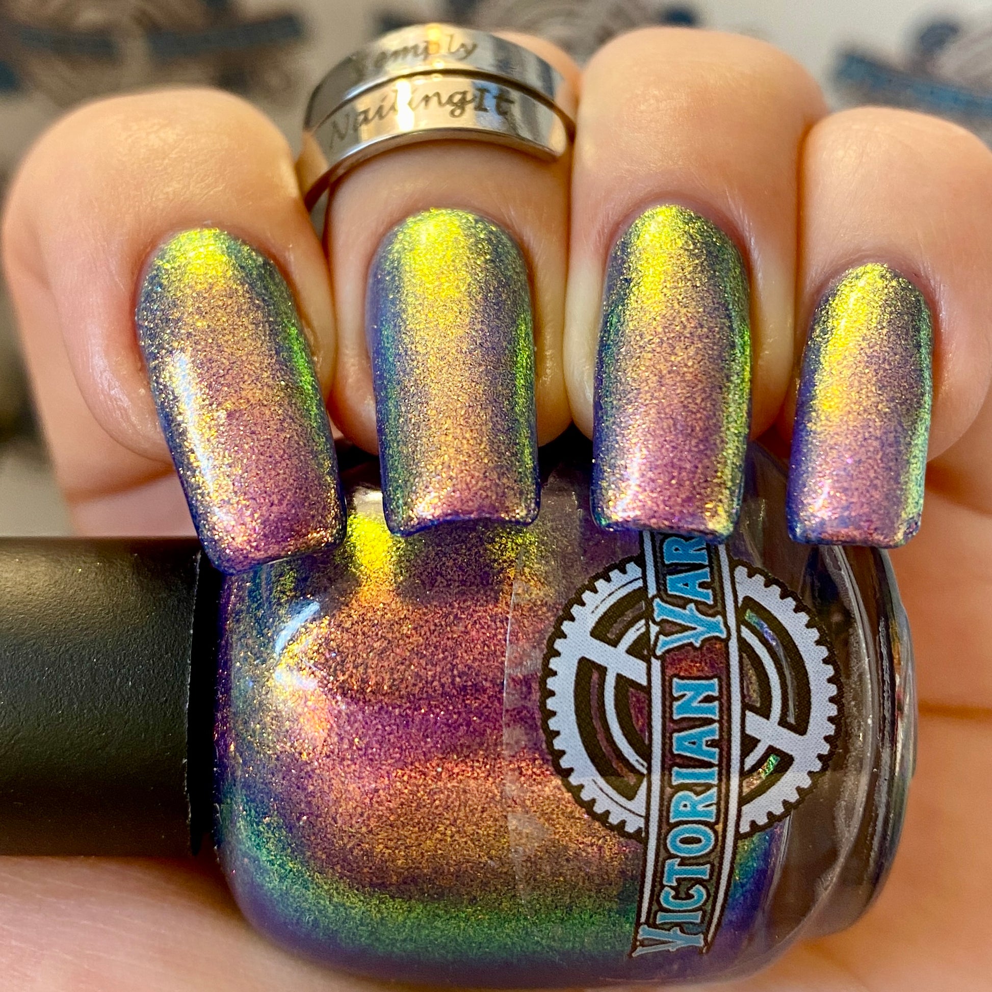 This one is a shifty sister polish to Kaleidoscopic - purple jelly base with indigo undertones and intense prismatic shimmers that range all through the rainbow!