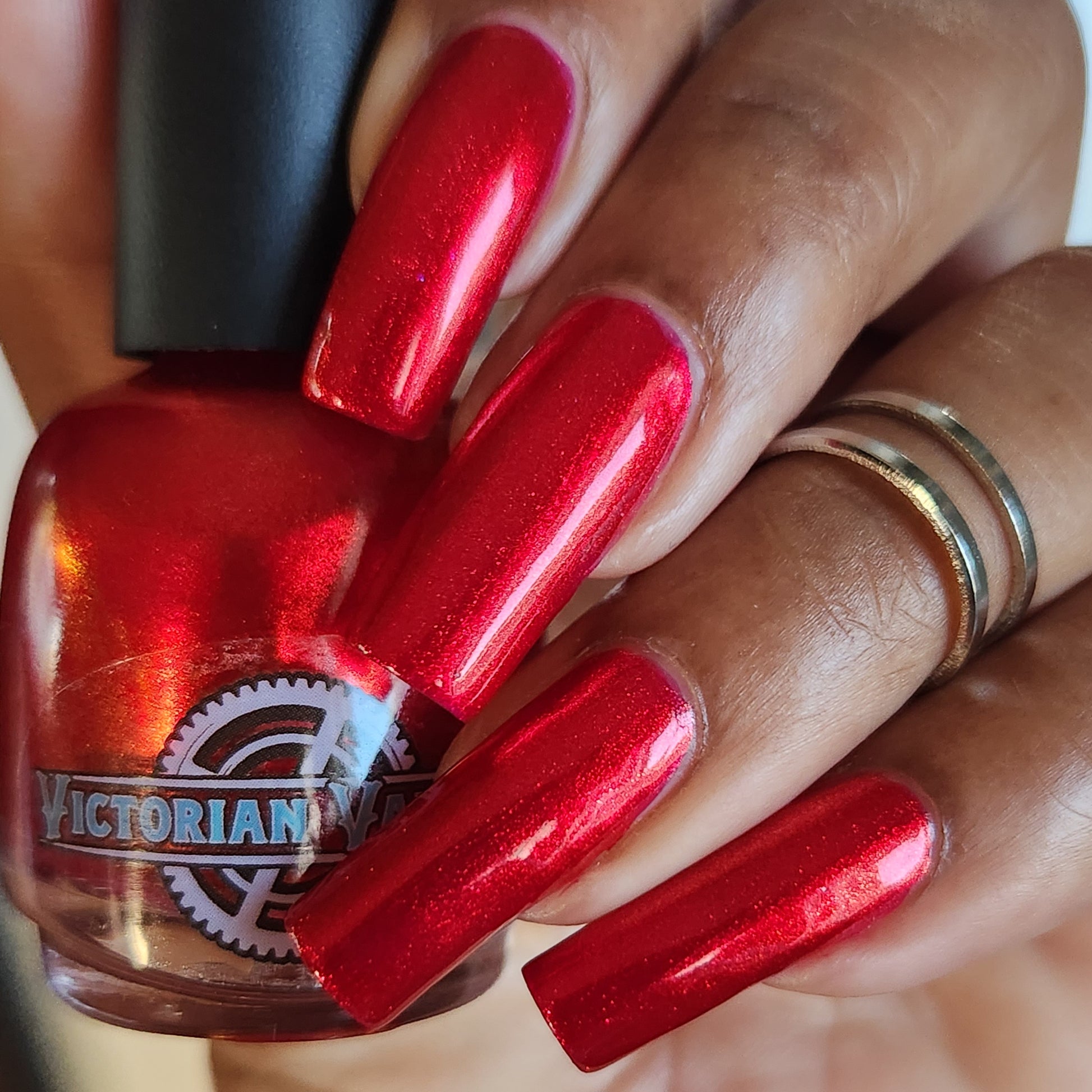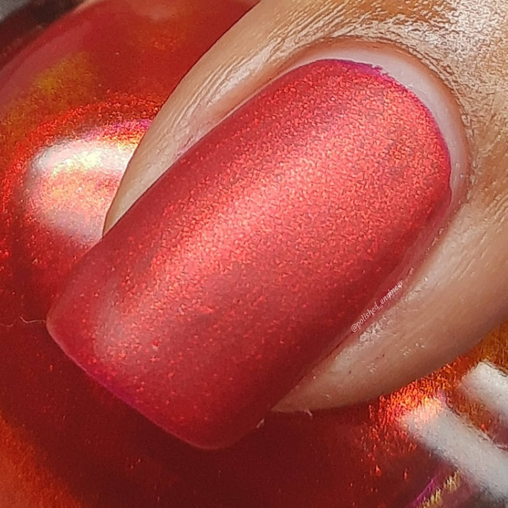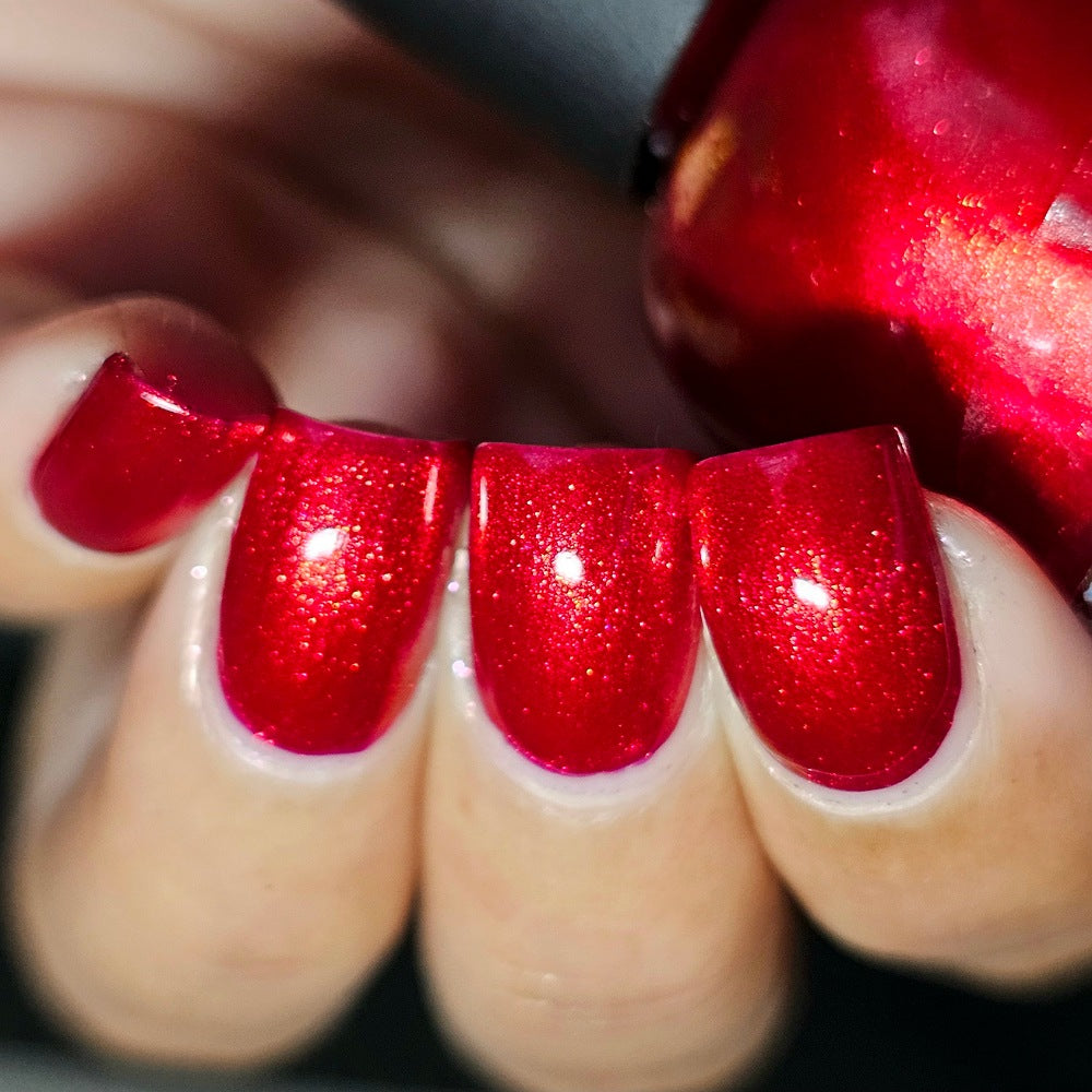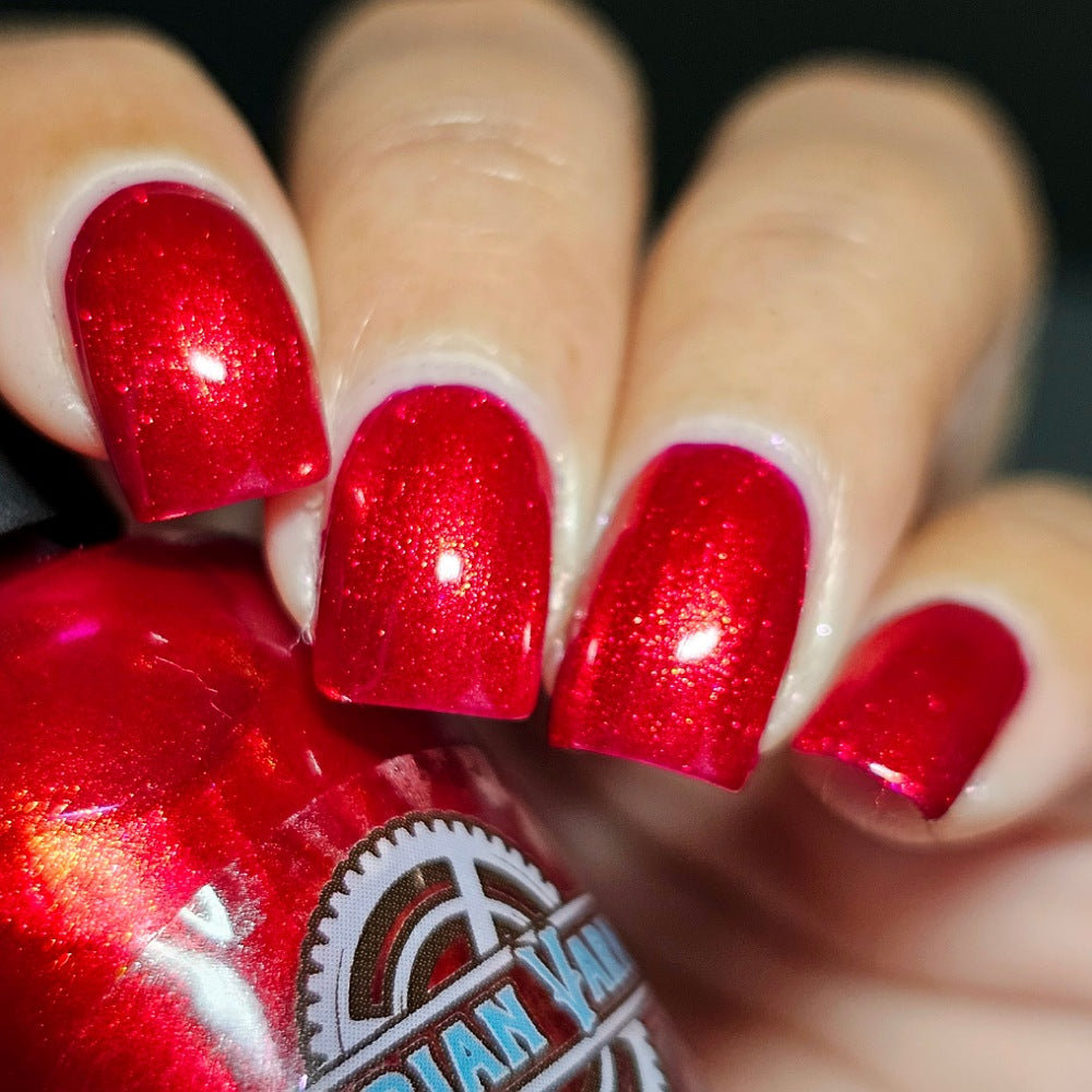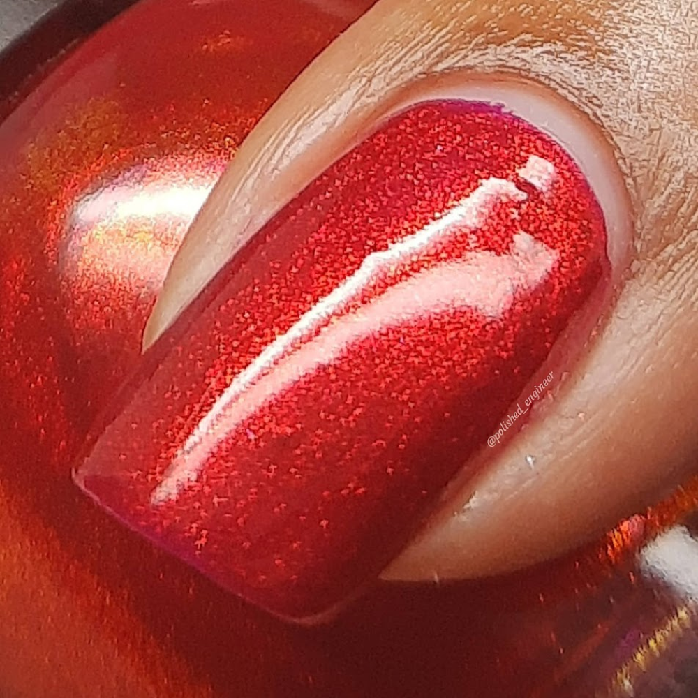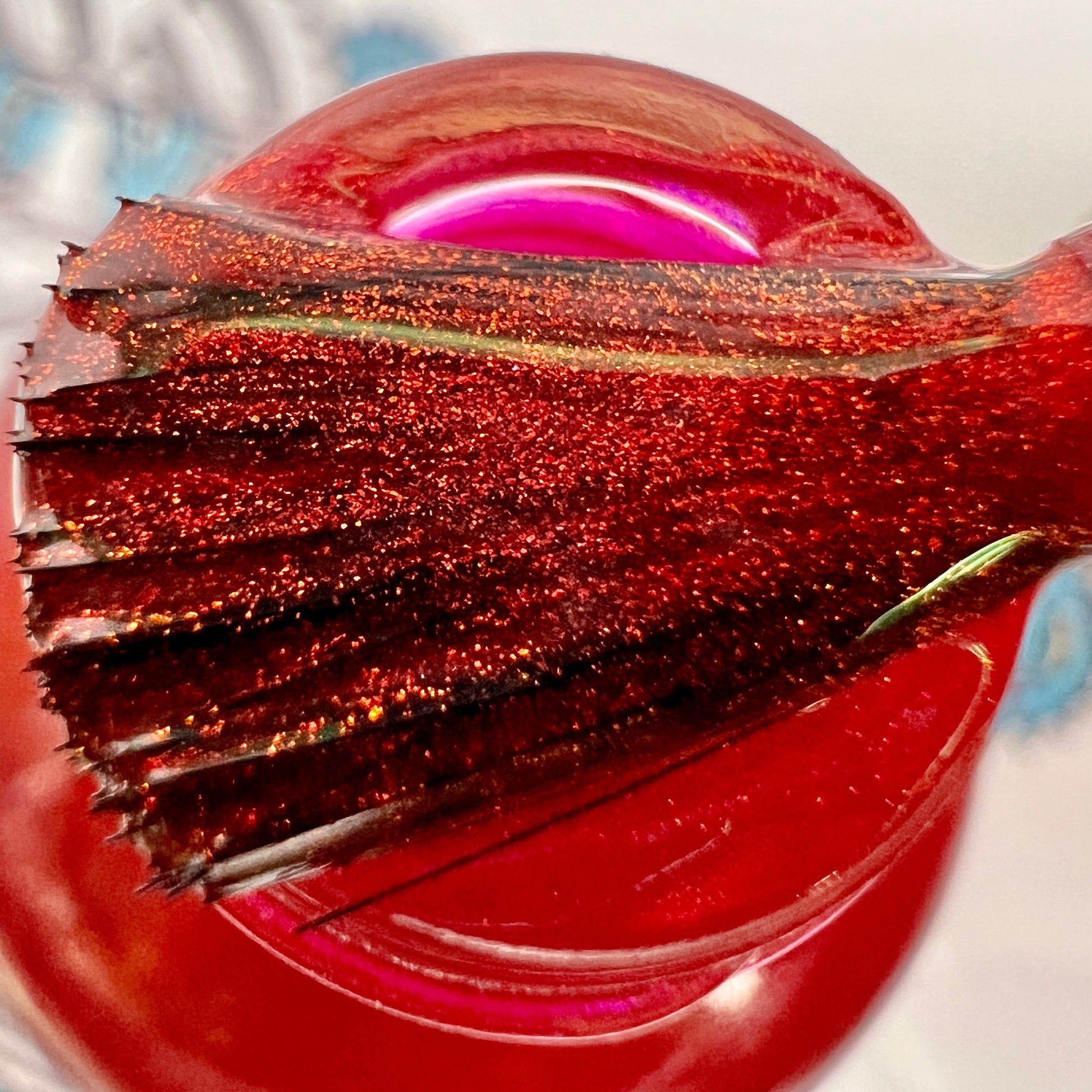 A shimmering, rosy-hued dream, with Red/Orange/Green/Gold Aurora Shimmer bursting through. Its dazzling hue is sure to bewitch the wearer!