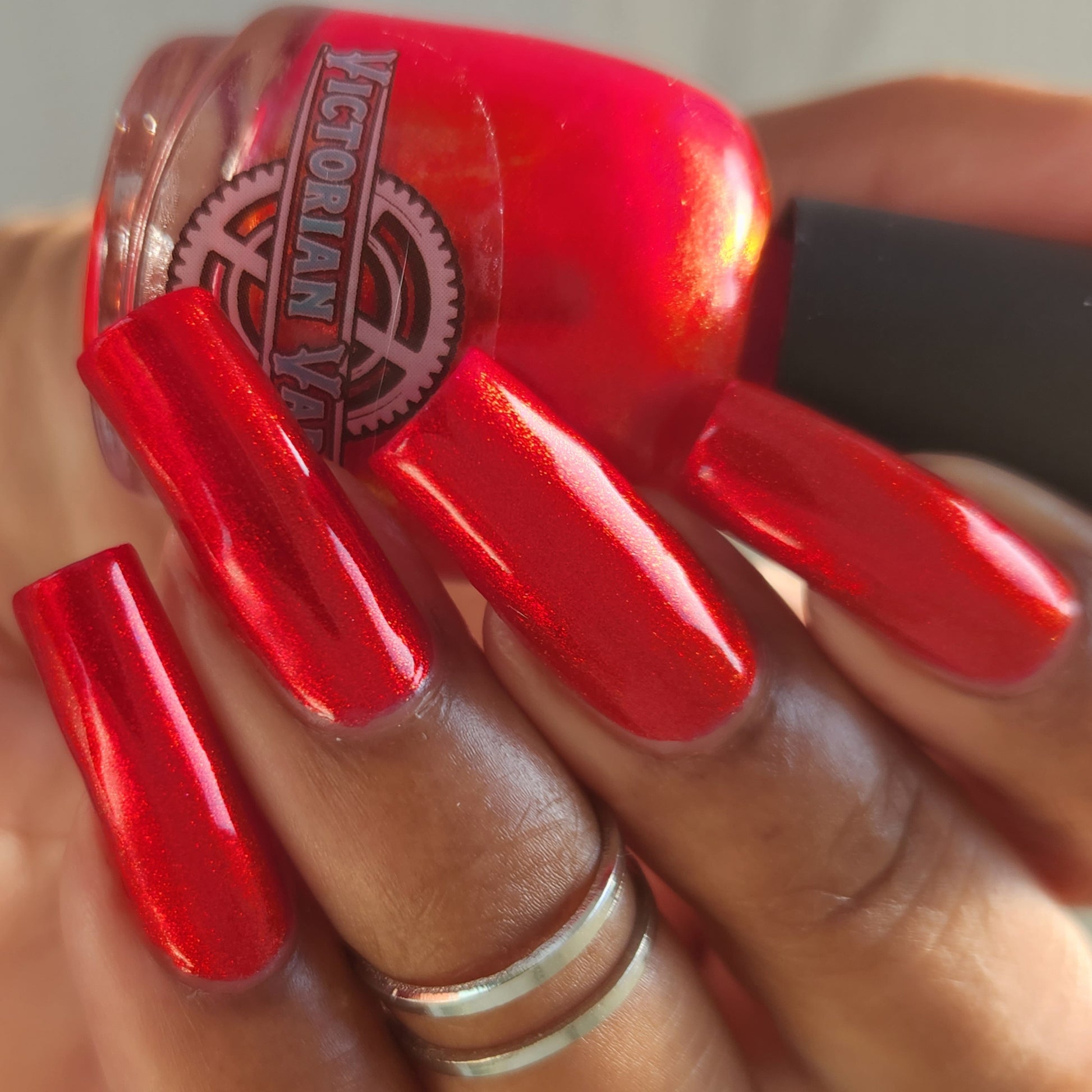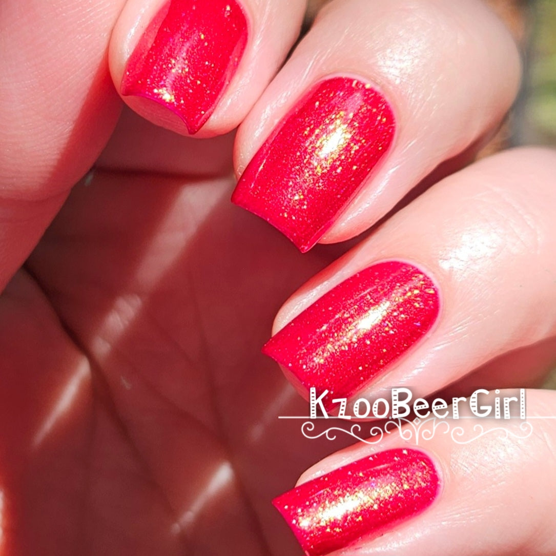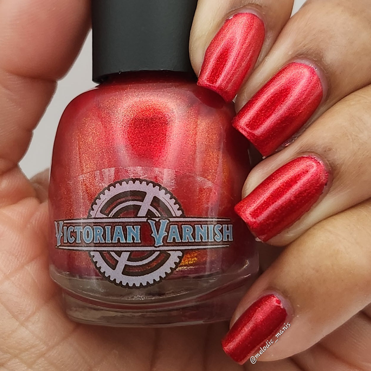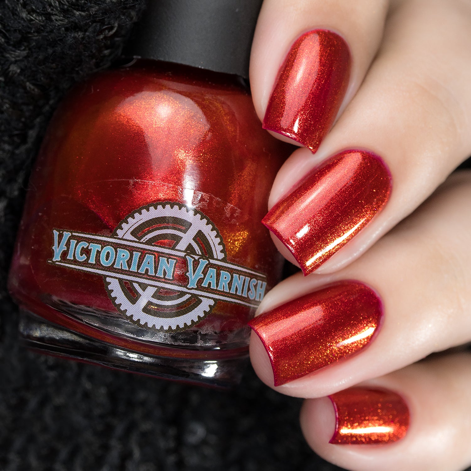 A shimmering, rosy-hued dream, with Red/Orange/Green/Gold Aurora Shimmer bursting through. Its dazzling hue is sure to bewitch the wearer!