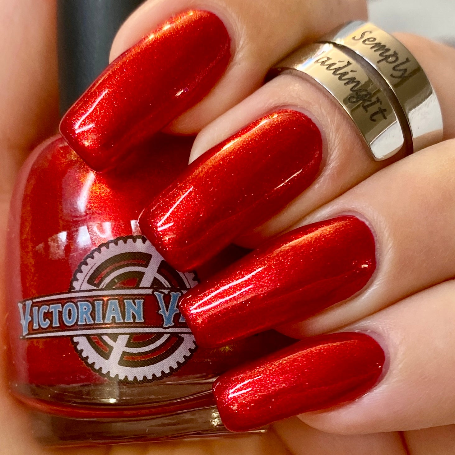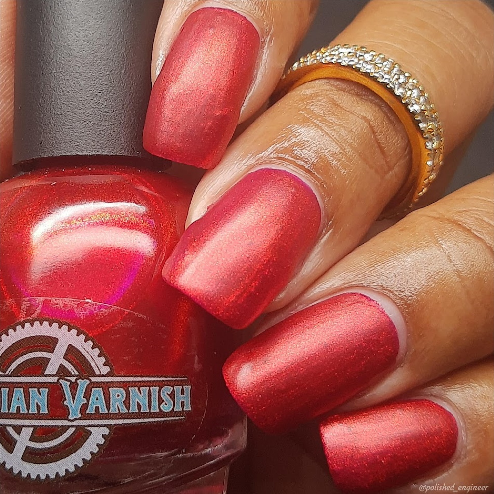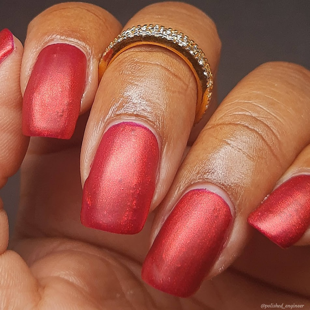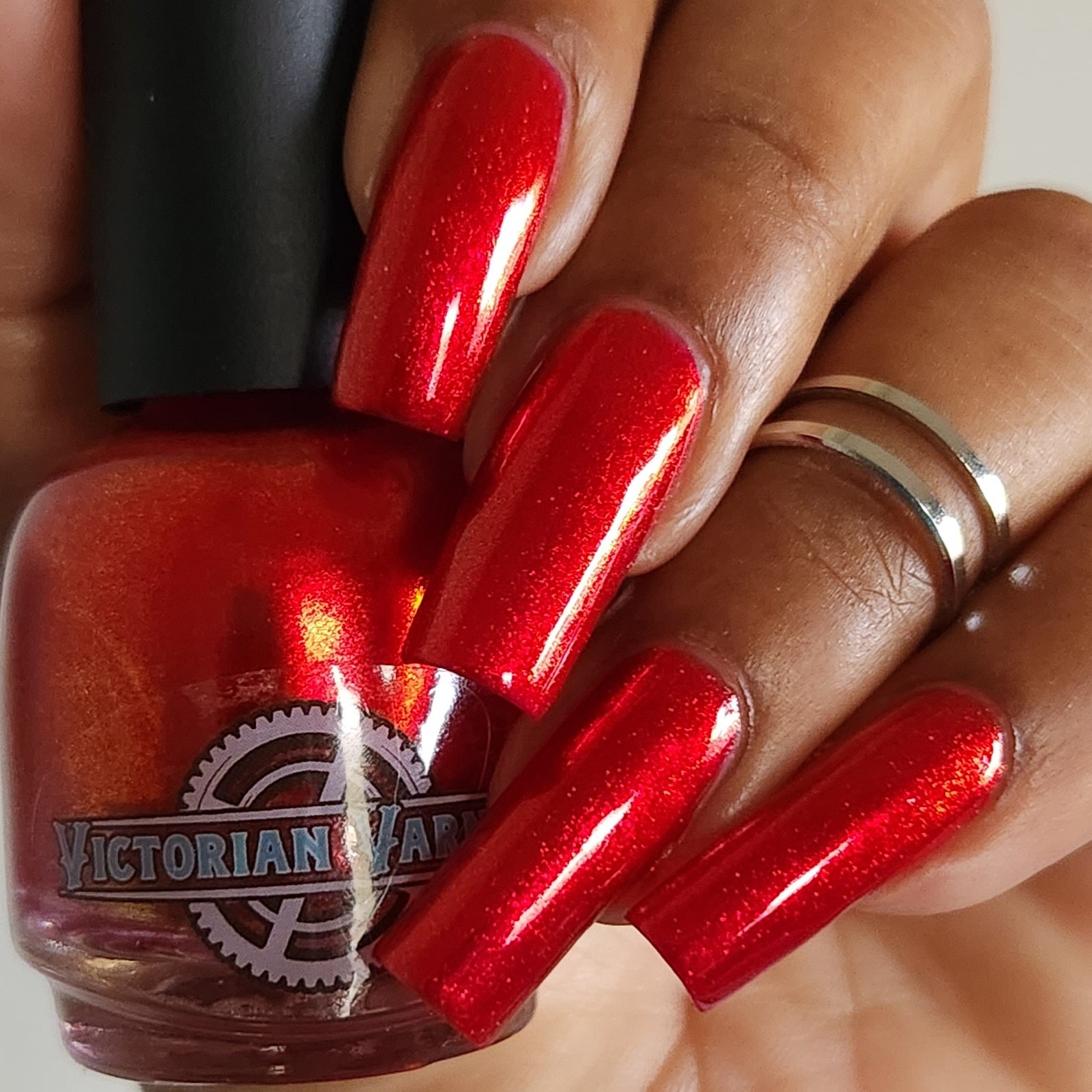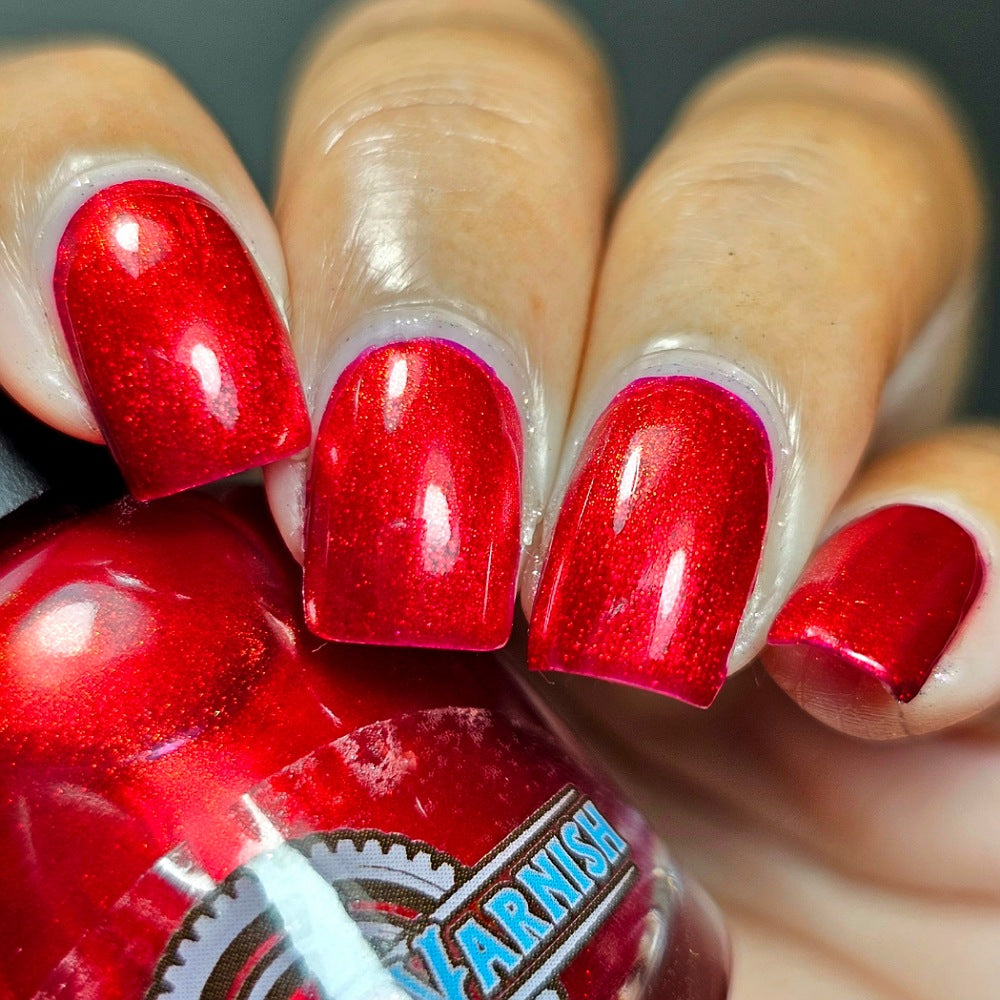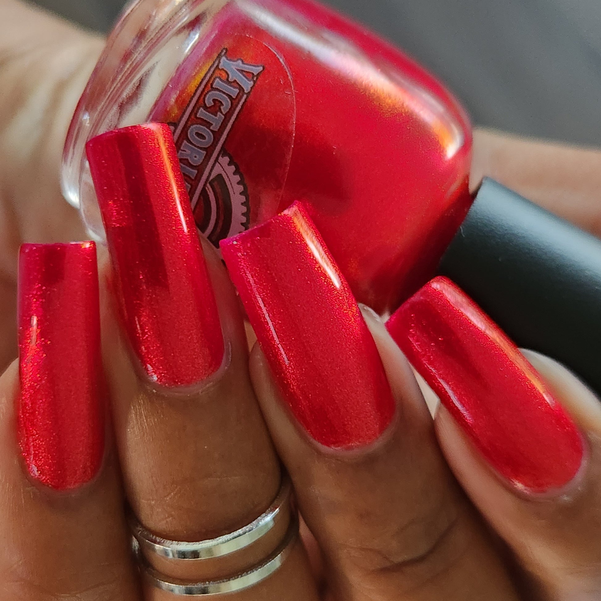 A shimmering, rosy-hued dream, with Red/Orange/Green/Gold Aurora Shimmer bursting through. Its dazzling hue is sure to bewitch the wearer!