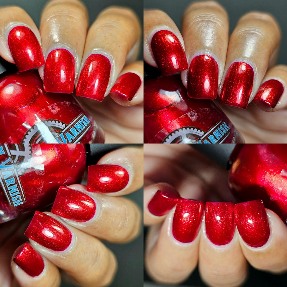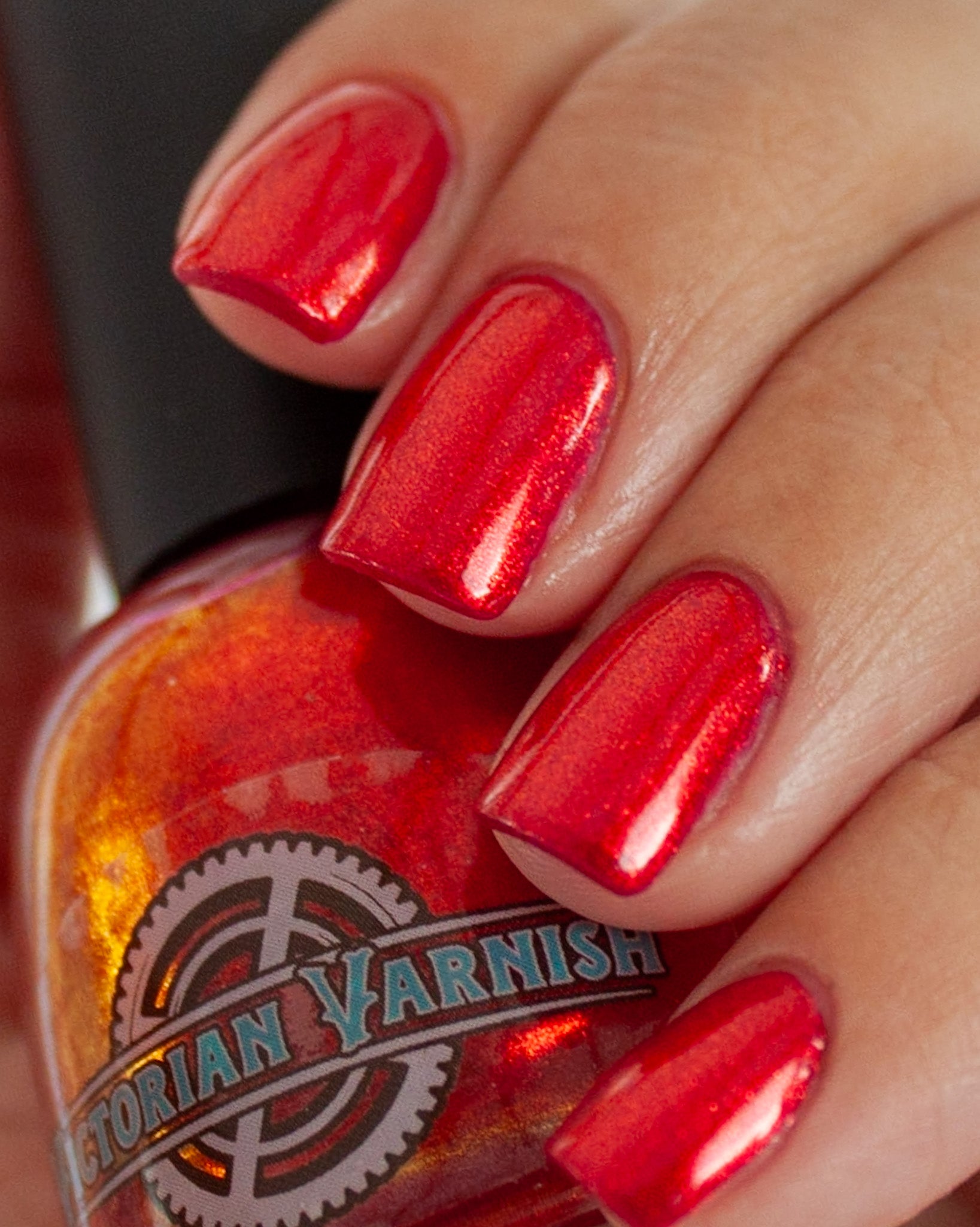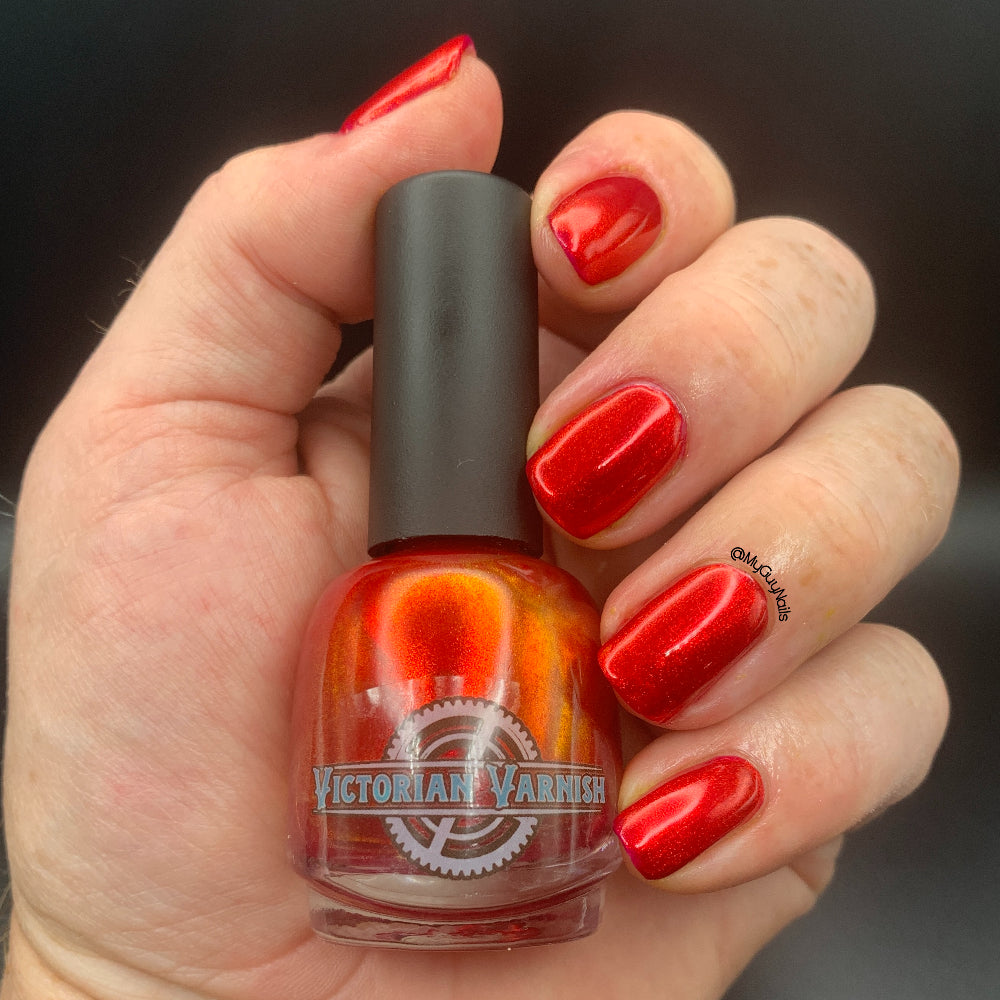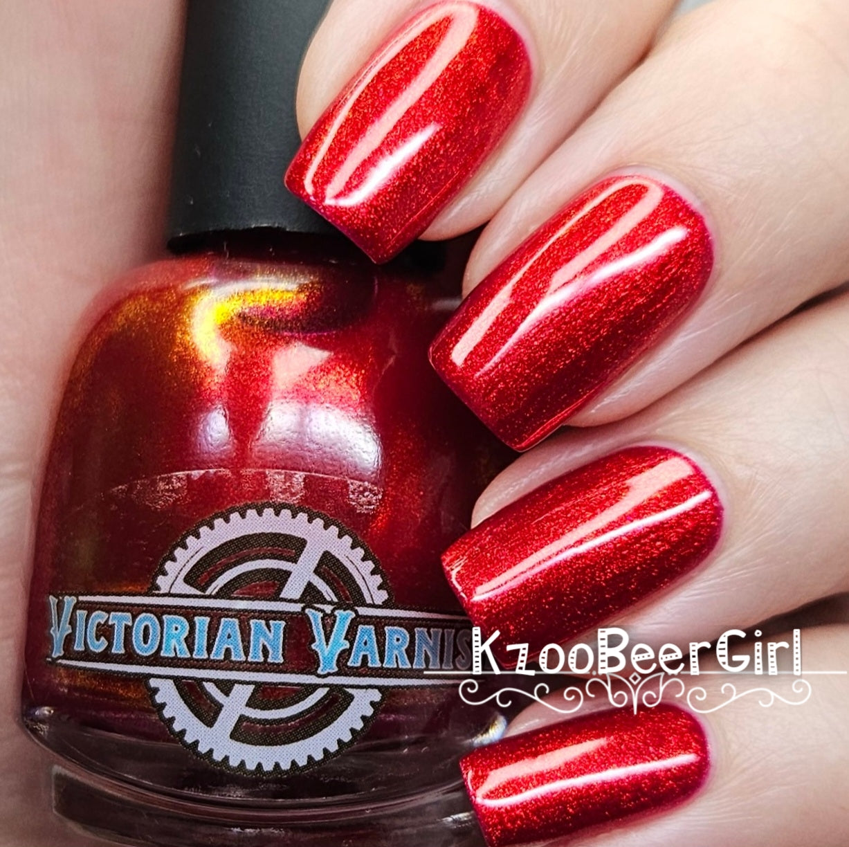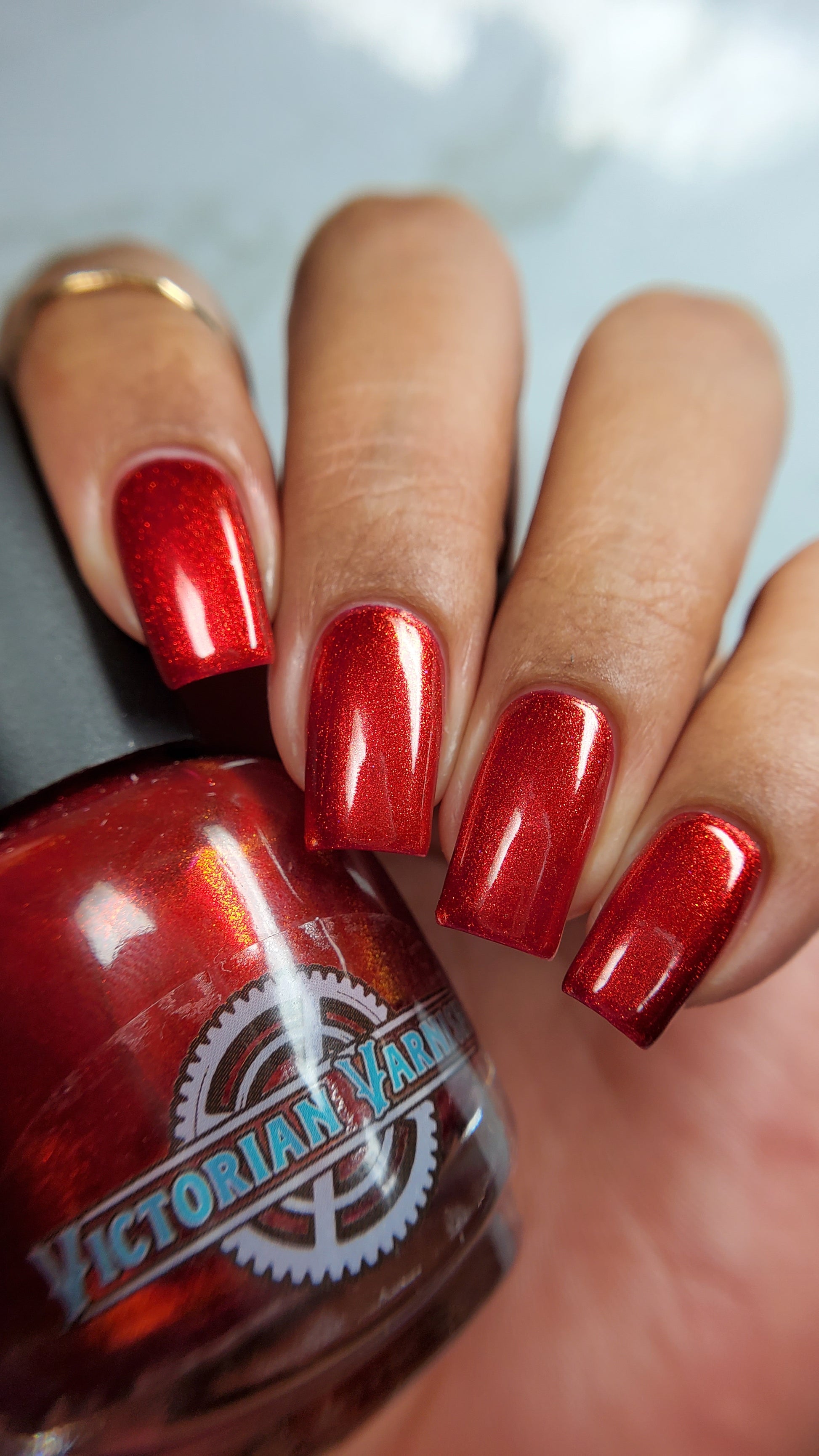 A shimmering, rosy-hued dream, with Red/Orange/Green/Gold Aurora Shimmer bursting through. Its dazzling hue is sure to bewitch the wearer!