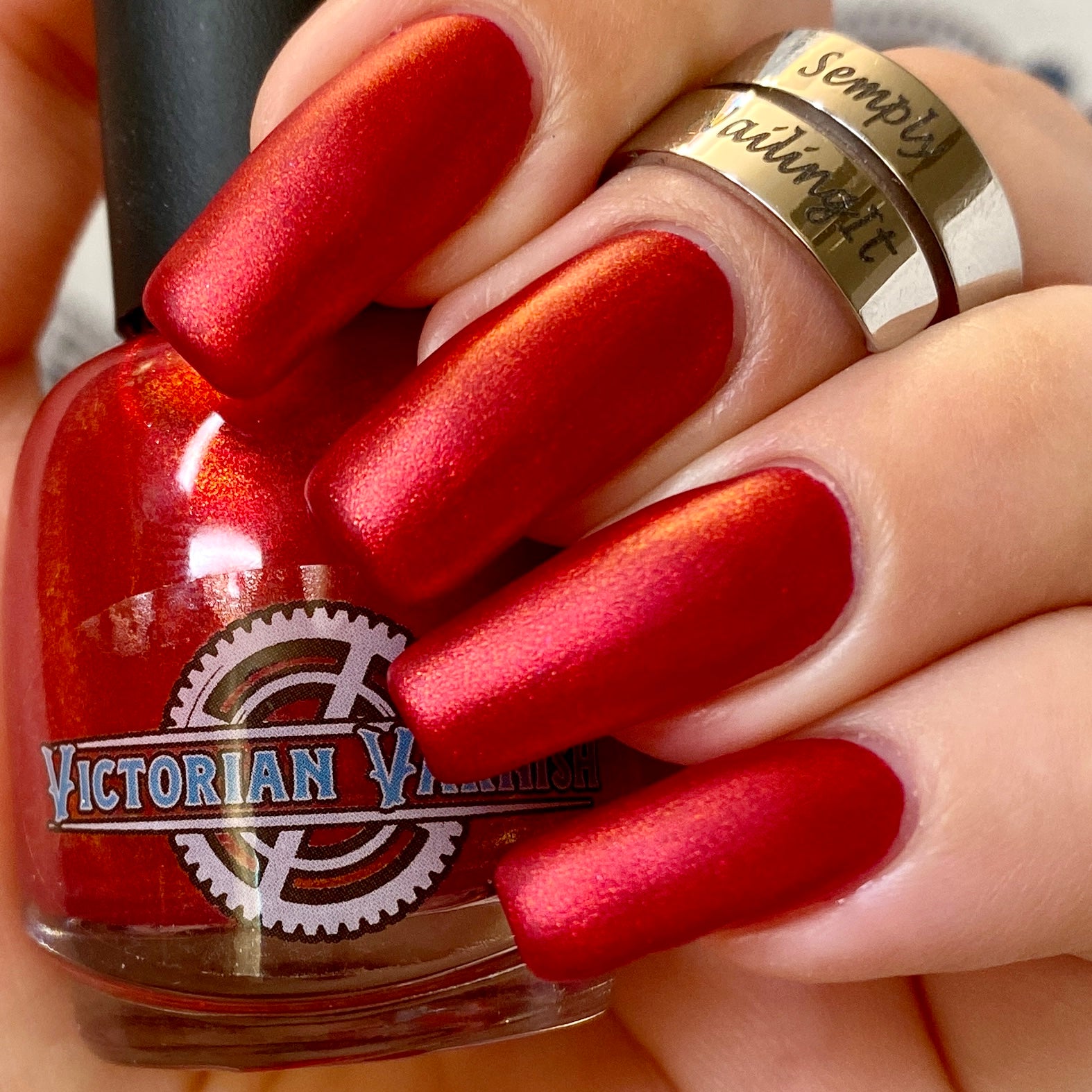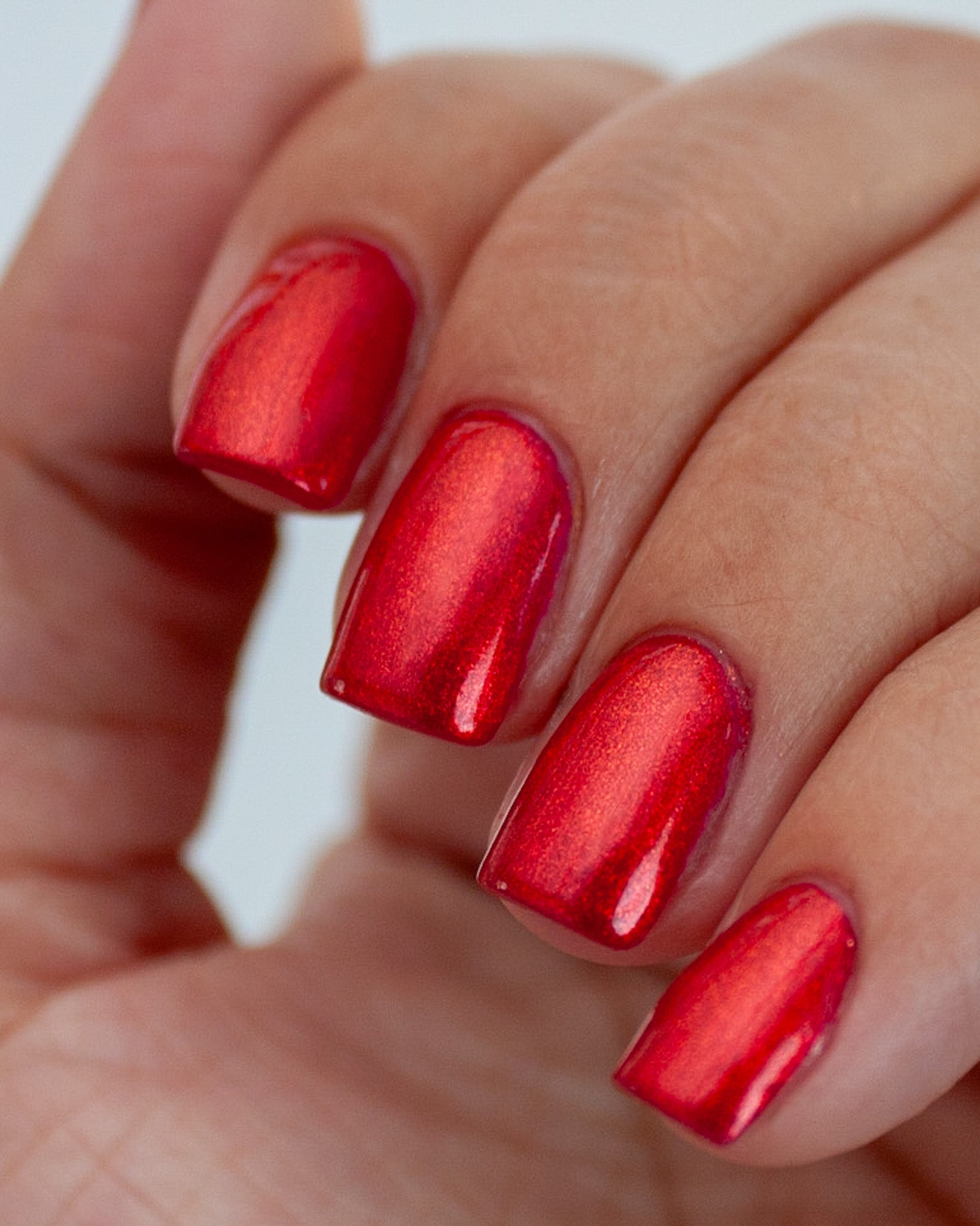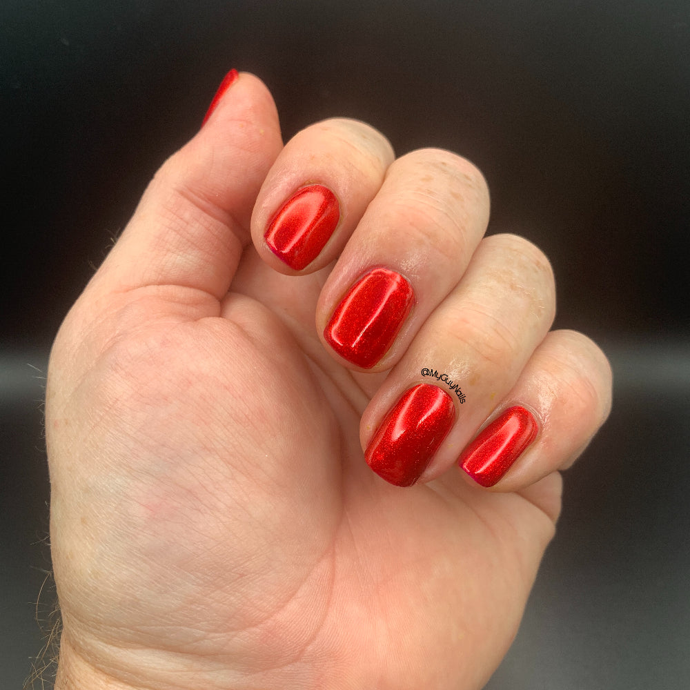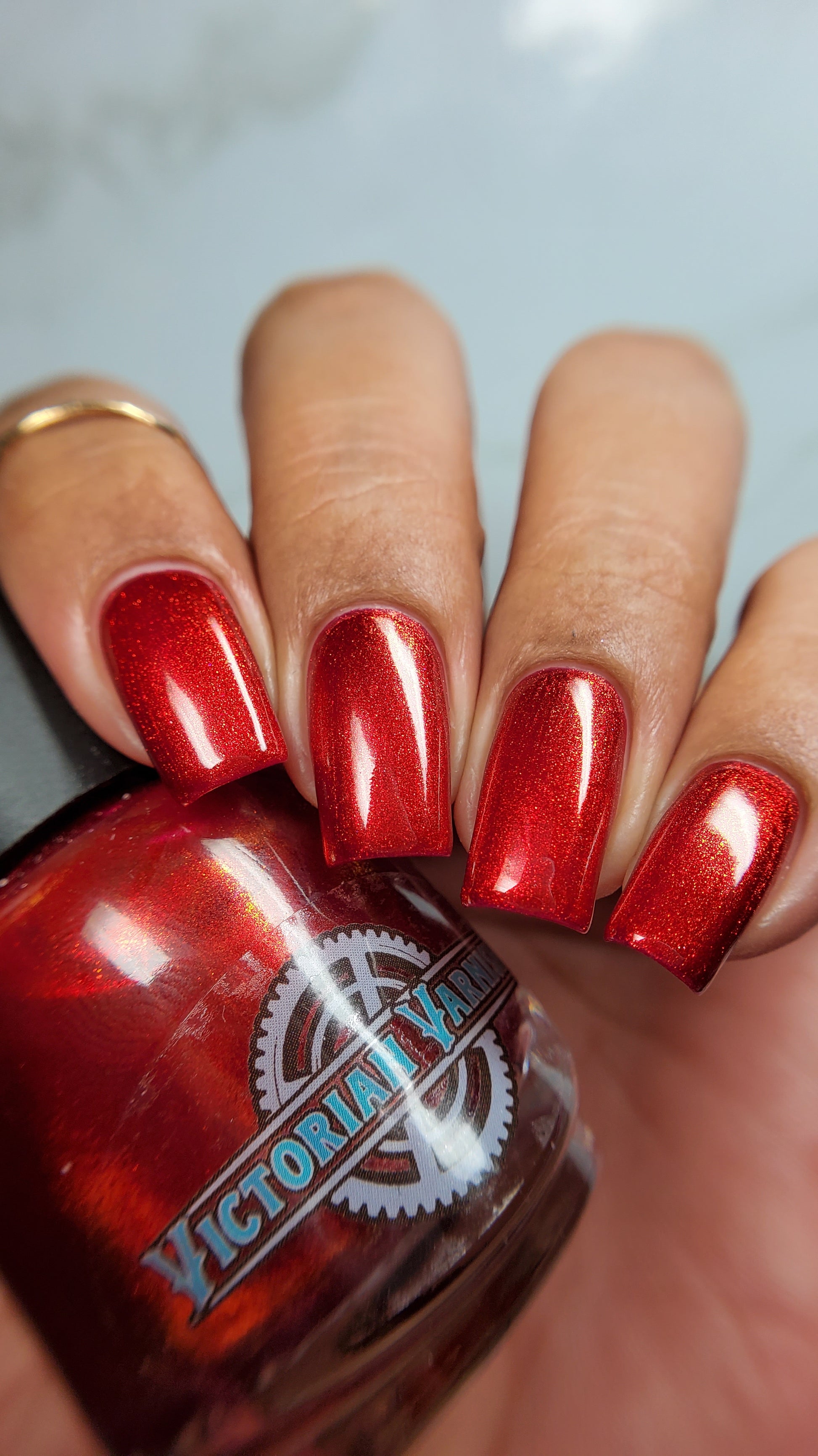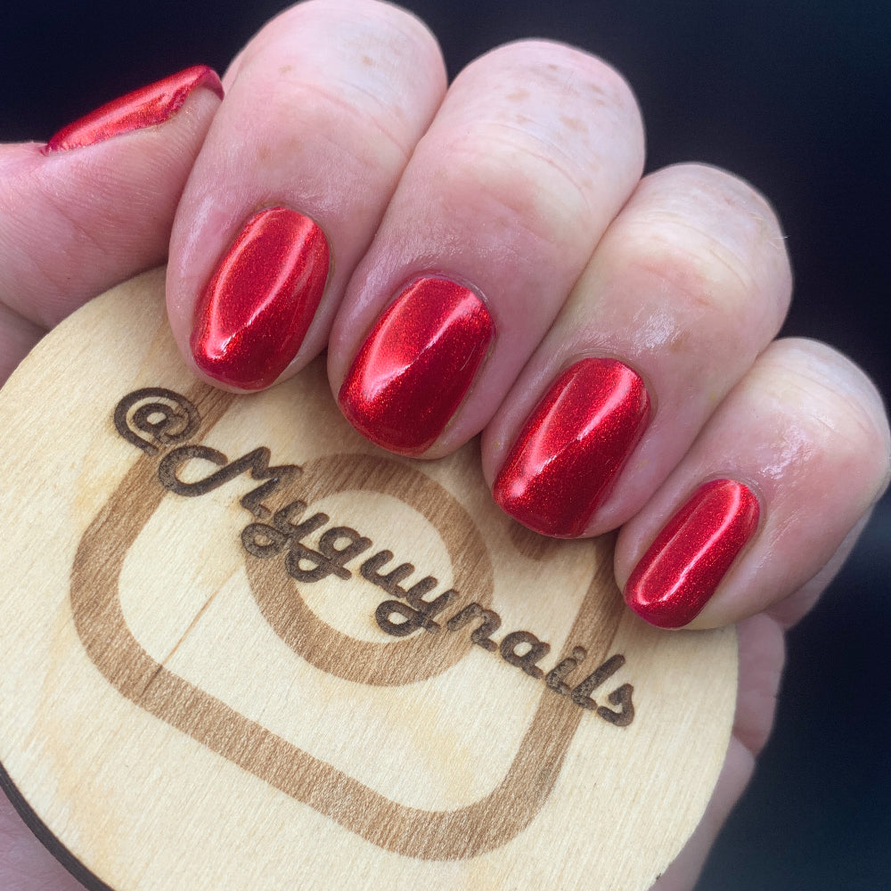 A shimmering, rosy-hued dream, with Red/Orange/Green/Gold Aurora Shimmer bursting through. Its dazzling hue is sure to bewitch the wearer!