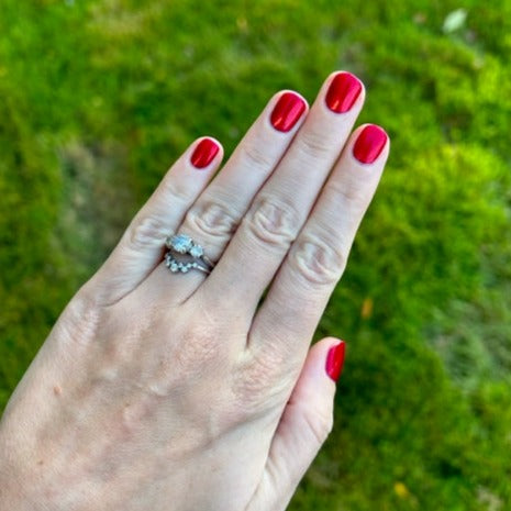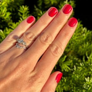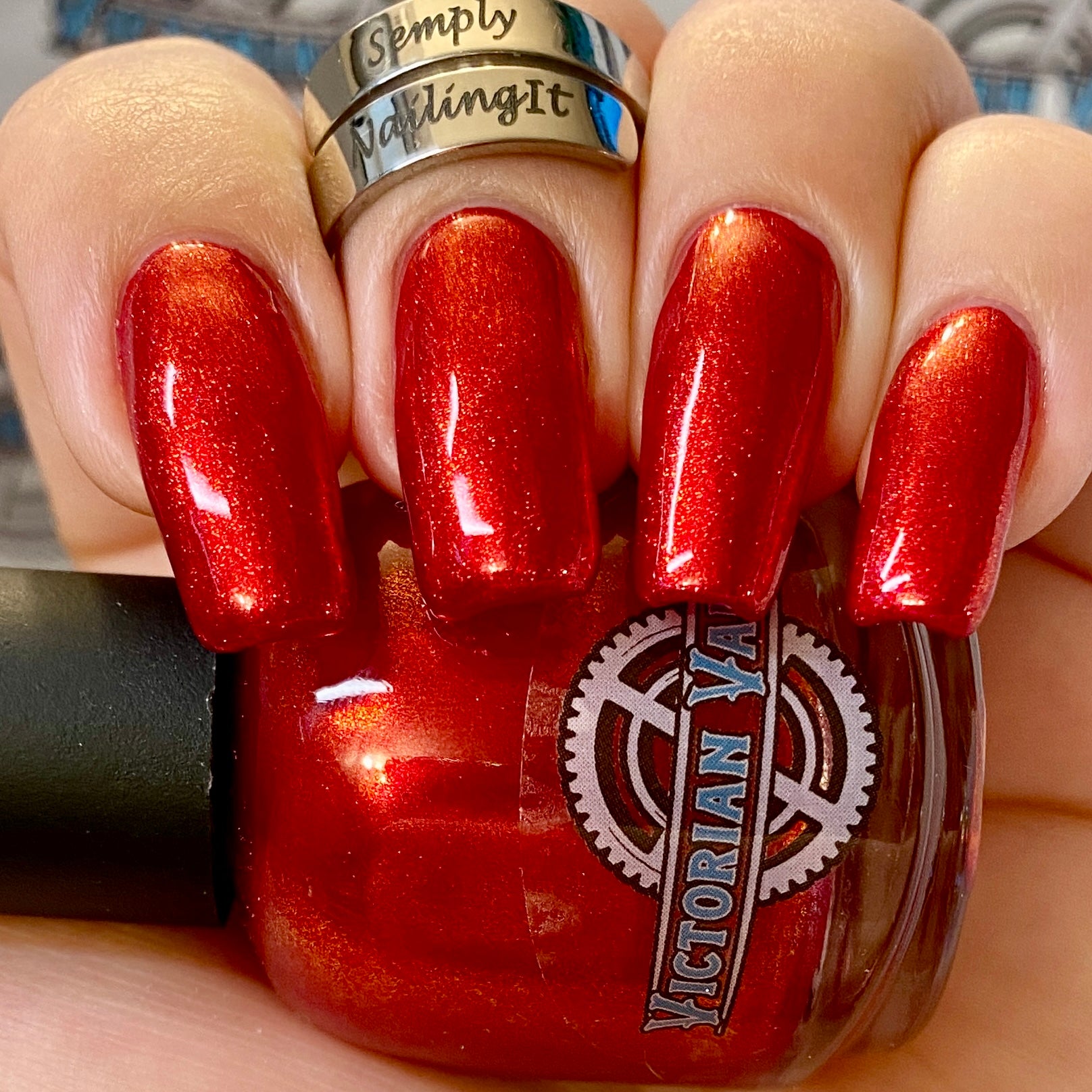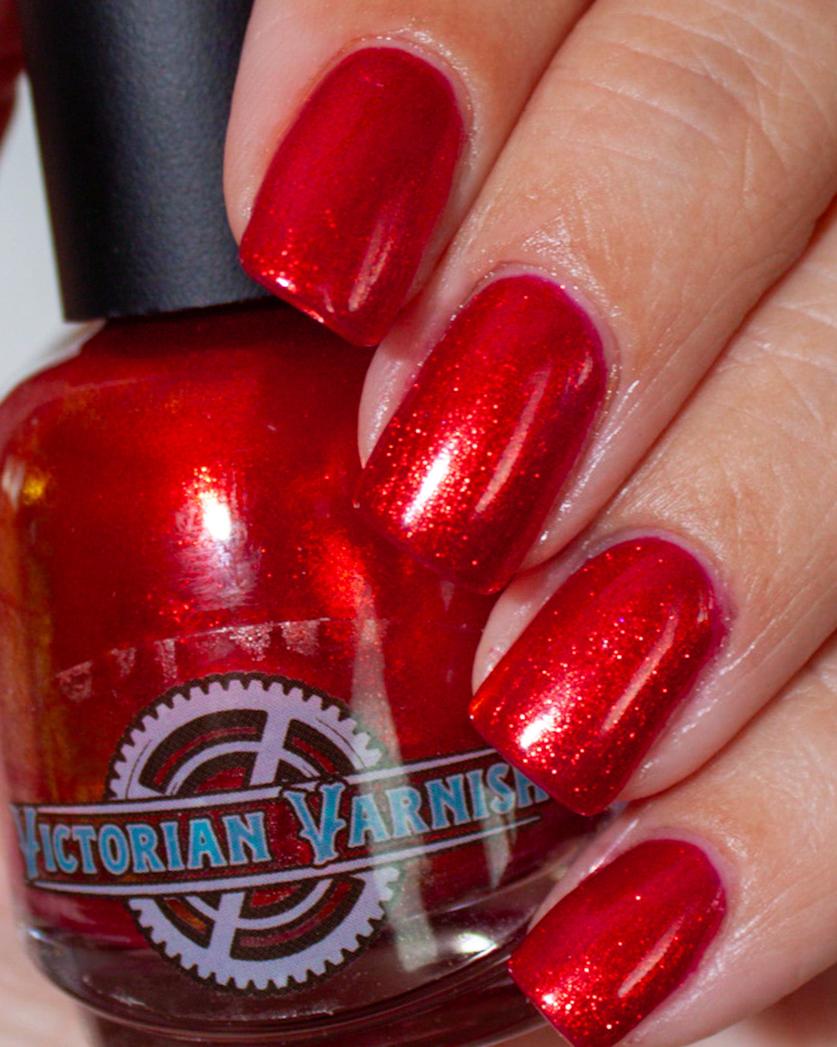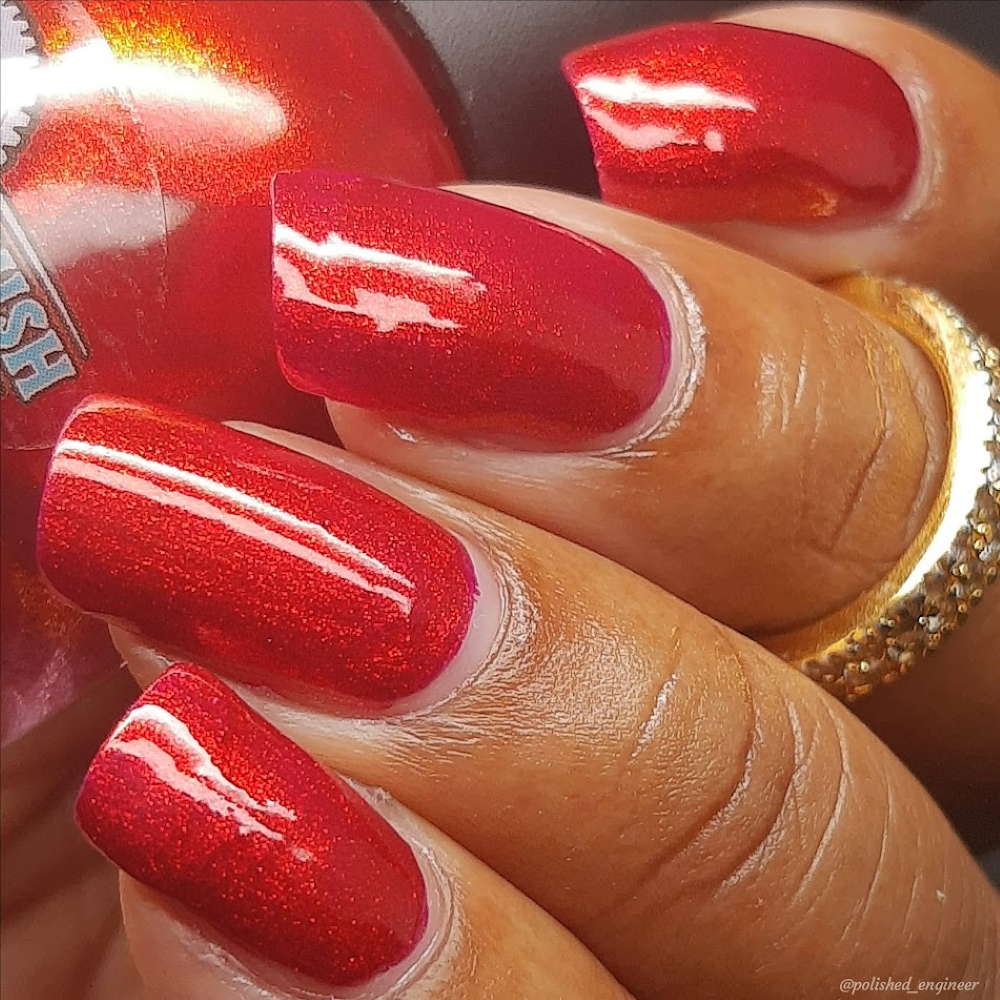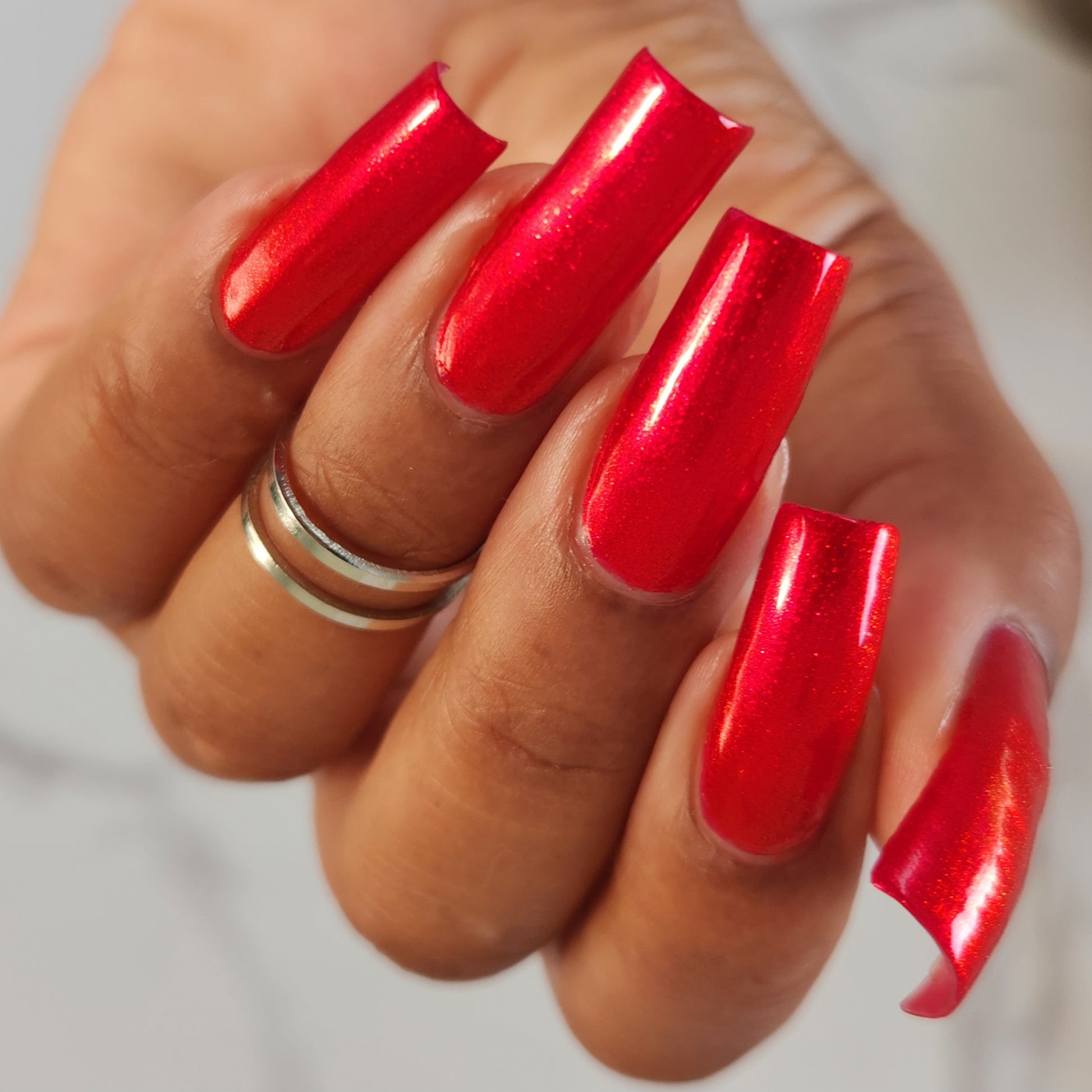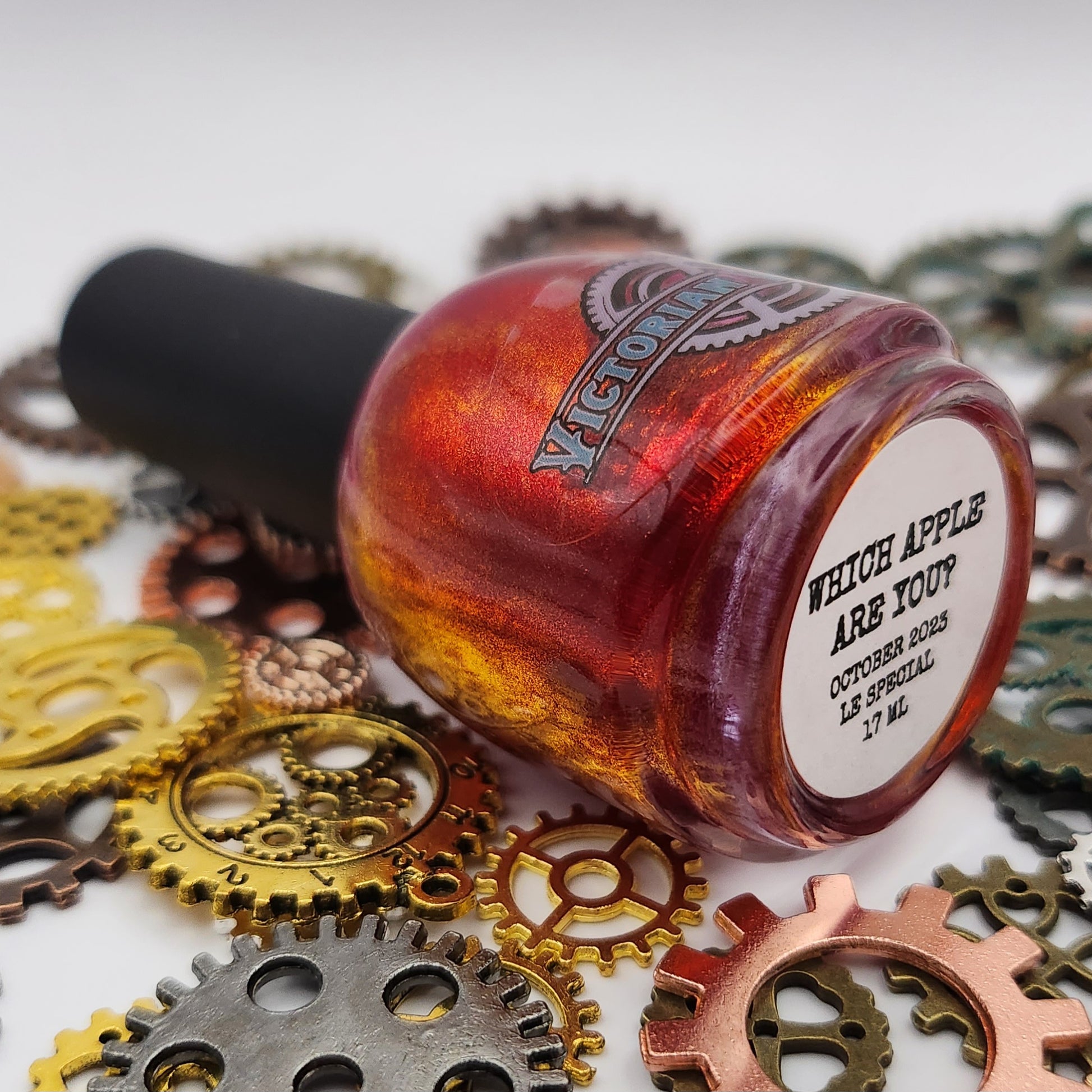 A shimmering, rosy-hued dream, with Red/Orange/Green/Gold Aurora Shimmer bursting through. Its dazzling hue is sure to bewitch the wearer!